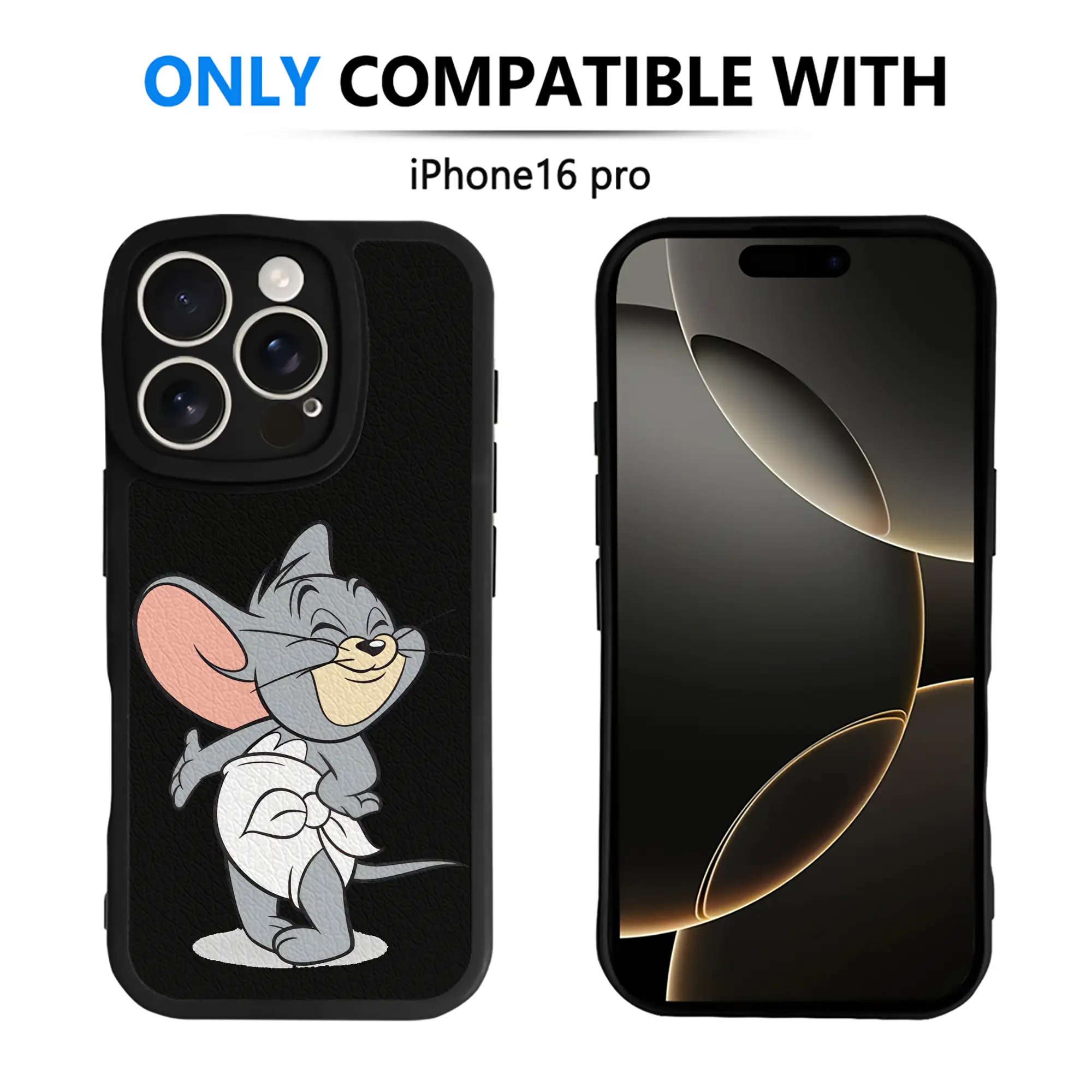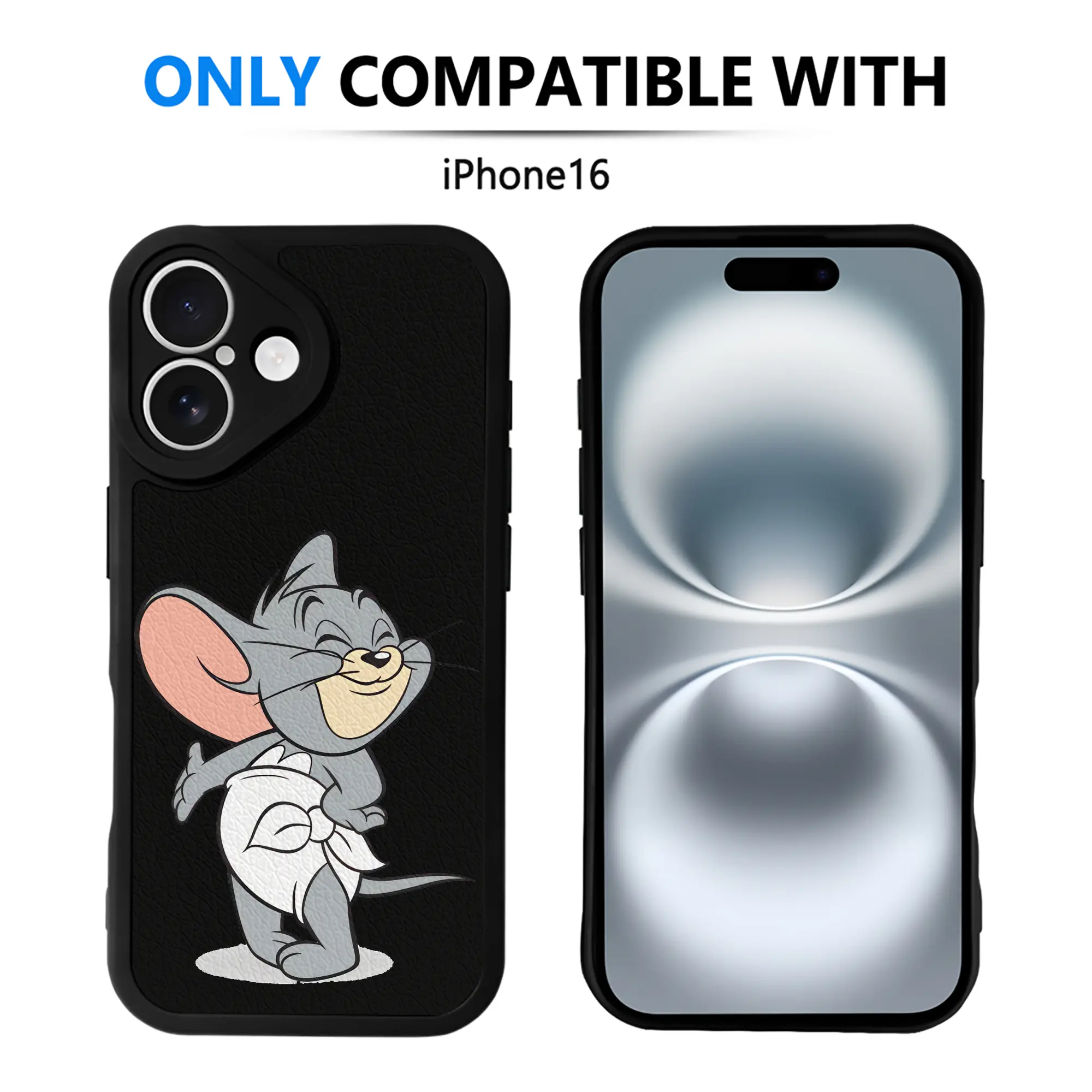 トムとジェリー グッズ タフィー - IPhone 16シリーズ対応 ・ シリコンスマホケース ・ レザー調 ・ 高精度フィット ・ 耐衝撃 ・ ワイヤレス充電対応 ・ 精密カット