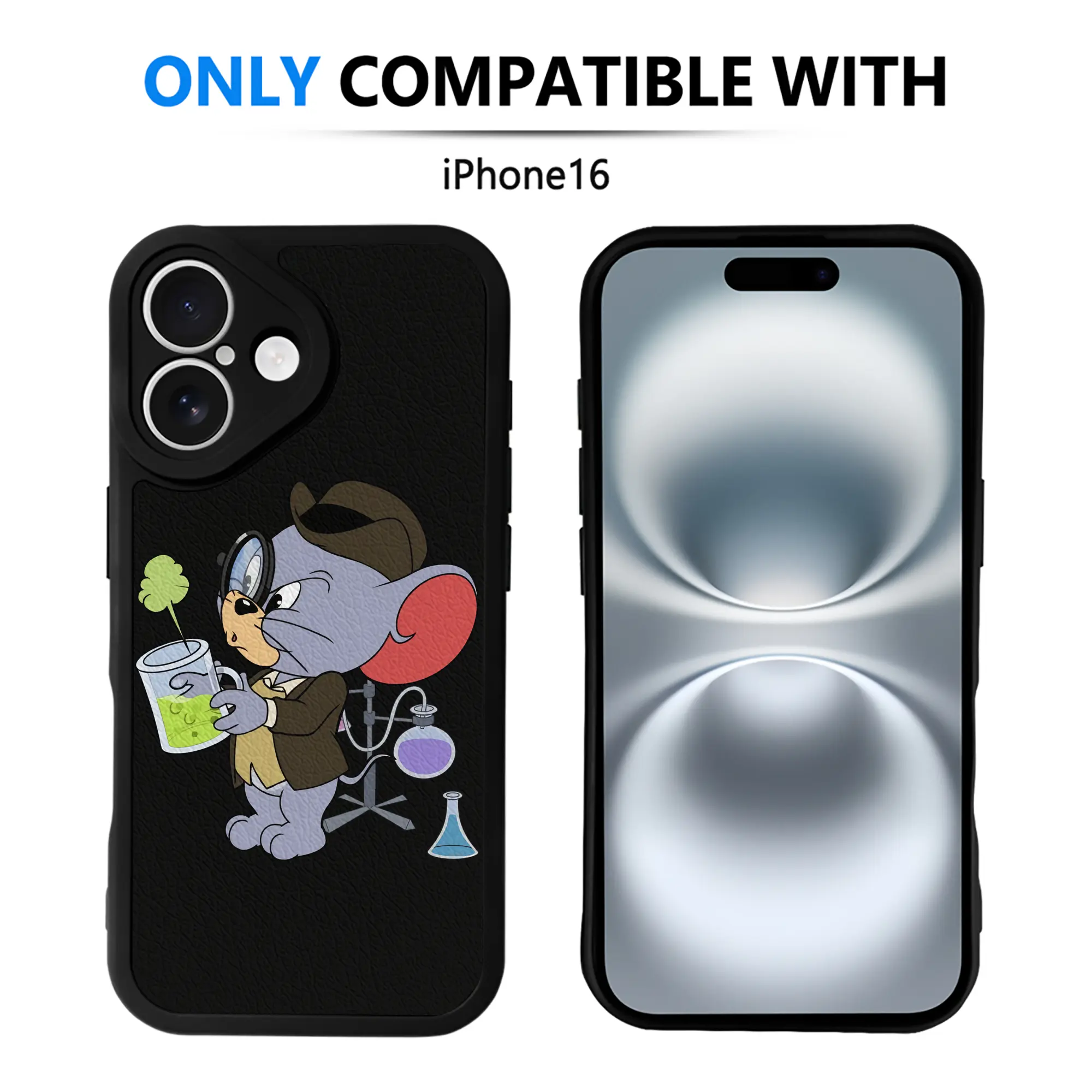 トムとジェリー グッズ タフィー - IPhone 16シリーズ対応 ・ シリコンスマホケース ・ レザー調 ・ 高精度フィット ・ 耐衝撃 ・ ワイヤレス充電対応 ・ 精密カット