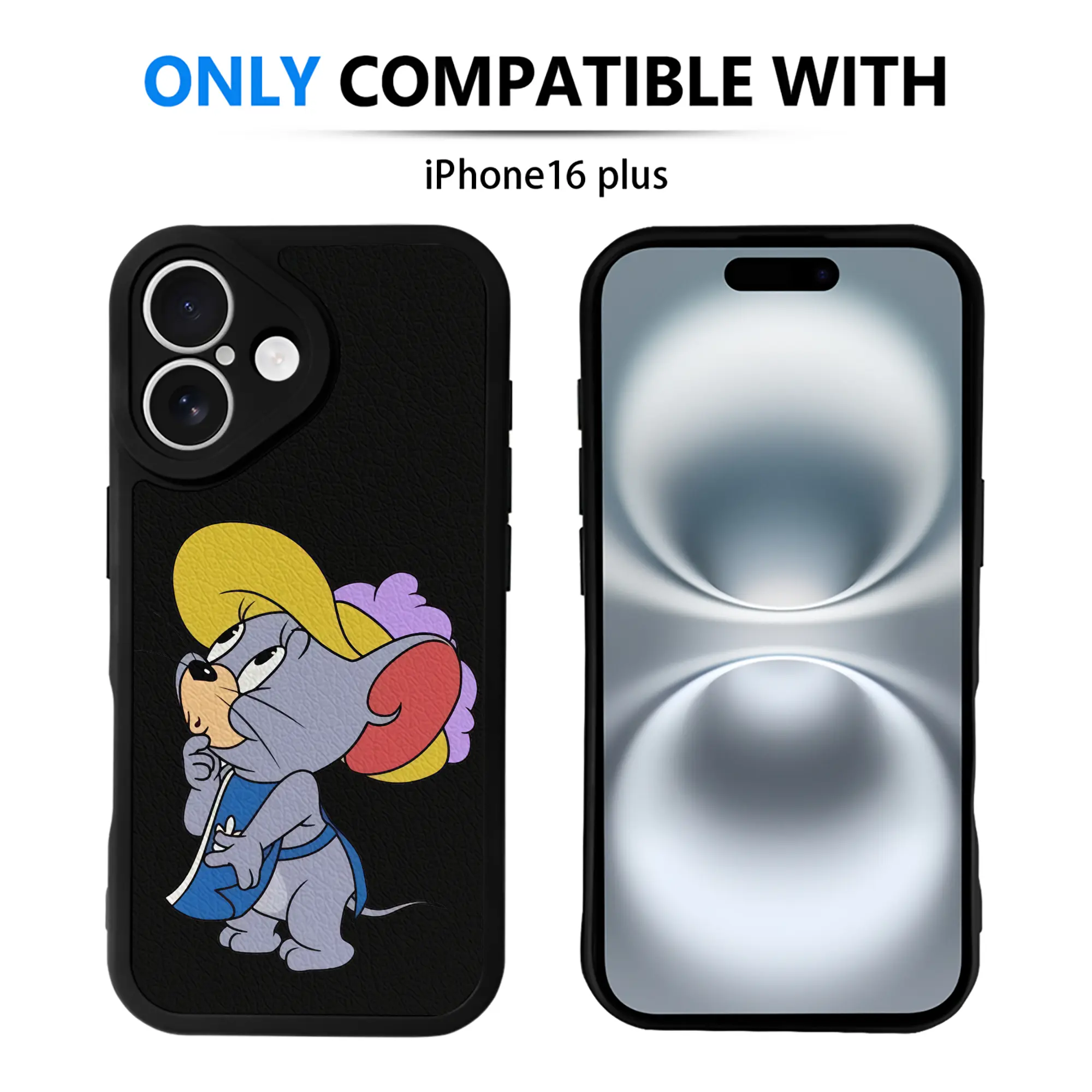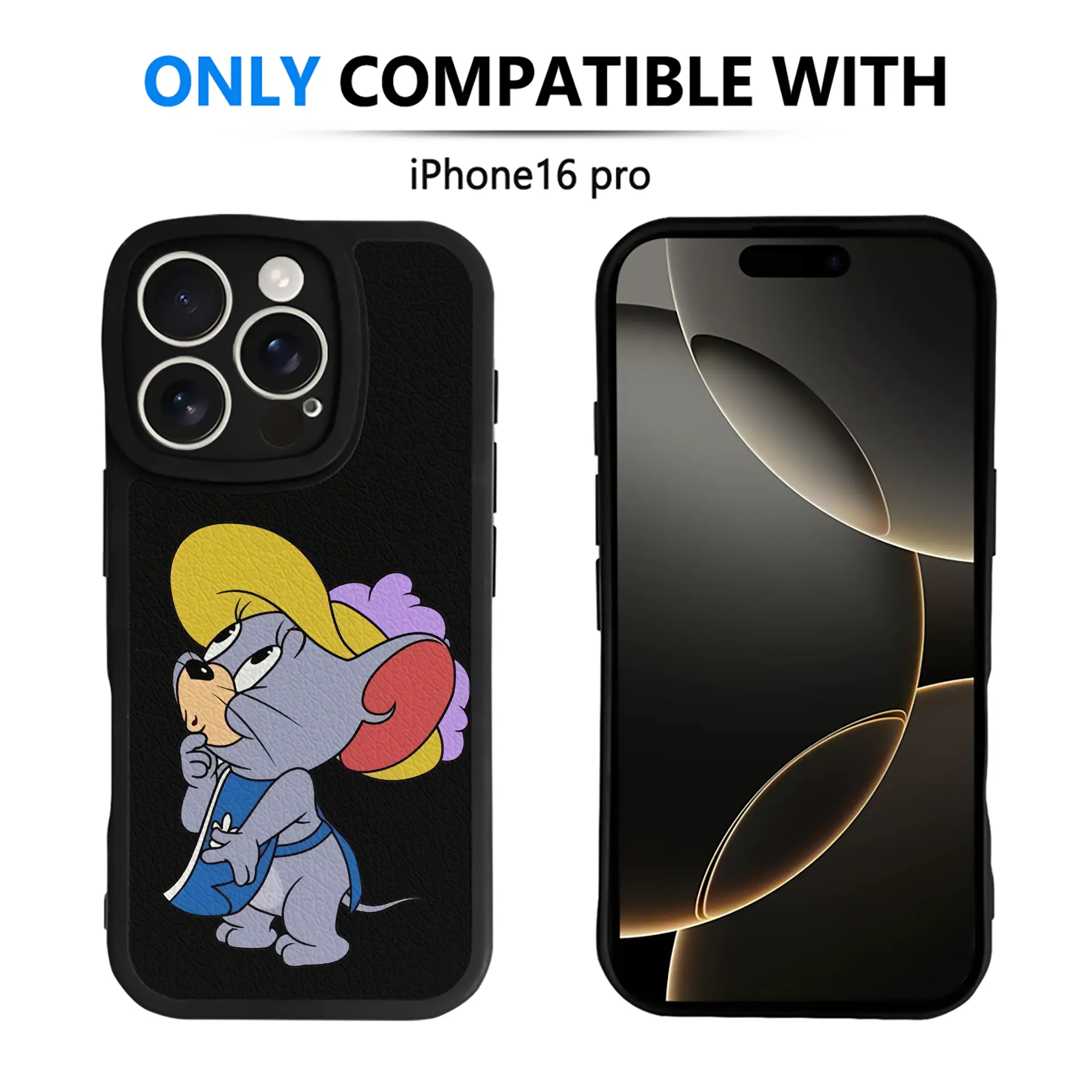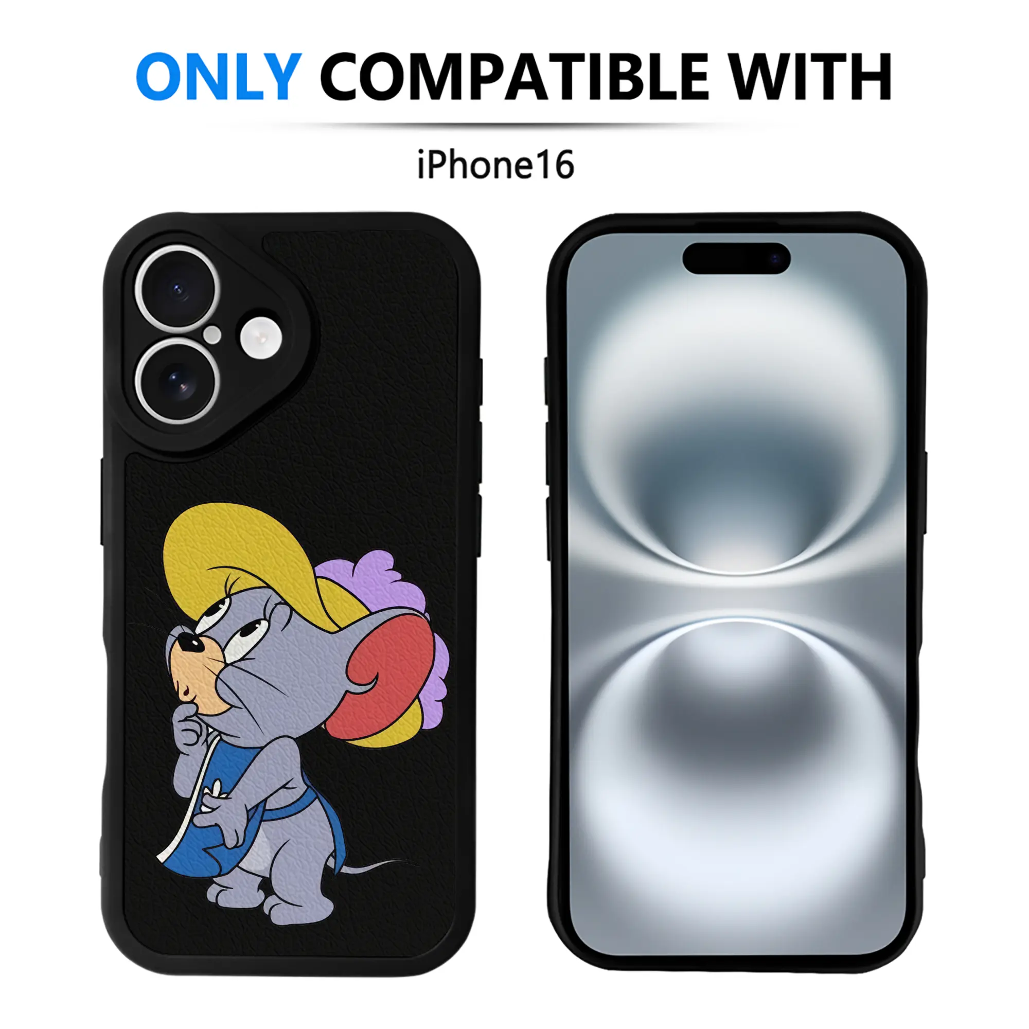 トムとジェリー グッズ タフィー - IPhone 16シリーズ対応 ・ シリコンスマホケース ・ レザー調 ・ 高精度フィット ・ 耐衝撃 ・ ワイヤレス充電対応 ・ 精密カット