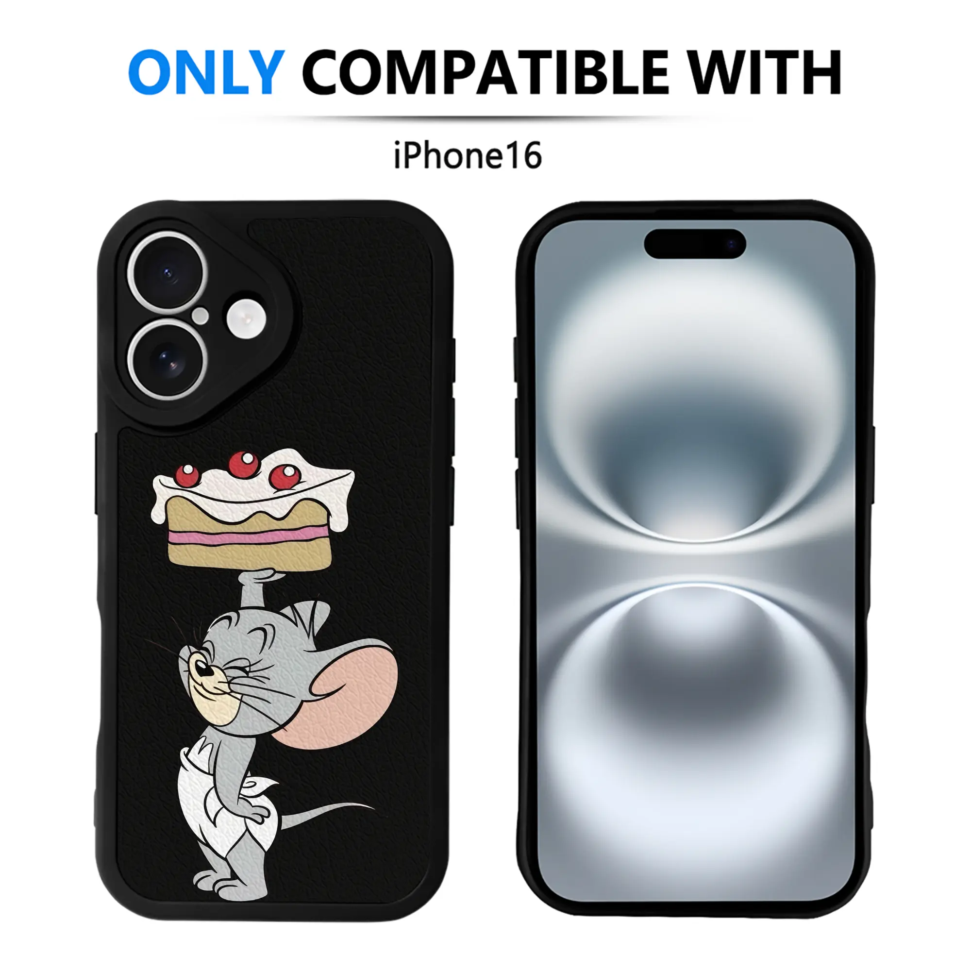 トムとジェリー グッズ タフィー - IPhone 16シリーズ対応 ・ シリコンスマホケース ・ レザー調 ・ 高精度フィット ・ 耐衝撃 ・ ワイヤレス充電対応 ・ 精密カット