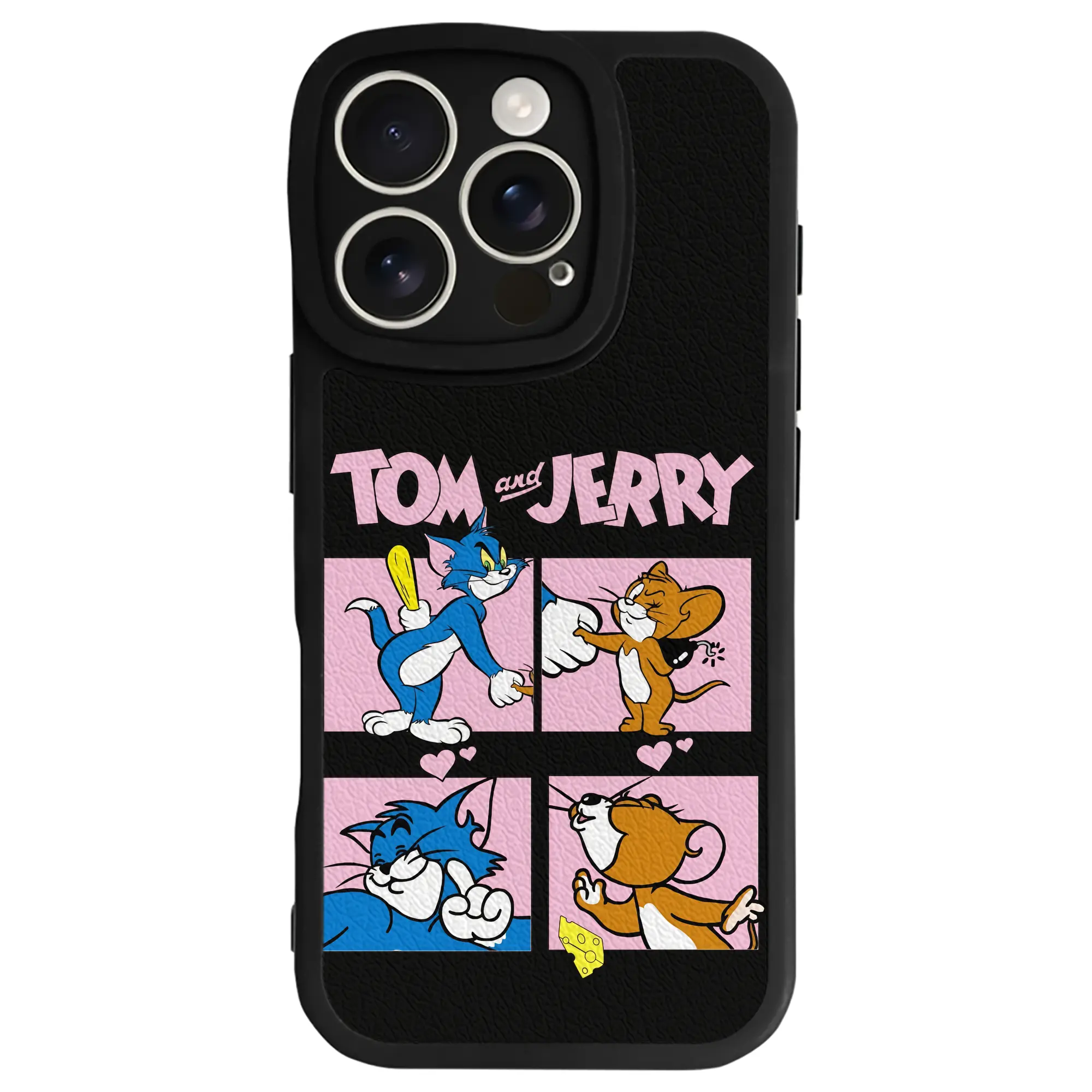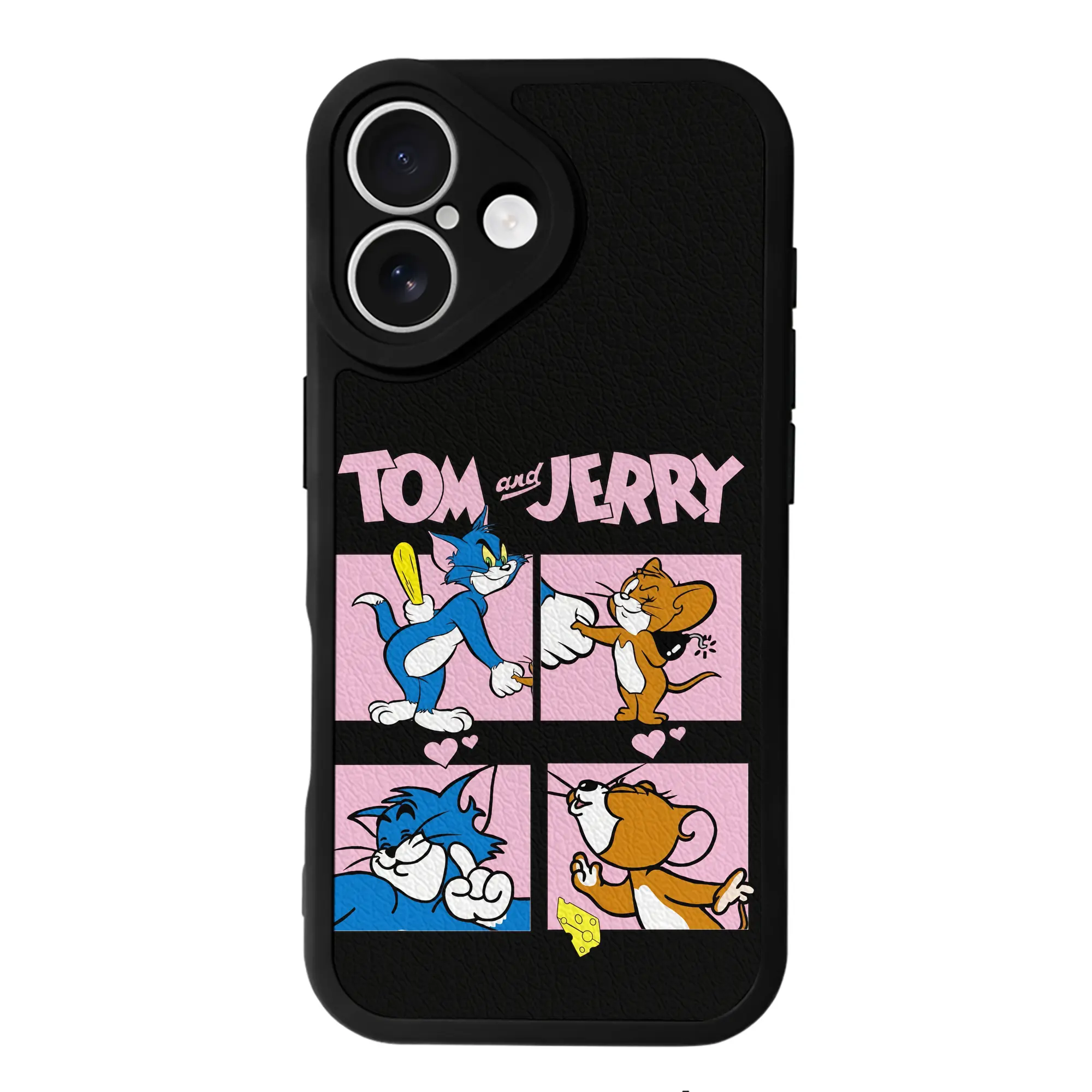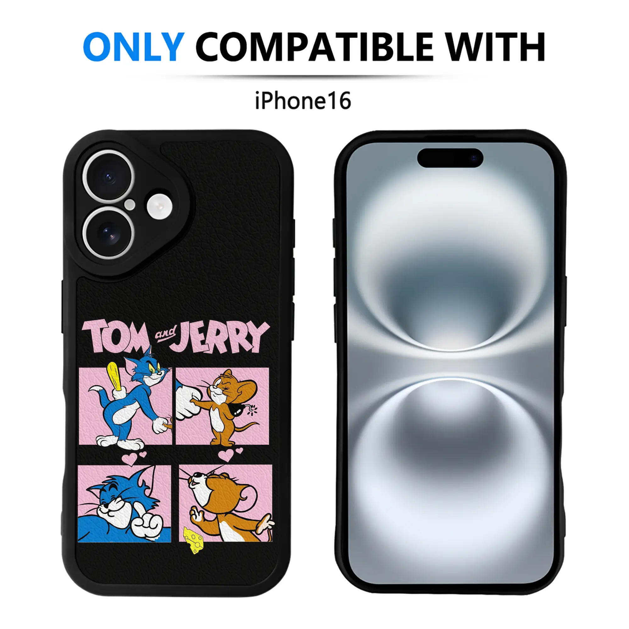 トムとジェリー グッズ トム - IPhone 16シリーズ対応 ・ シリコンスマホケース ・ レザー調 ・ 高精度フィット ・ 耐衝撃 ・ ワイヤレス充電対応 ・ 精密カット