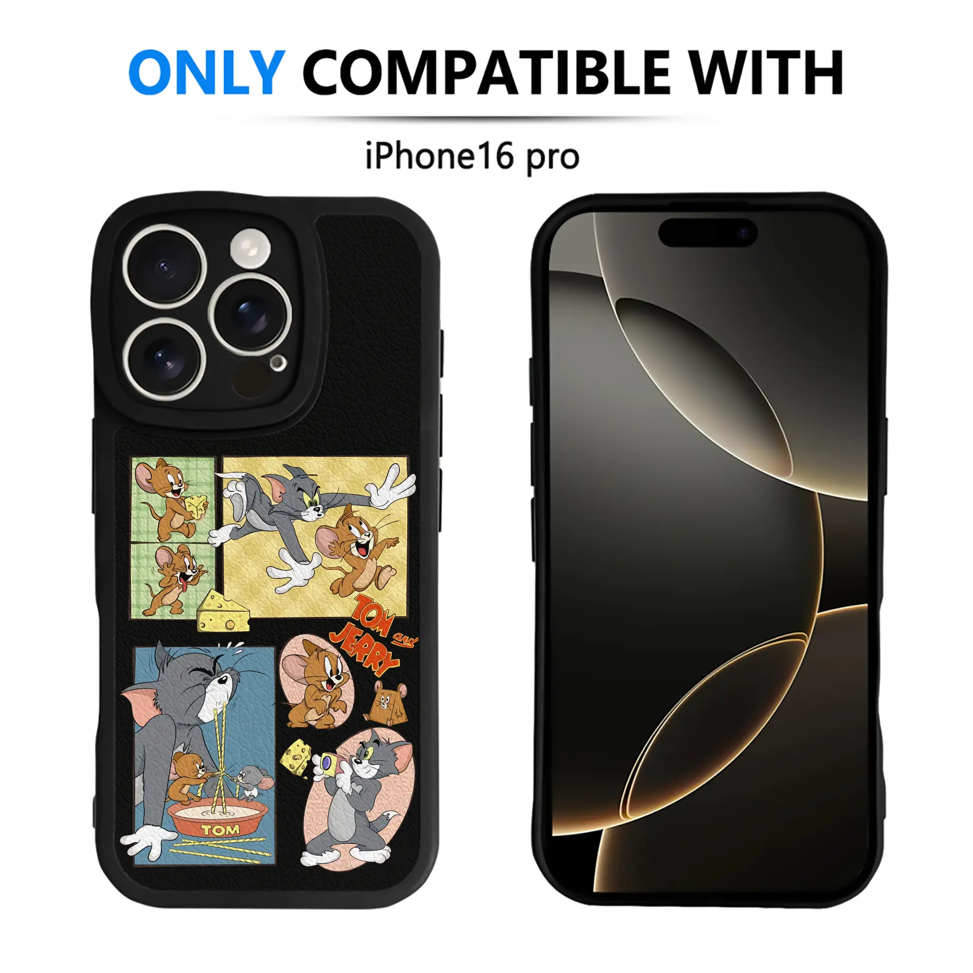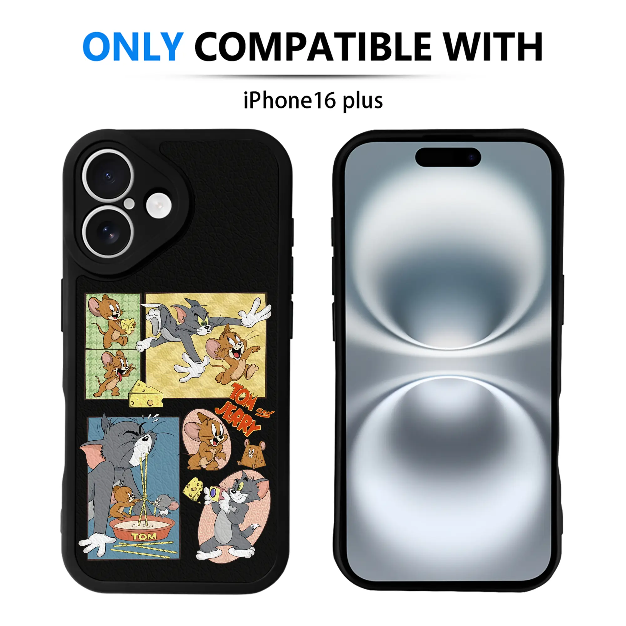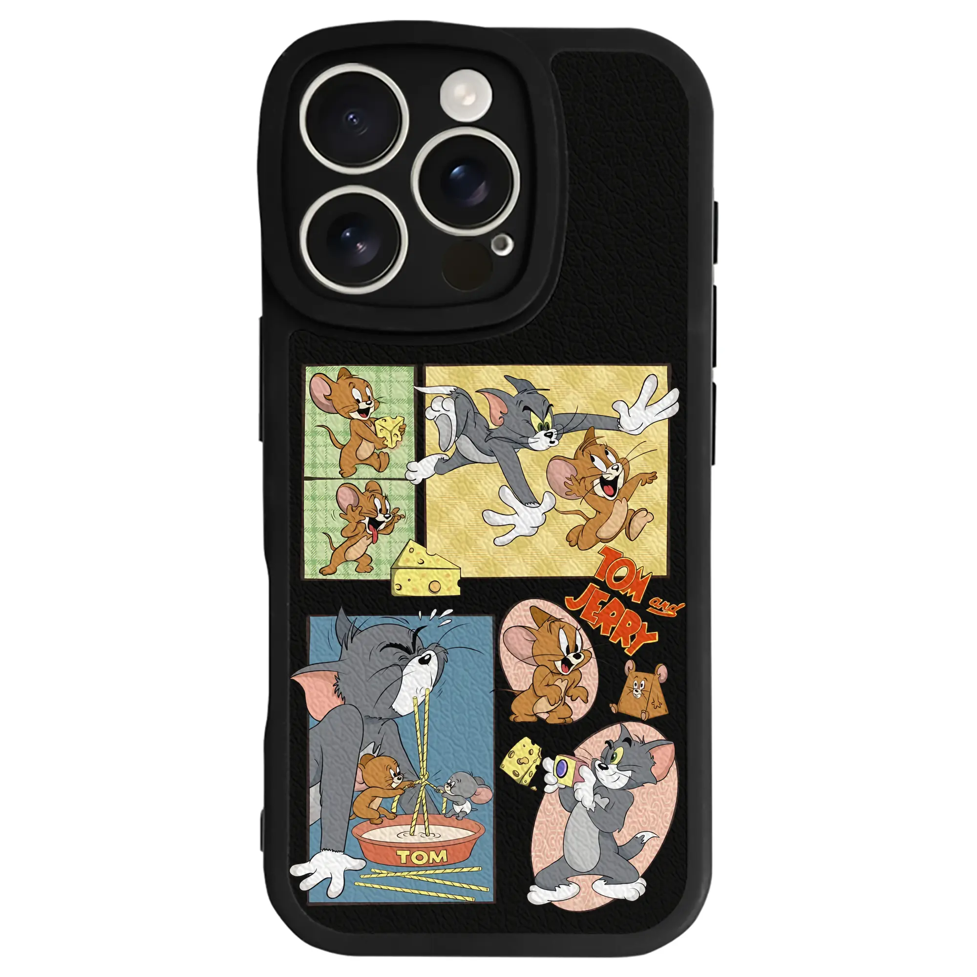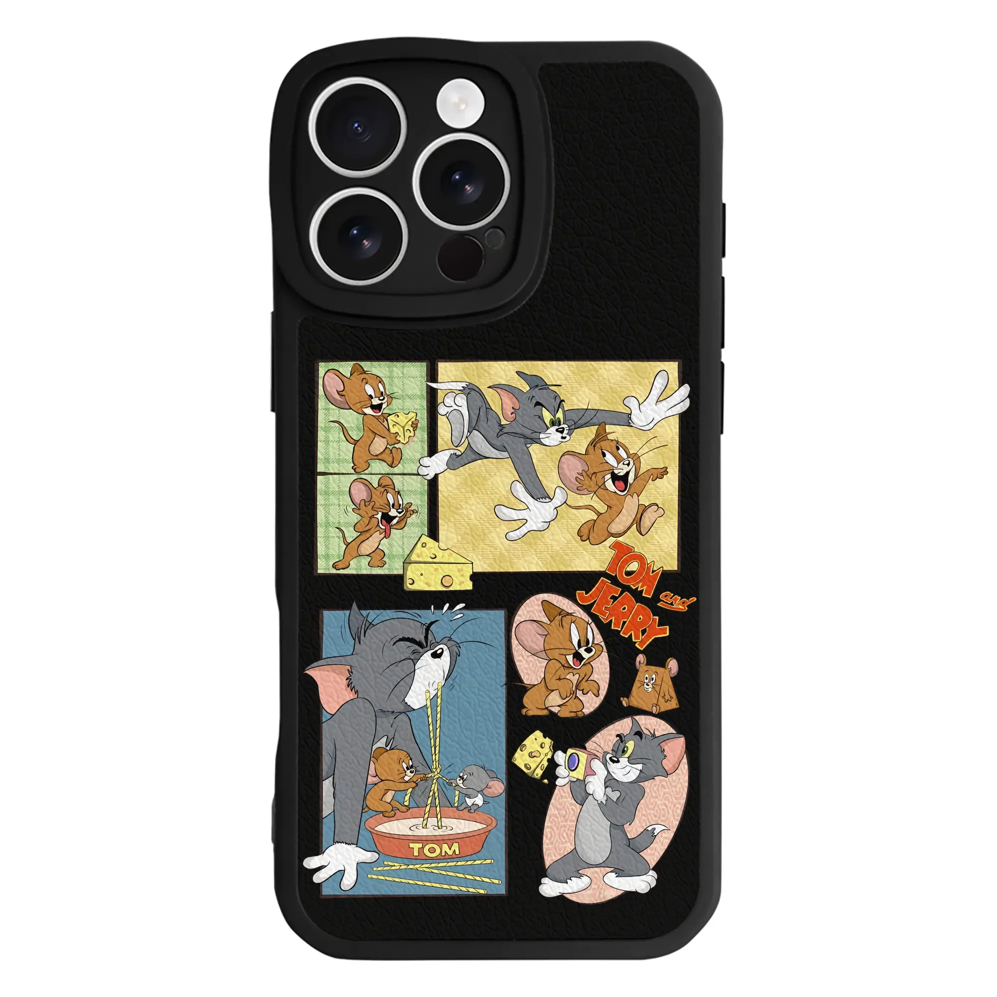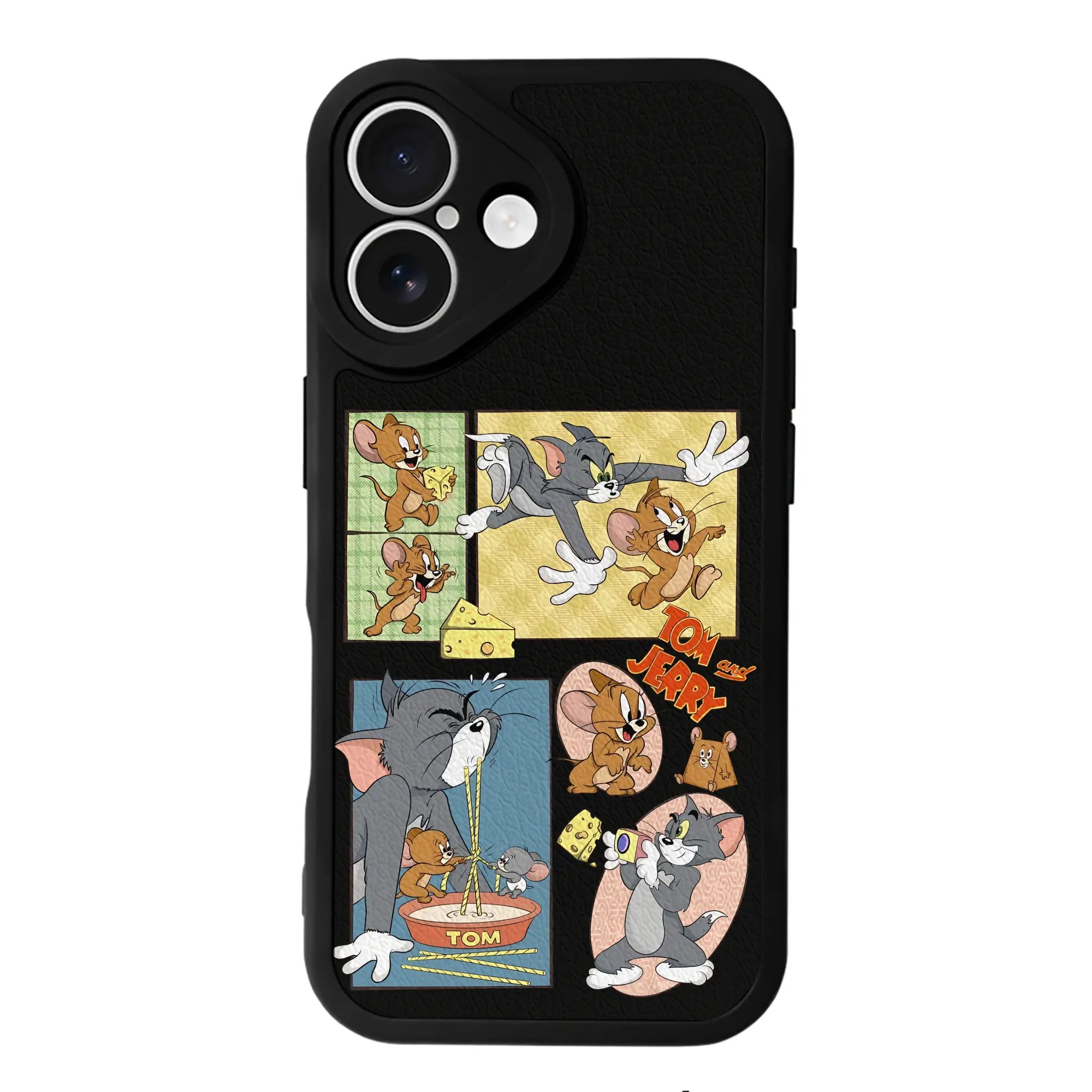 トムとジェリー グッズ トム - IPhone 16シリーズ対応 ・ シリコンスマホケース ・ レザー調 ・ 高精度フィット ・ 耐衝撃 ・ ワイヤレス充電対応 ・ 精密カット