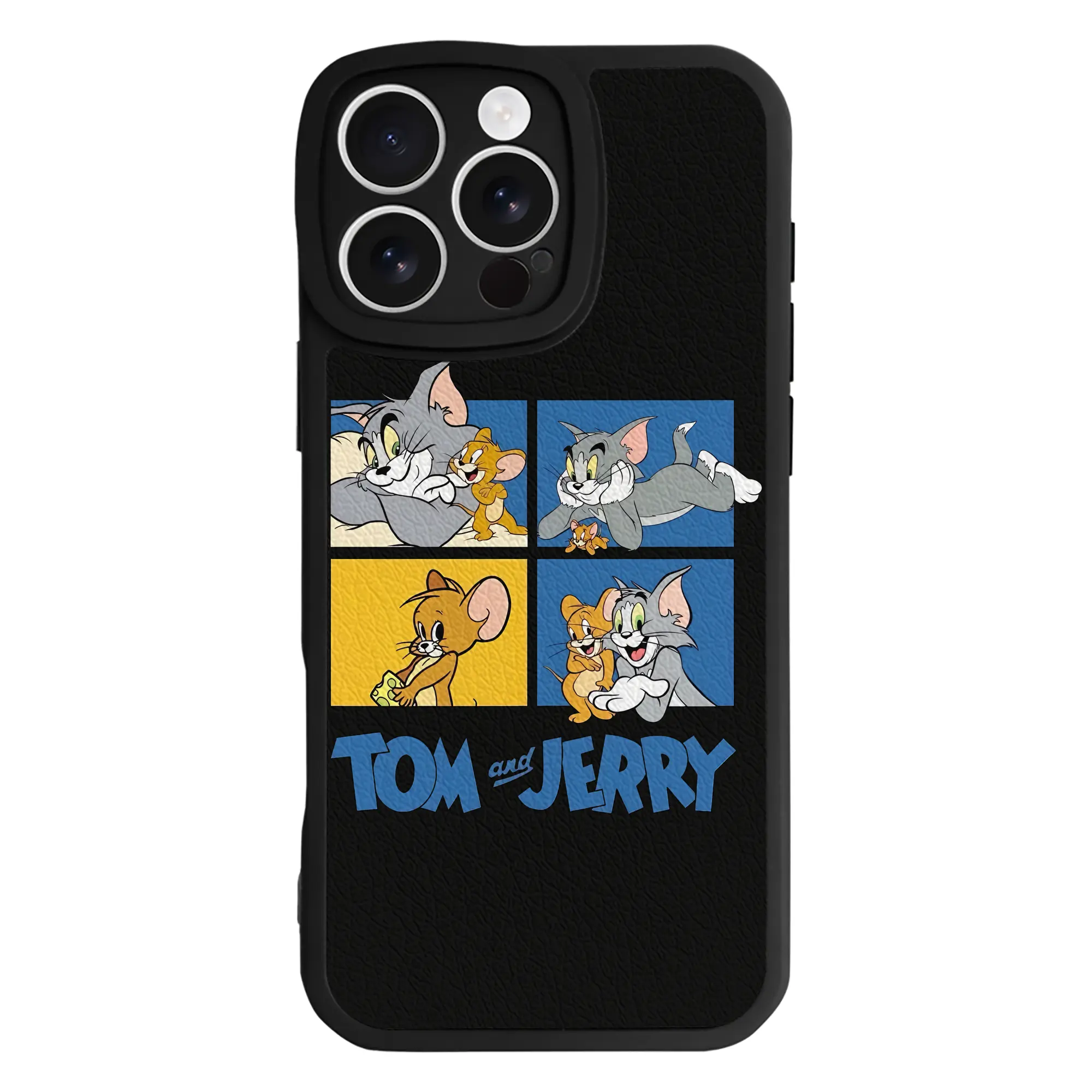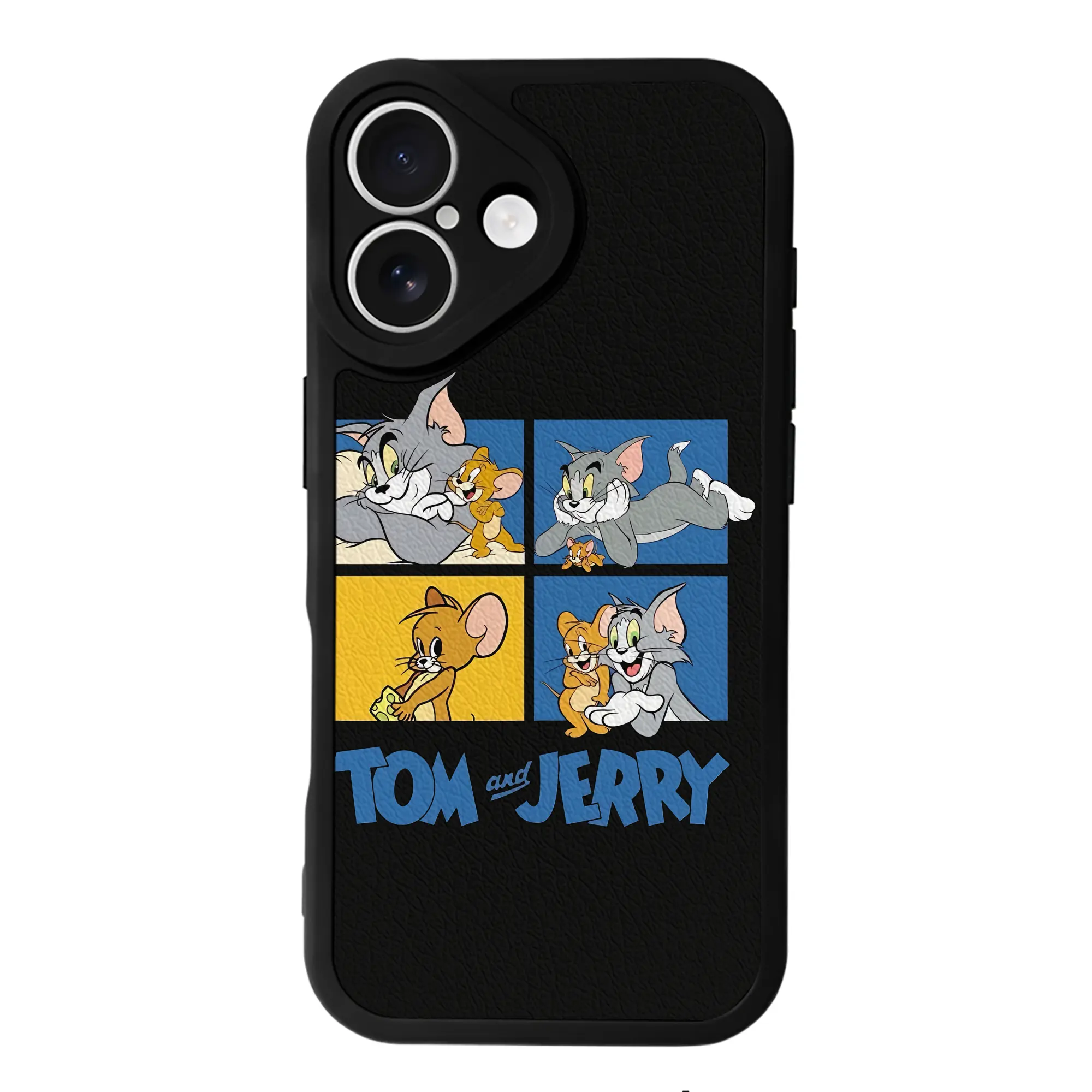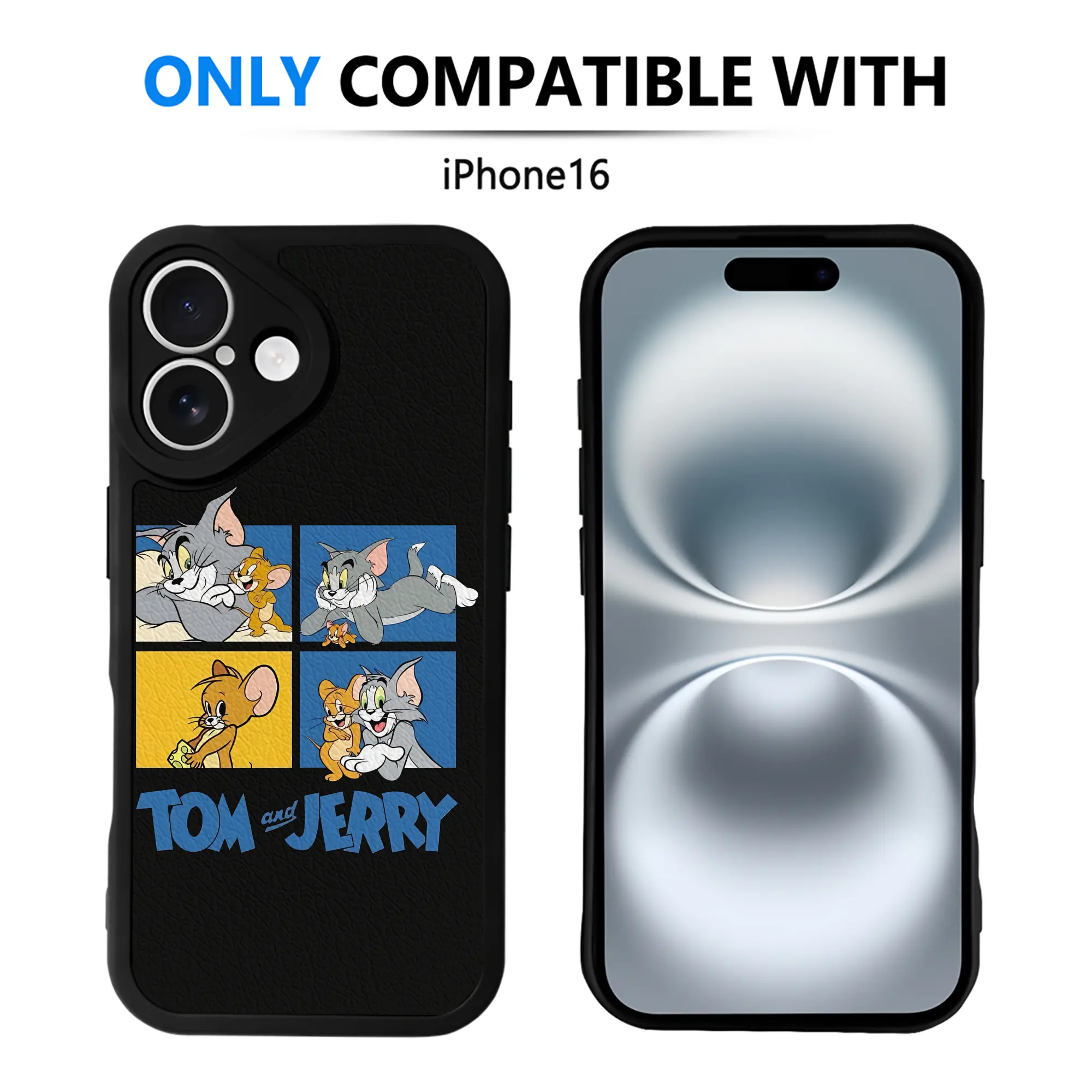 トムとジェリー グッズ トム - IPhone 16シリーズ対応 ・ シリコンスマホケース ・ レザー調 ・ 高精度フィット ・ 耐衝撃 ・ ワイヤレス充電対応 ・ 精密カット