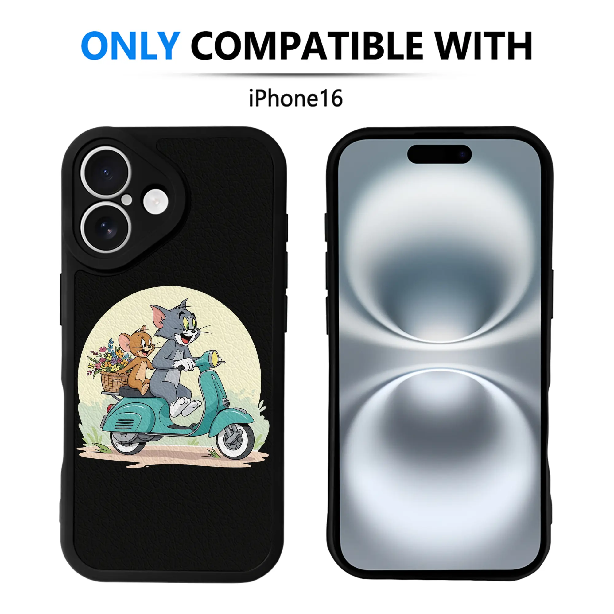 トムとジェリー グッズ トム - IPhone 16シリーズ対応 ・ シリコンスマホケース ・ レザー調 ・ 高精度フィット ・ 耐衝撃 ・ ワイヤレス充電対応 ・ 精密カット