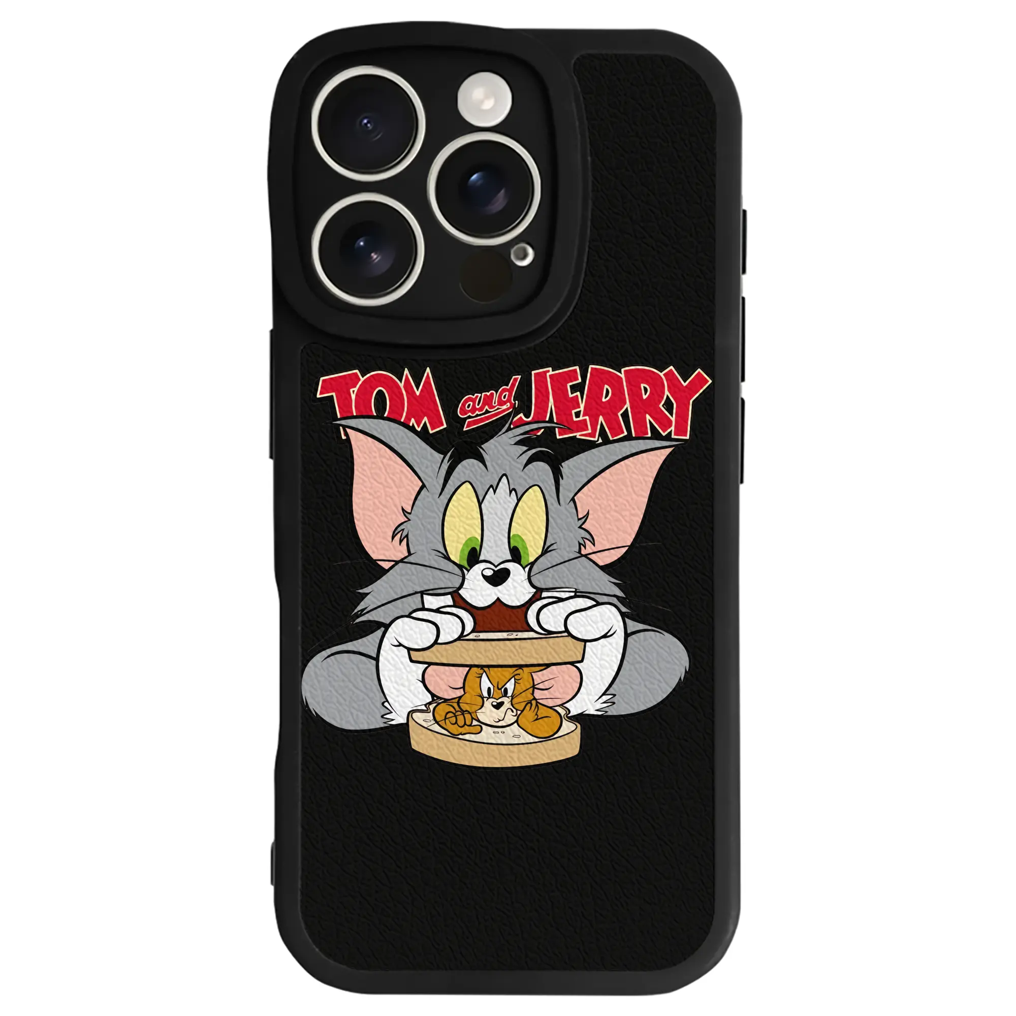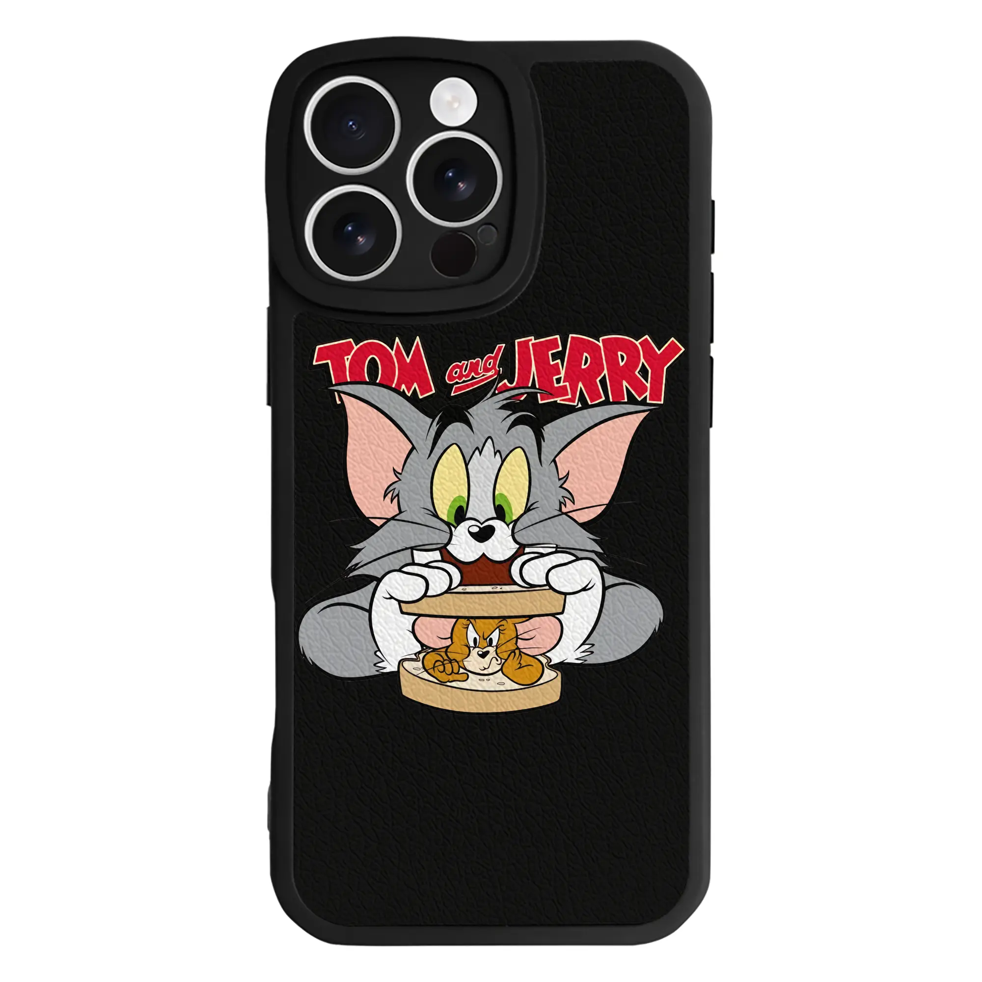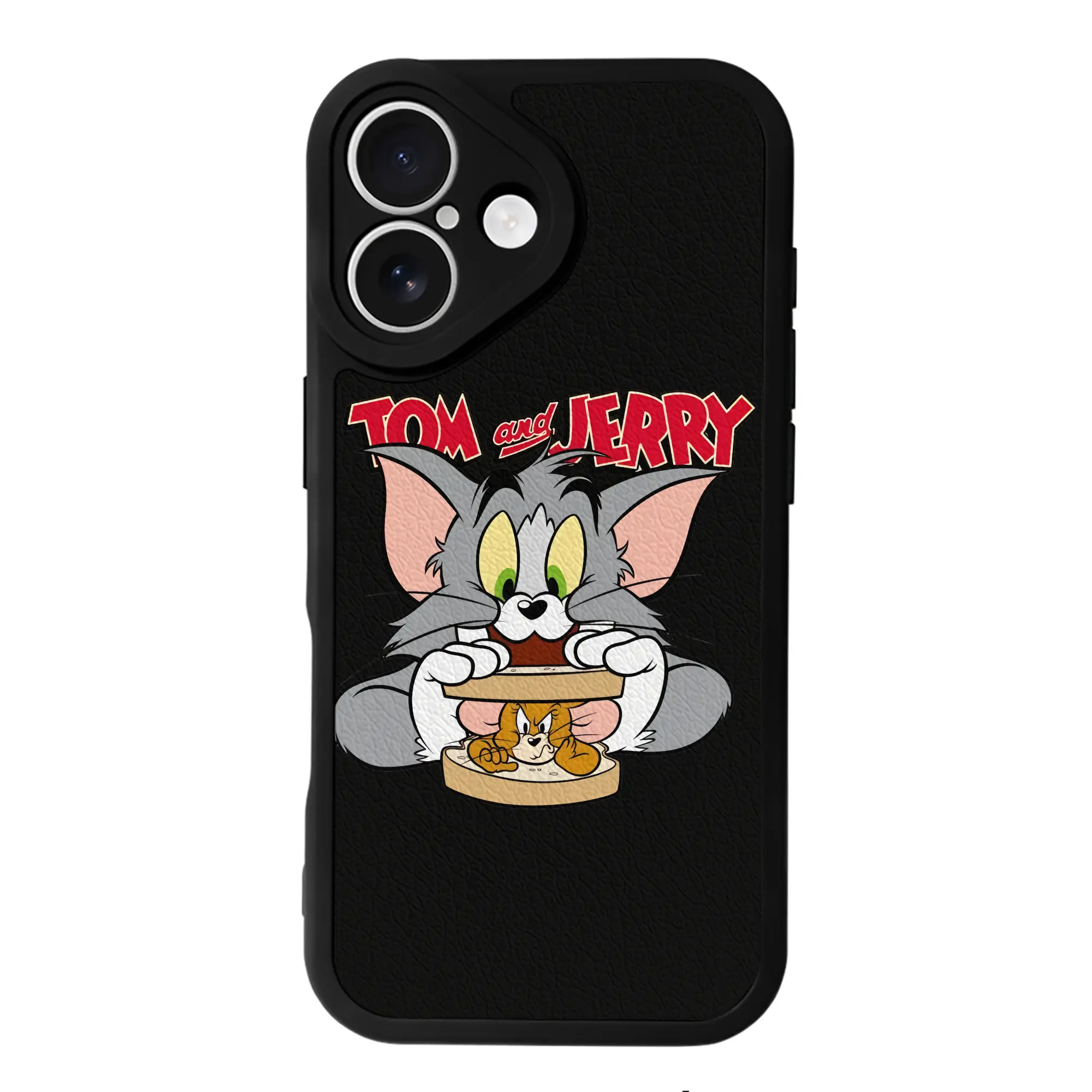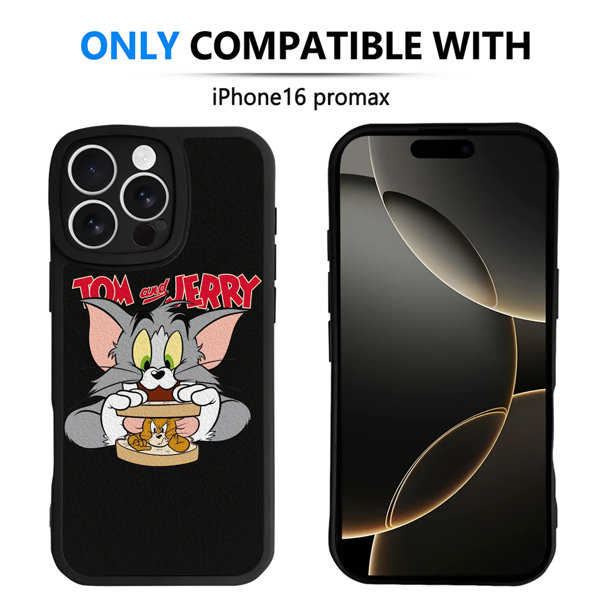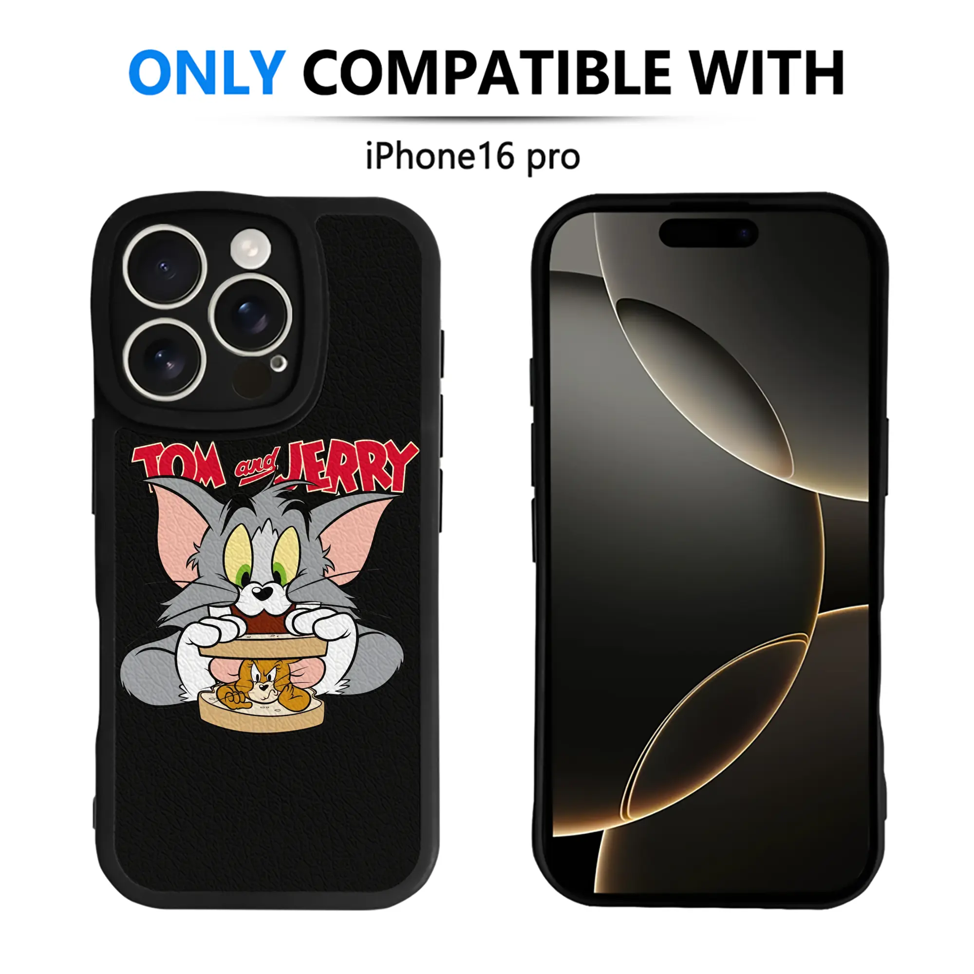 トムとジェリー グッズ トム - IPhone 16シリーズ対応 ・ シリコンスマホケース ・ レザー調 ・ 高精度フィット ・ 耐衝撃 ・ ワイヤレス充電対応 ・ 精密カット