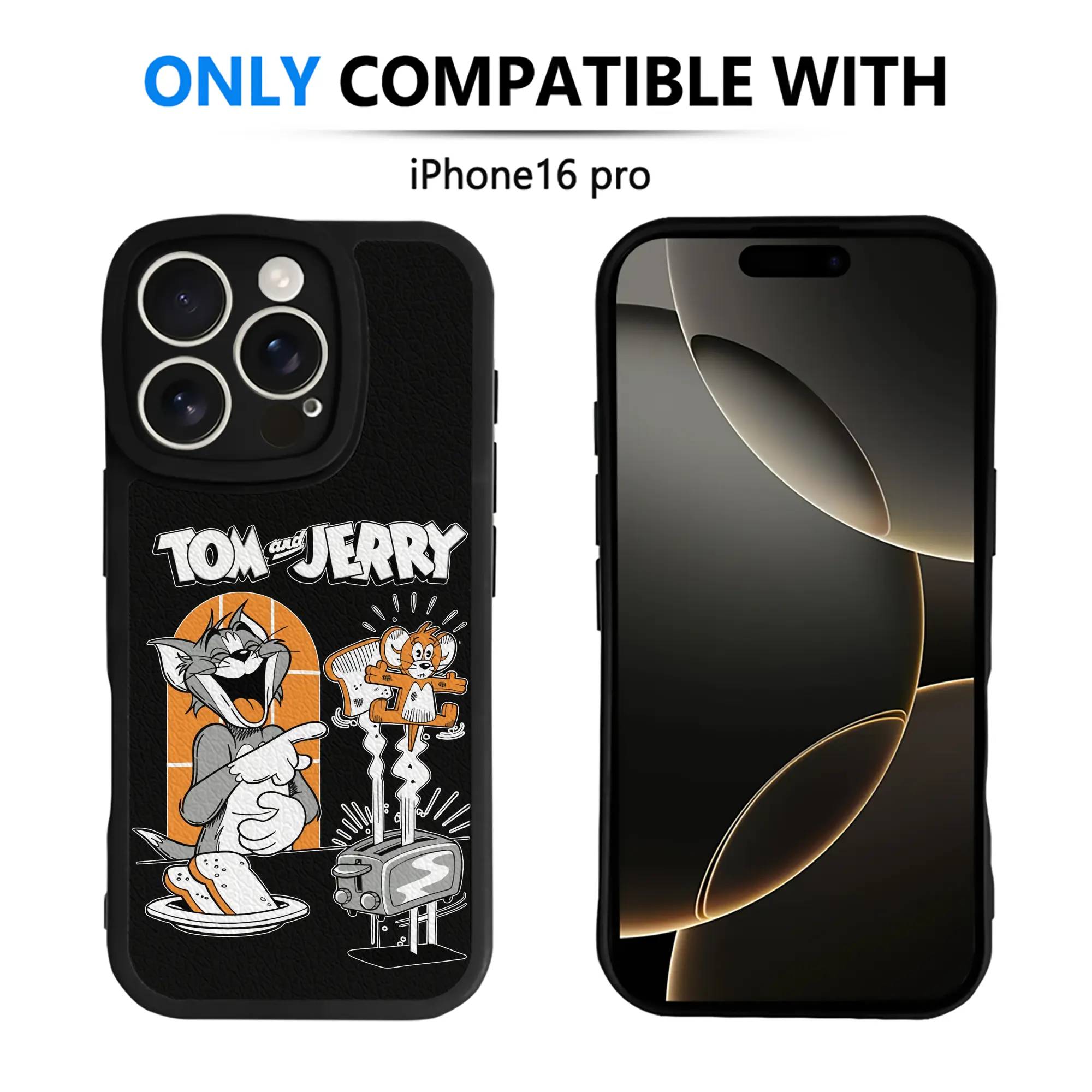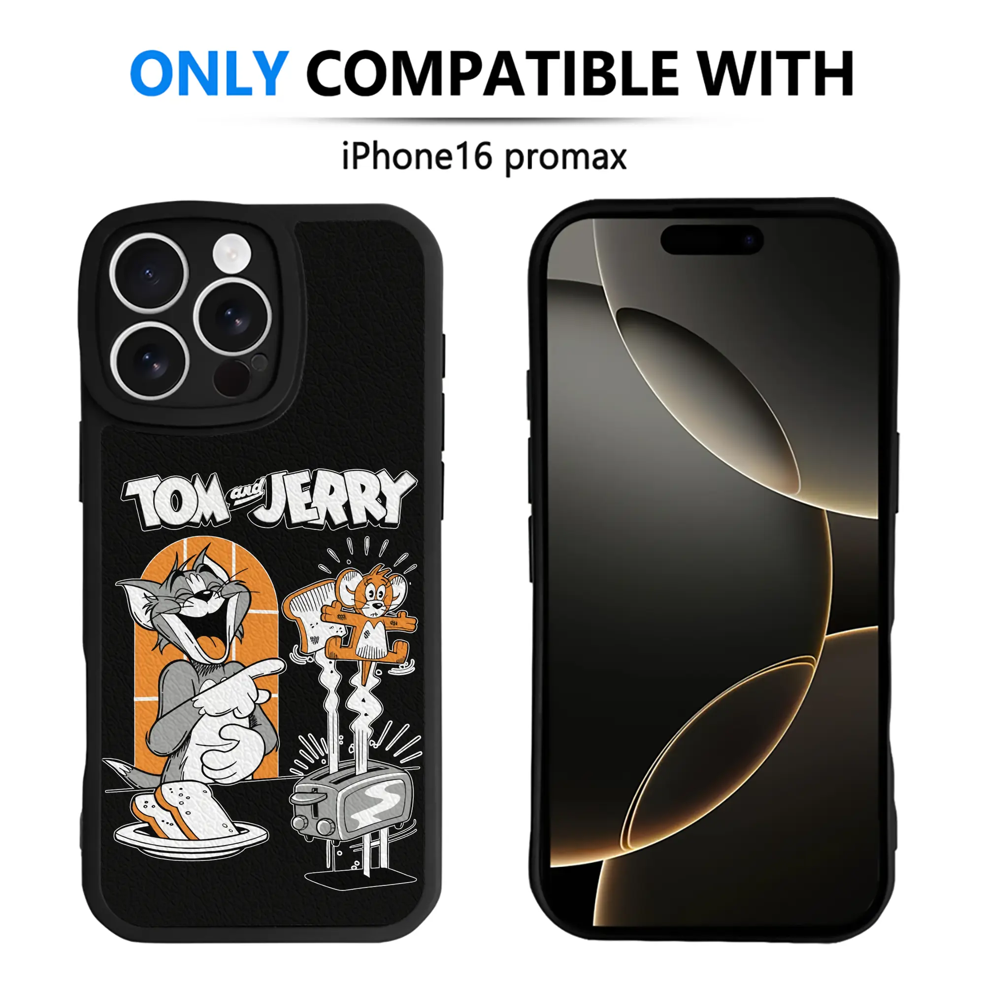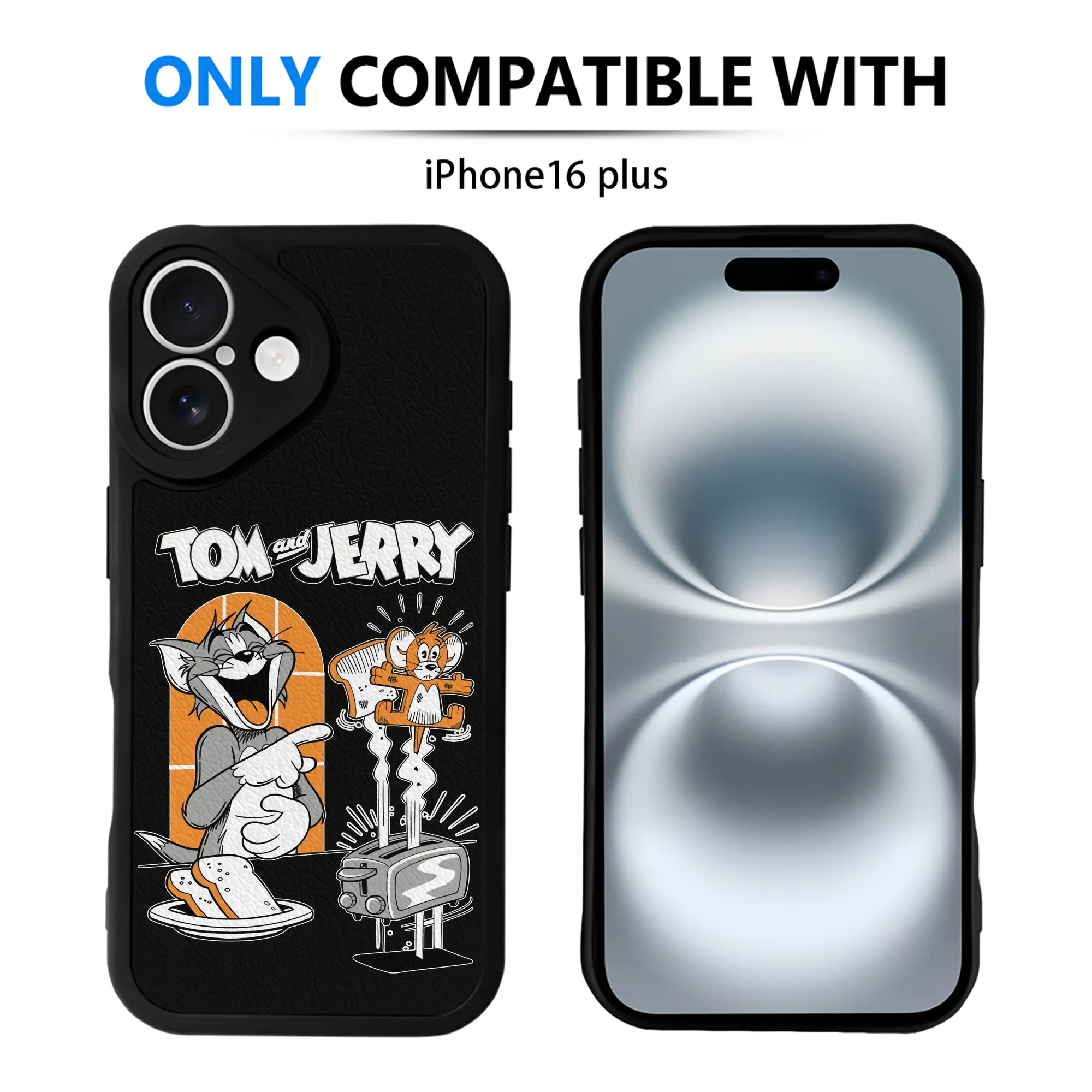 トムとジェリー グッズ トム - IPhone 16シリーズ対応 ・ シリコンスマホケース ・ レザー調 ・ 高精度フィット ・ 耐衝撃 ・ ワイヤレス充電対応 ・ 精密カット