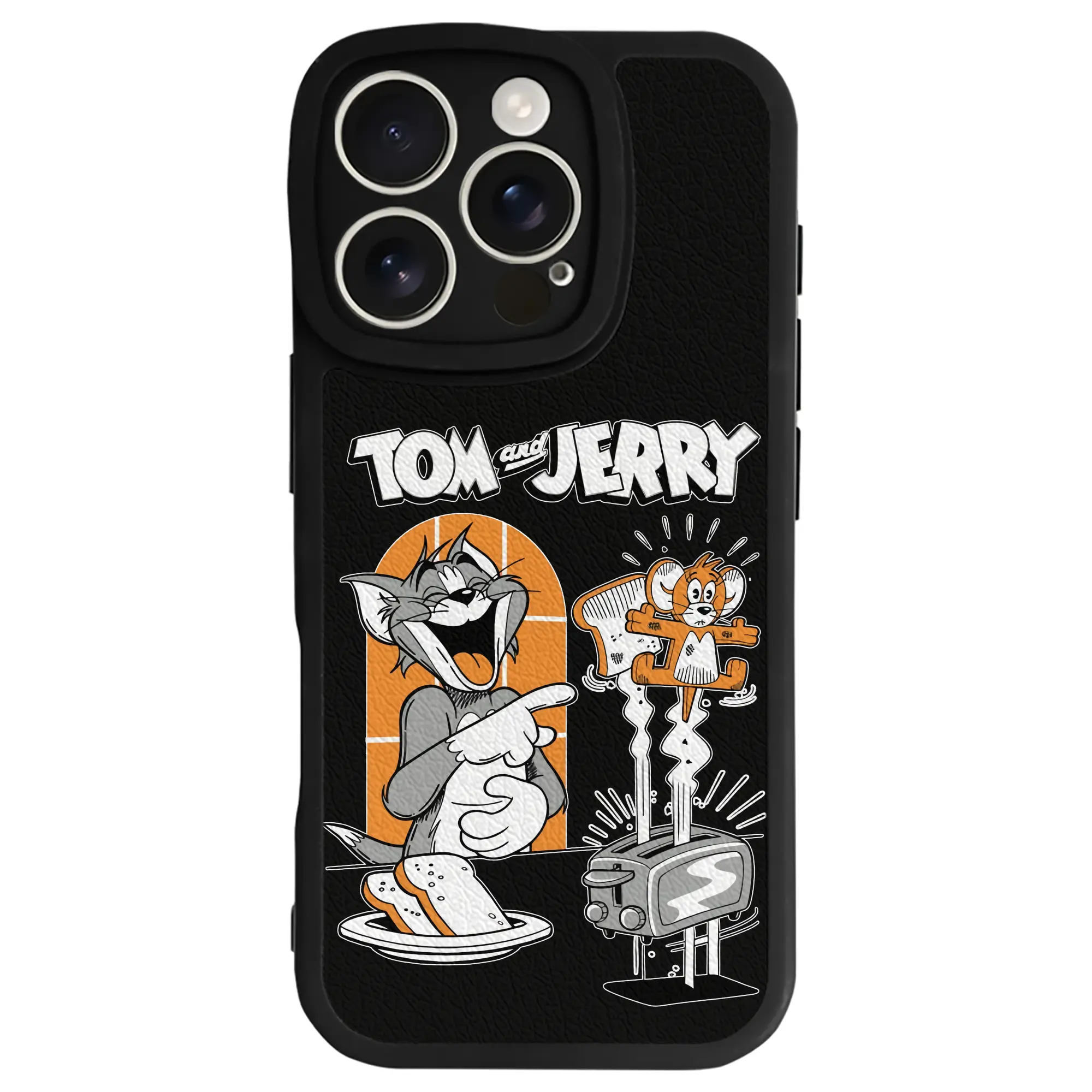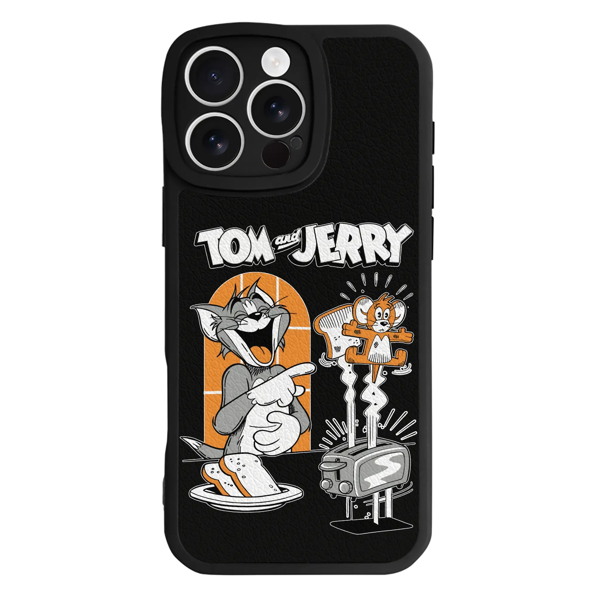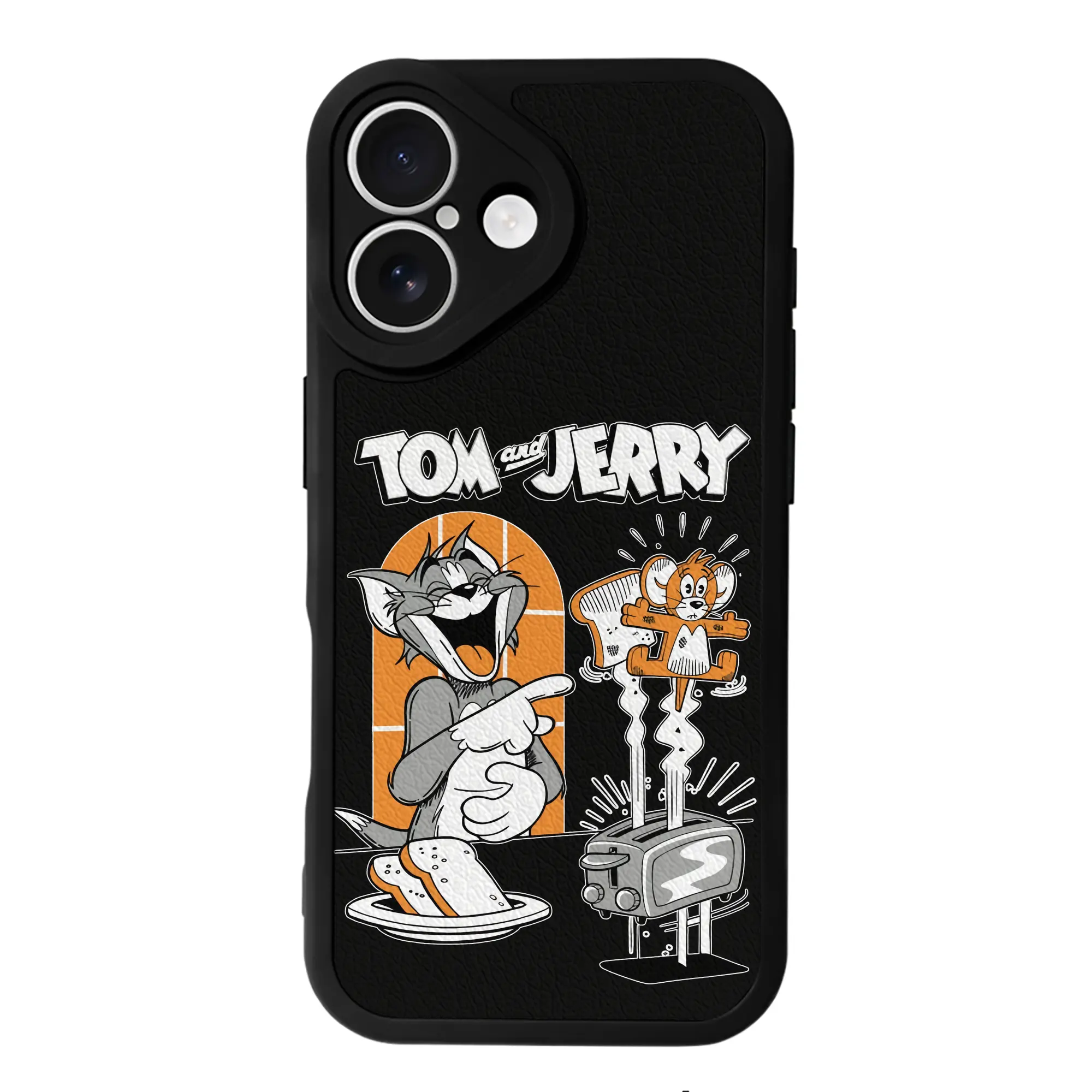 トムとジェリー グッズ トム - IPhone 16シリーズ対応 ・ シリコンスマホケース ・ レザー調 ・ 高精度フィット ・ 耐衝撃 ・ ワイヤレス充電対応 ・ 精密カット