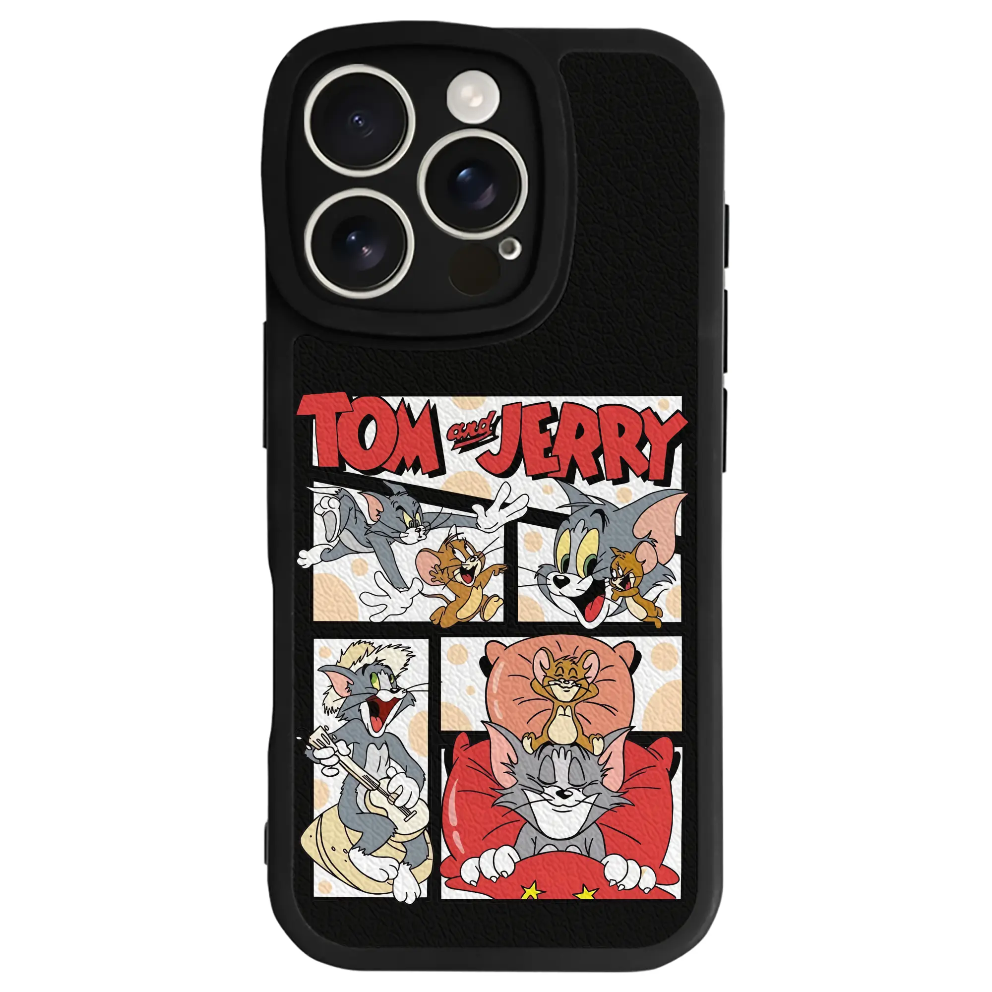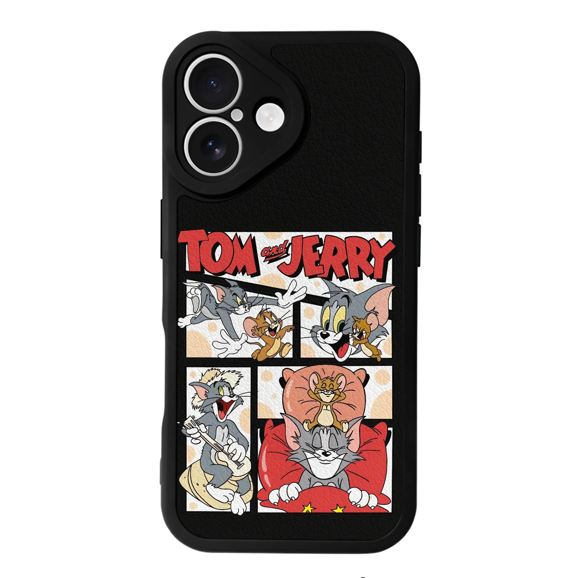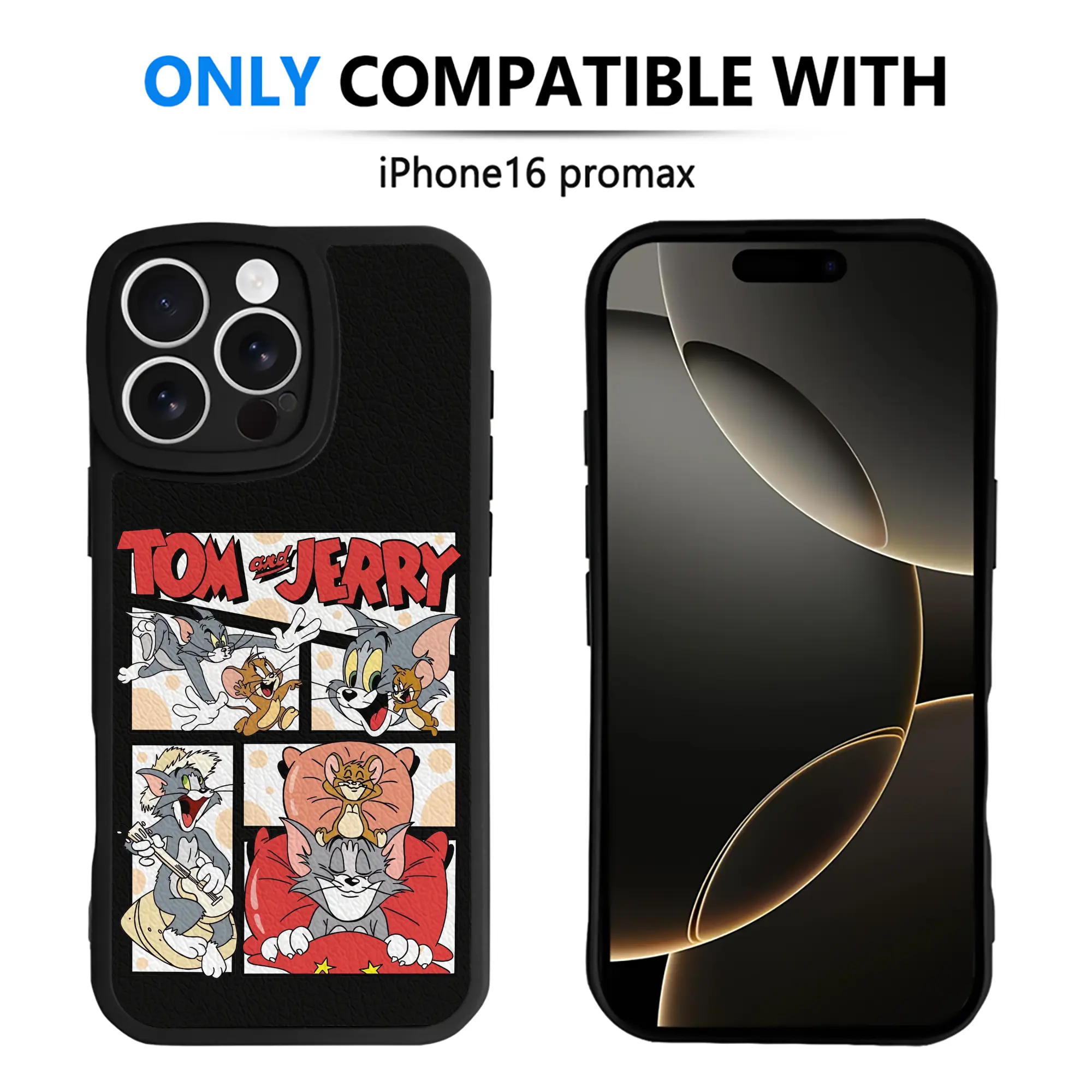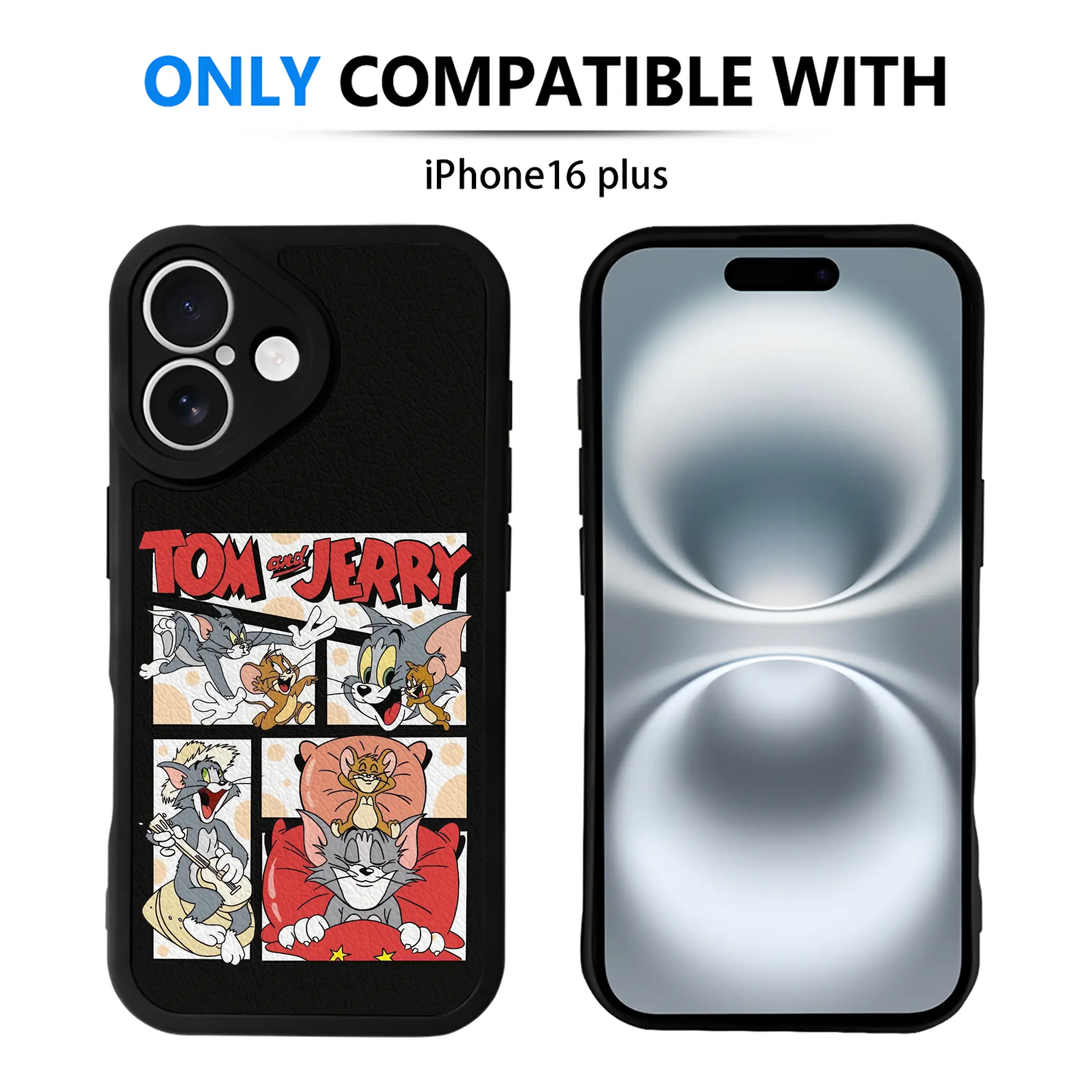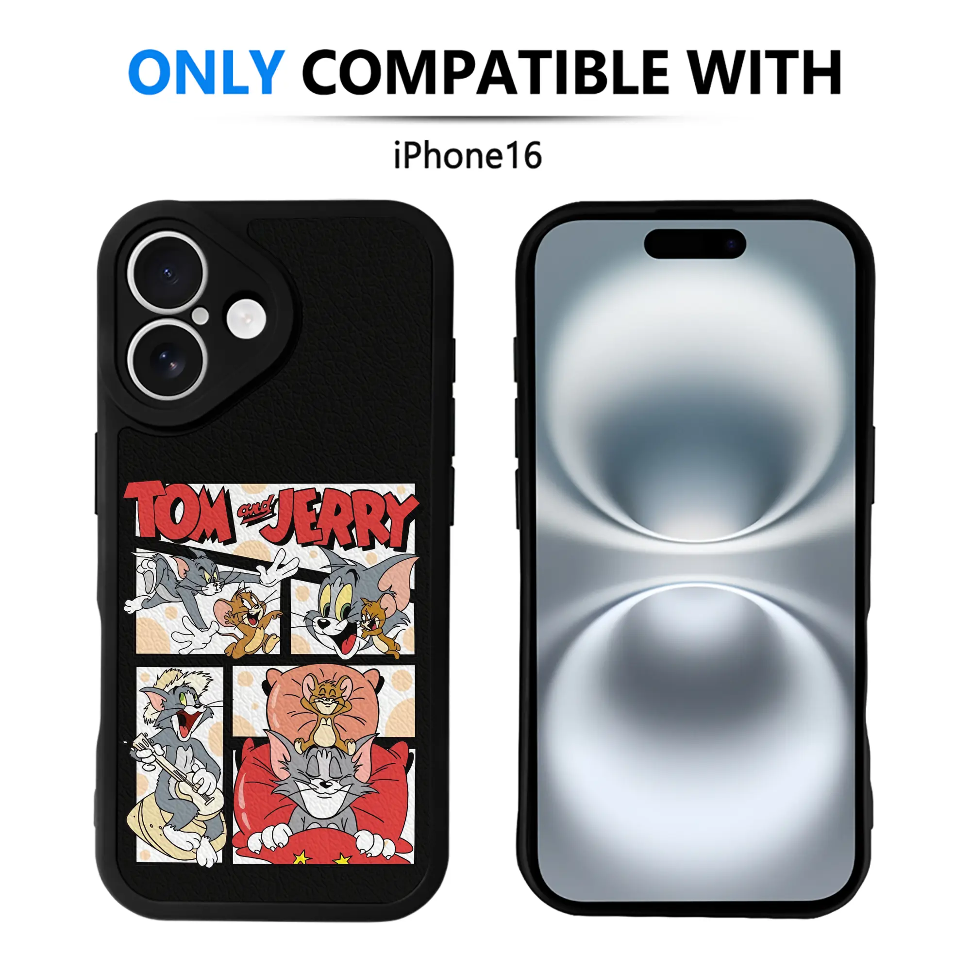 トムとジェリー グッズ トム - IPhone 16シリーズ対応 ・ シリコンスマホケース ・ レザー調 ・ 高精度フィット ・ 耐衝撃 ・ ワイヤレス充電対応 ・ 精密カット