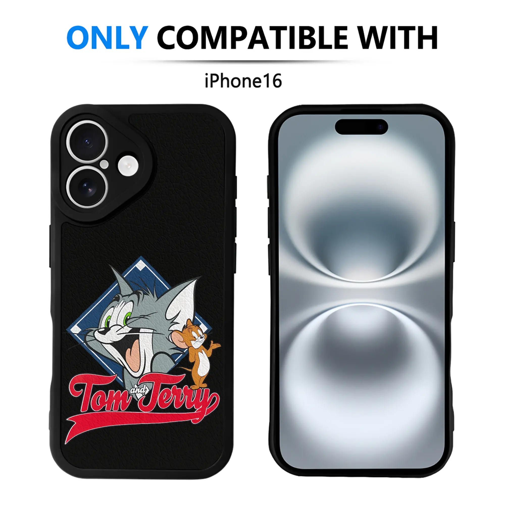 トムとジェリー グッズ トム - IPhone 16シリーズ対応 ・ シリコンスマホケース ・ レザー調 ・ 高精度フィット ・ 耐衝撃 ・ ワイヤレス充電対応 ・ 精密カット