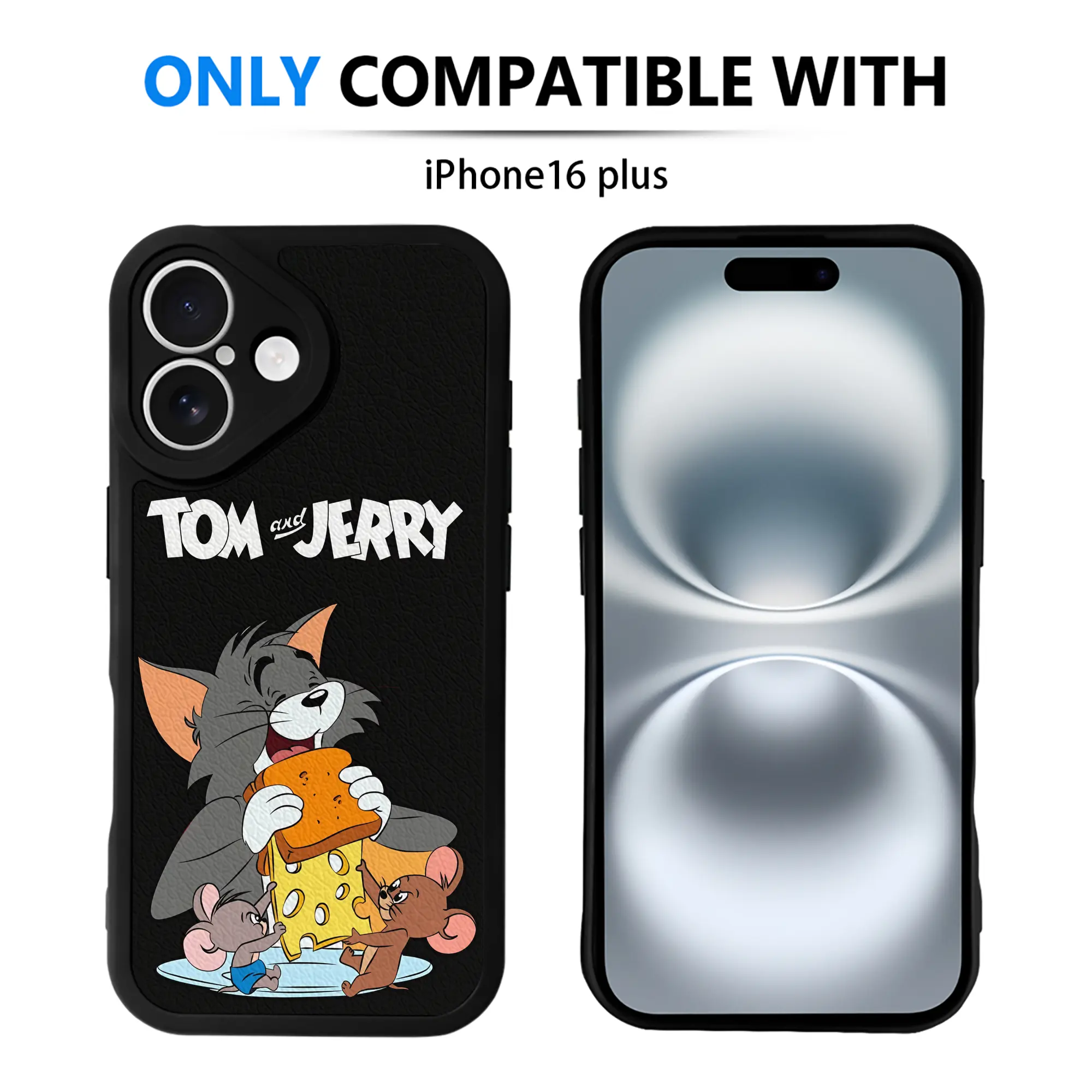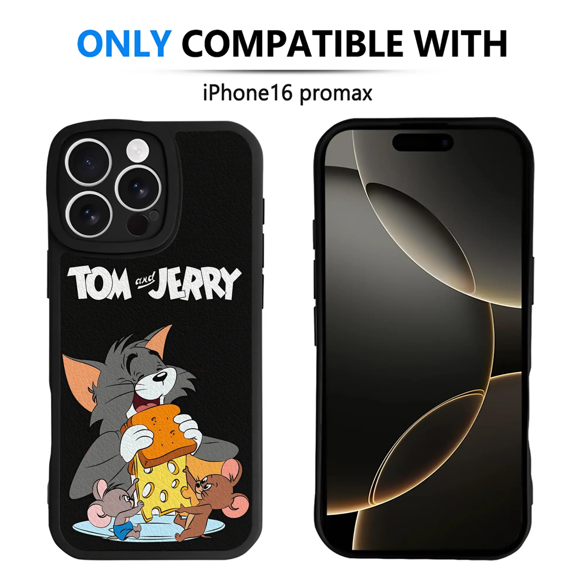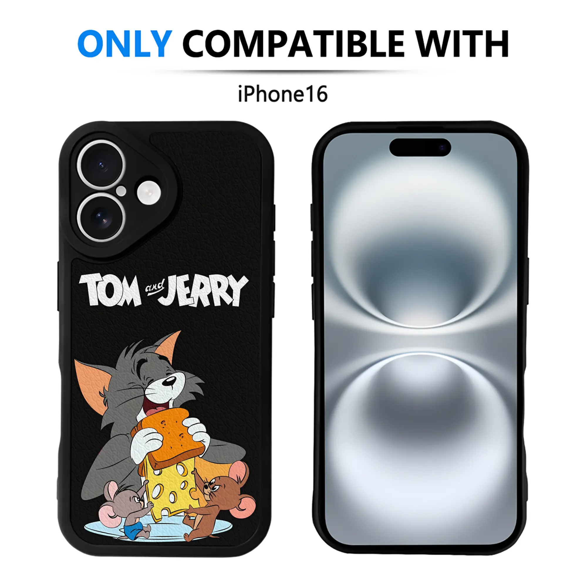 トムとジェリー グッズ トム - IPhone 16シリーズ対応 ・ シリコンスマホケース ・ レザー調 ・ 高精度フィット ・ 耐衝撃 ・ ワイヤレス充電対応 ・ 精密カット