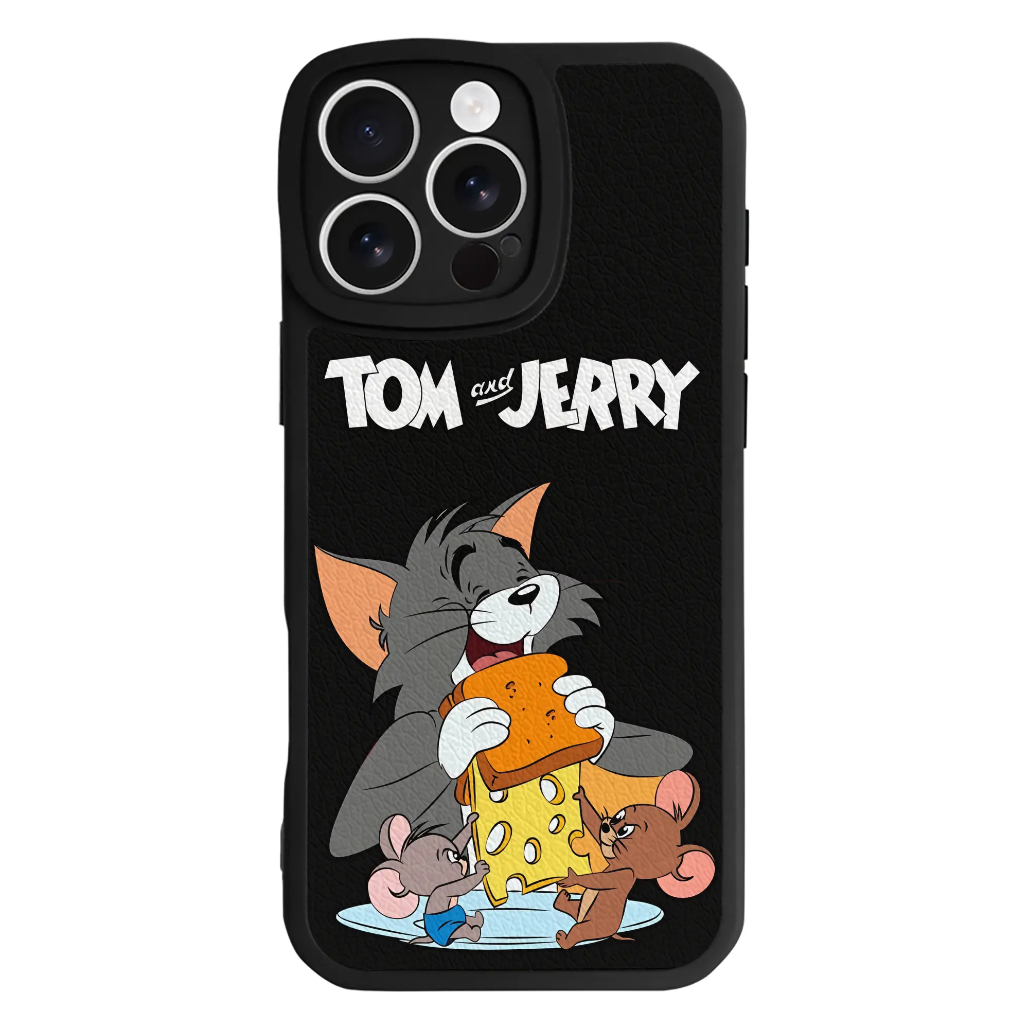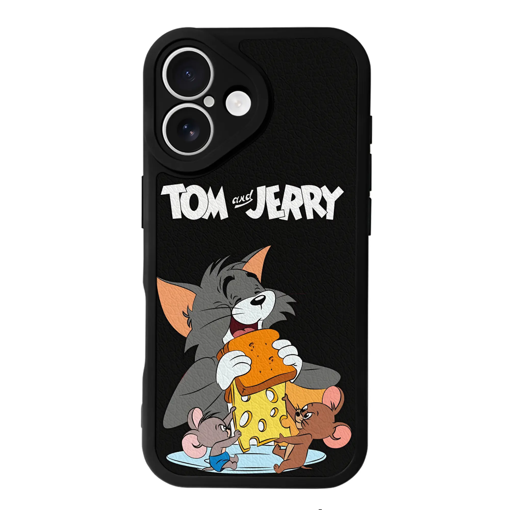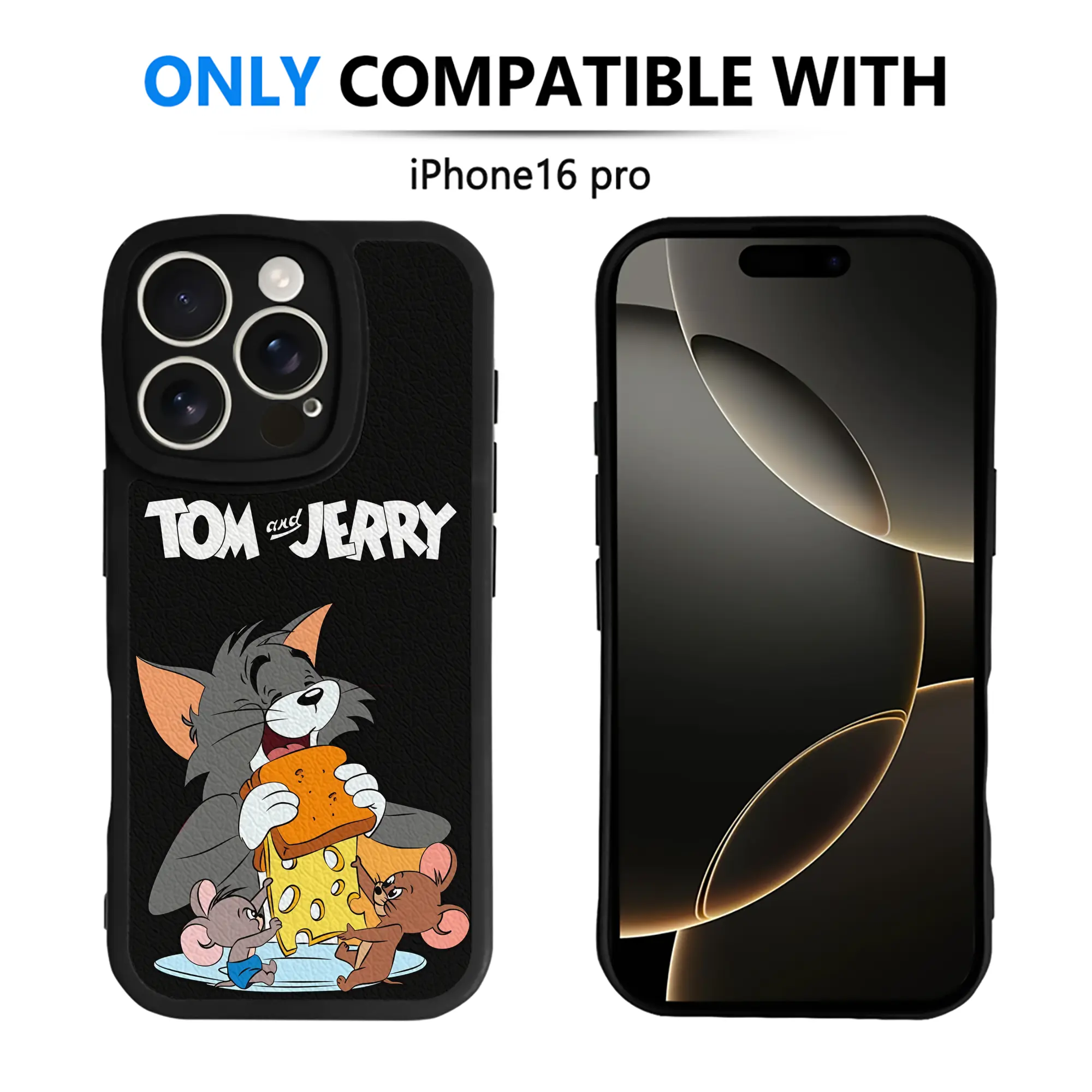 トムとジェリー グッズ トム - IPhone 16シリーズ対応 ・ シリコンスマホケース ・ レザー調 ・ 高精度フィット ・ 耐衝撃 ・ ワイヤレス充電対応 ・ 精密カット