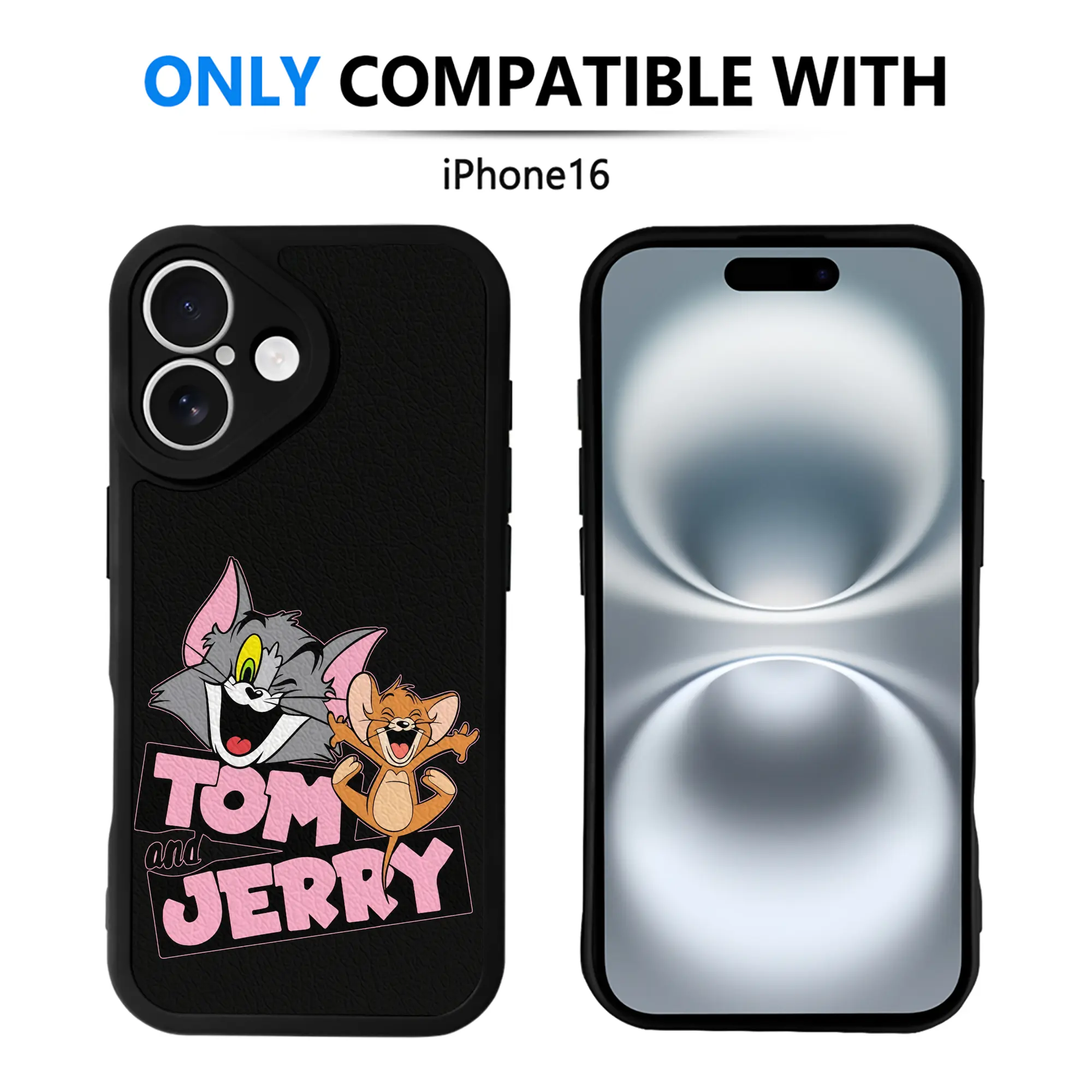 トムとジェリー グッズ トム - IPhone 16シリーズ対応 ・ シリコンスマホケース ・ レザー調 ・ 高精度フィット ・ 耐衝撃 ・ ワイヤレス充電対応 ・ 精密カット