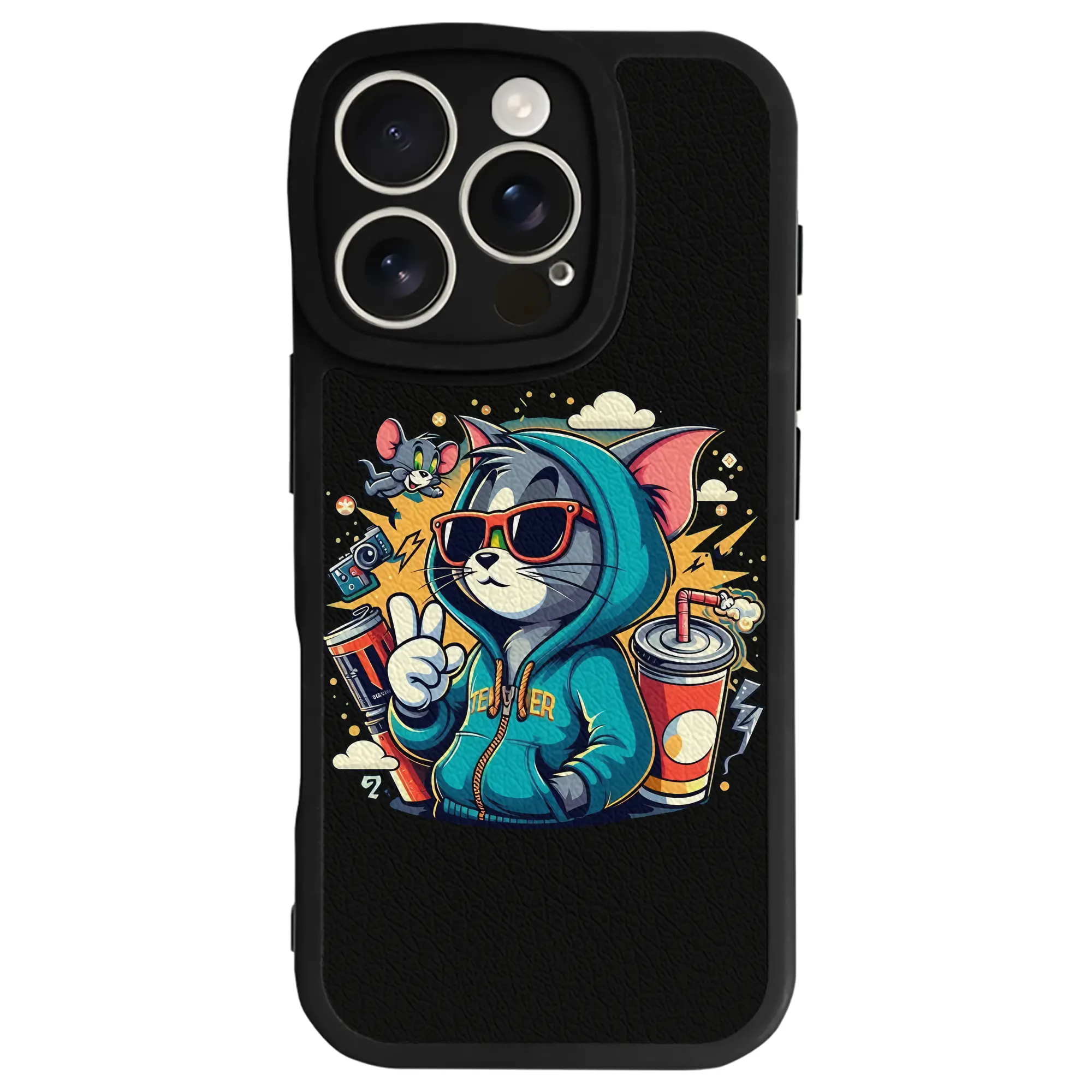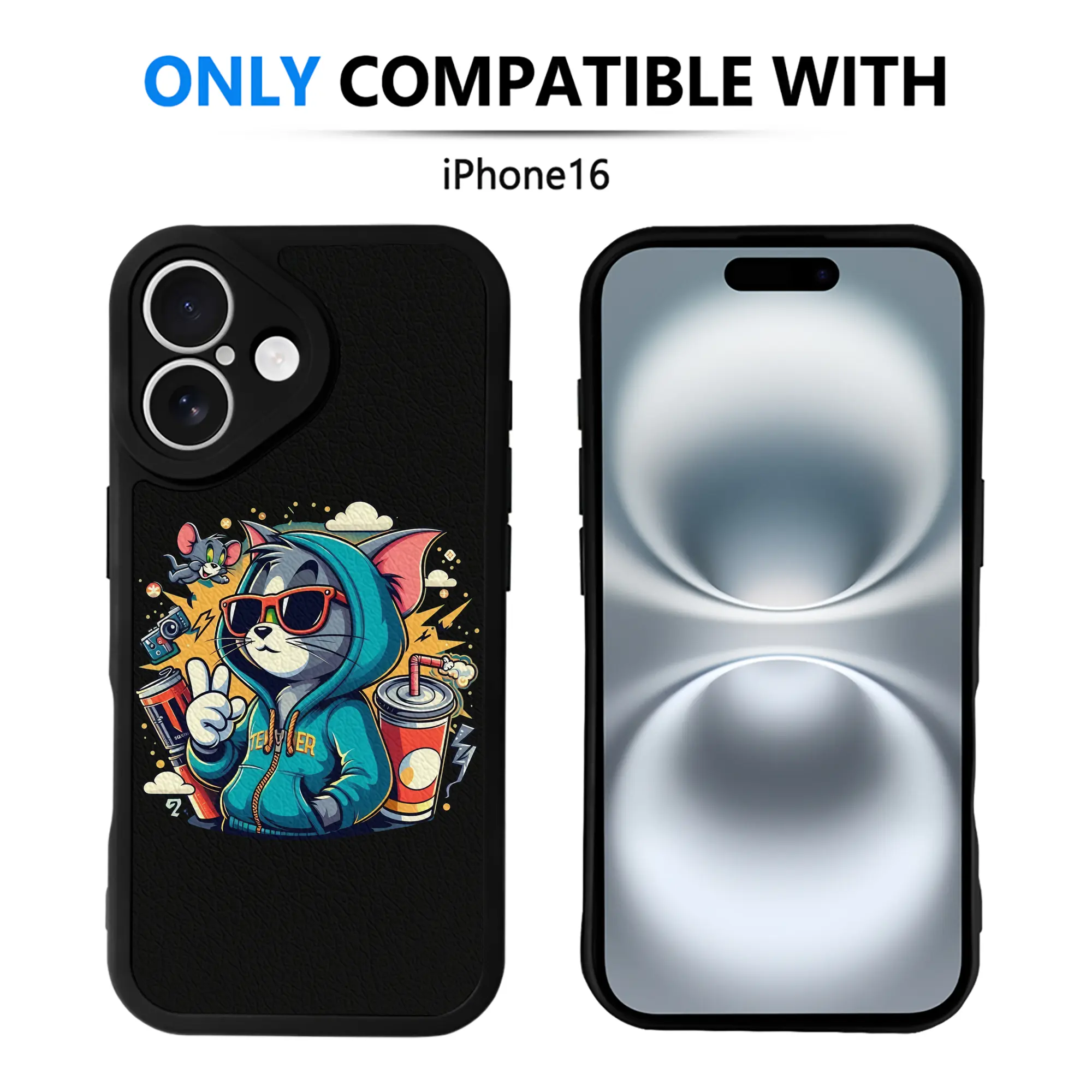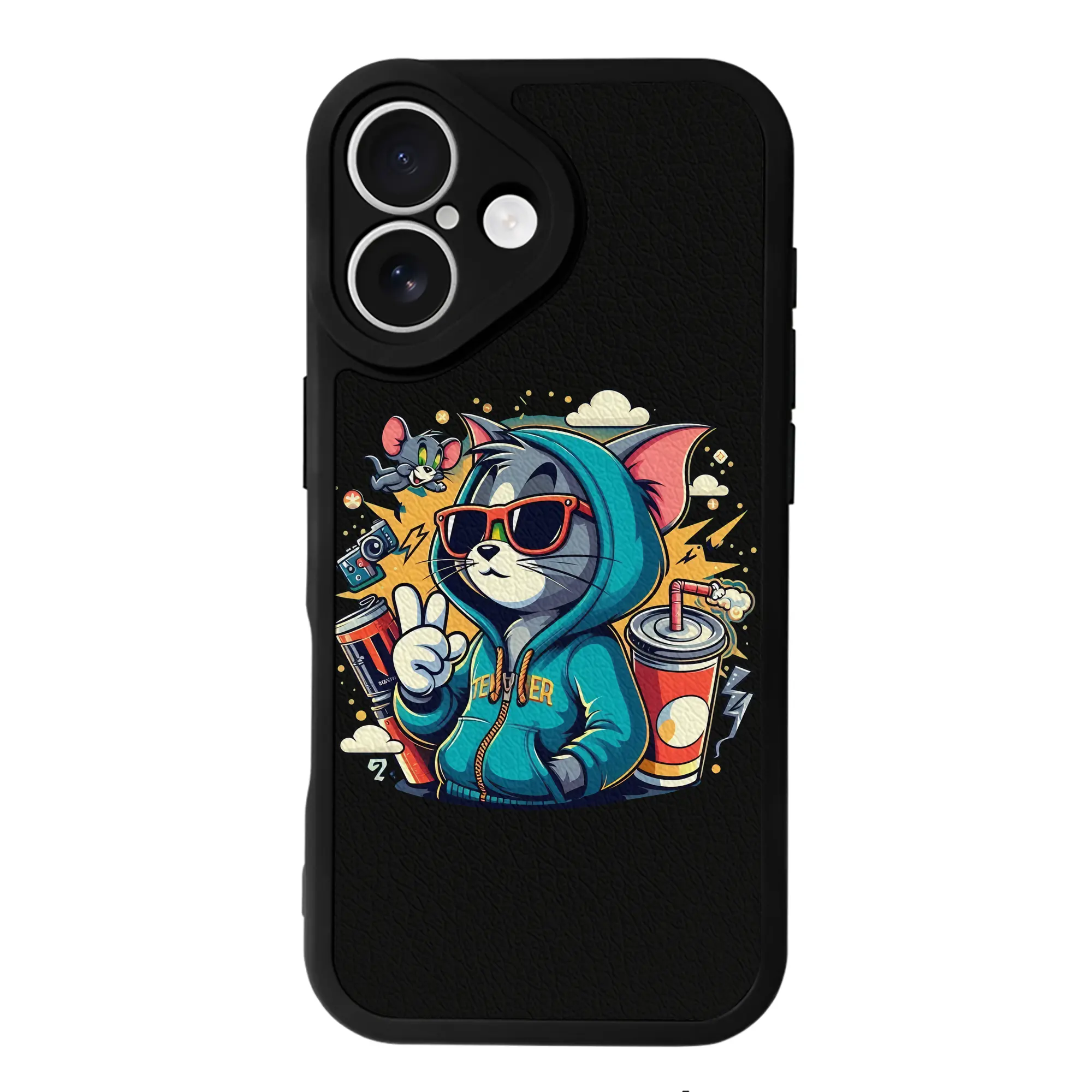 トムとジェリー グッズ トム - IPhone 16シリーズ対応 ・ シリコンスマホケース ・ レザー調 ・ 高精度フィット ・ 耐衝撃 ・ ワイヤレス充電対応 ・ 精密カット
