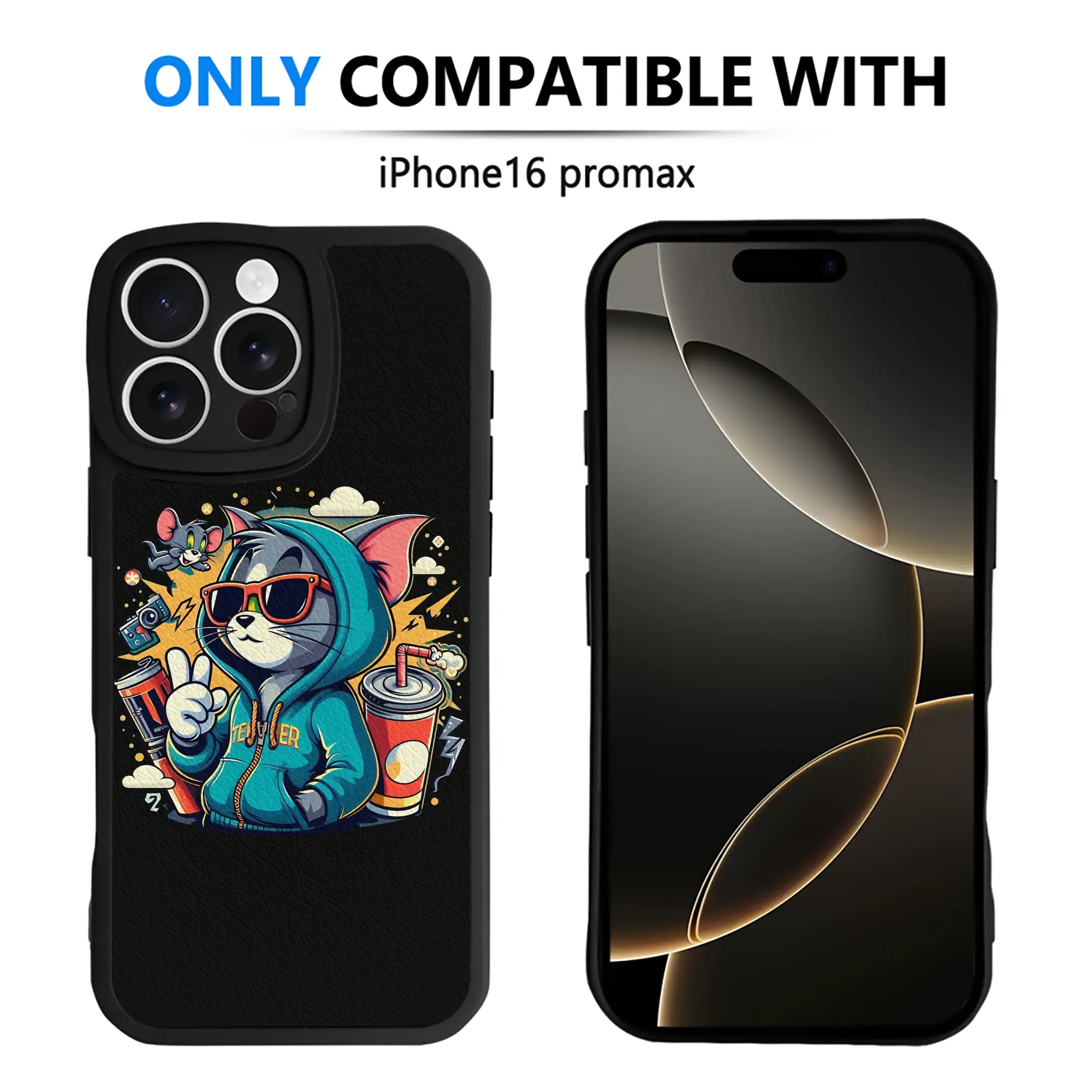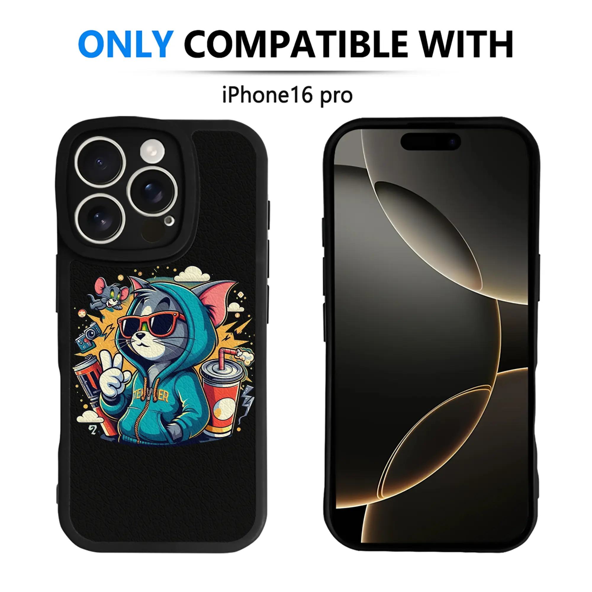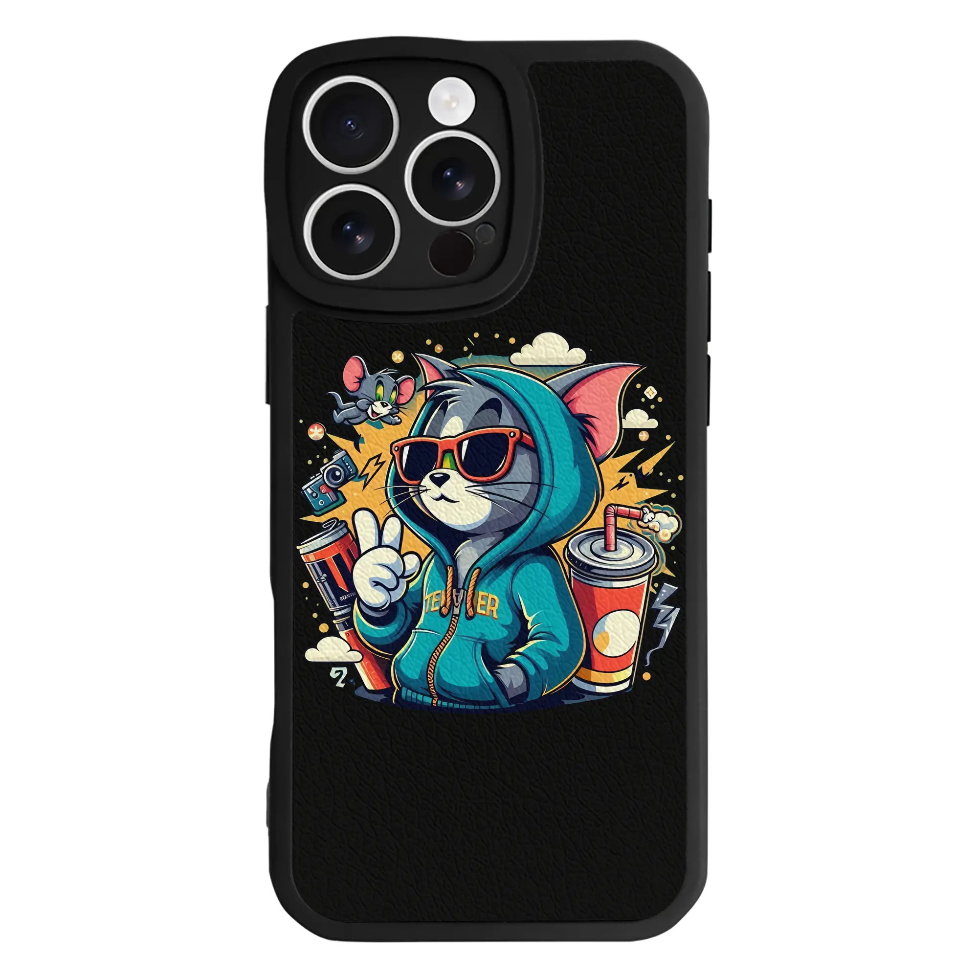 トムとジェリー グッズ トム - IPhone 16シリーズ対応 ・ シリコンスマホケース ・ レザー調 ・ 高精度フィット ・ 耐衝撃 ・ ワイヤレス充電対応 ・ 精密カット