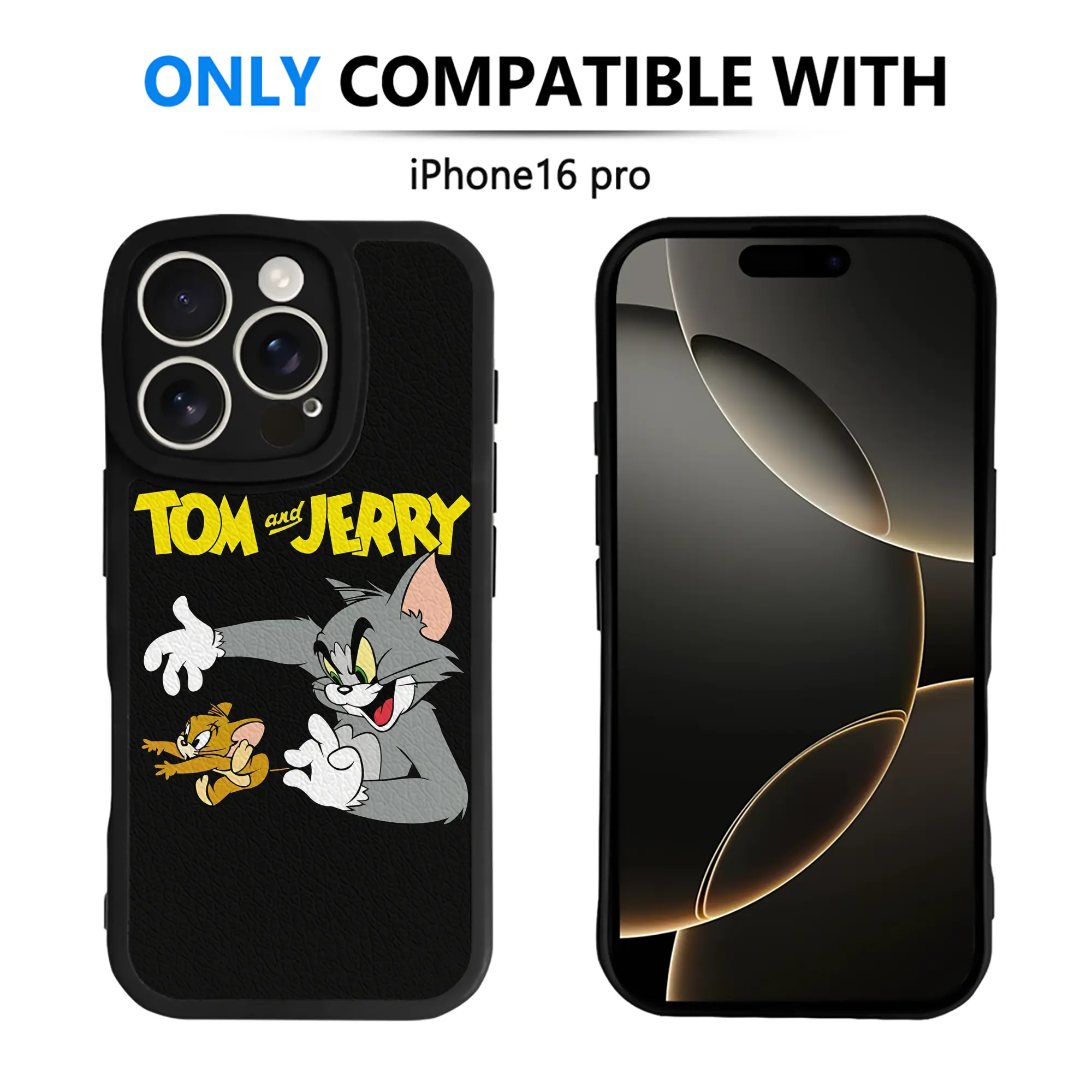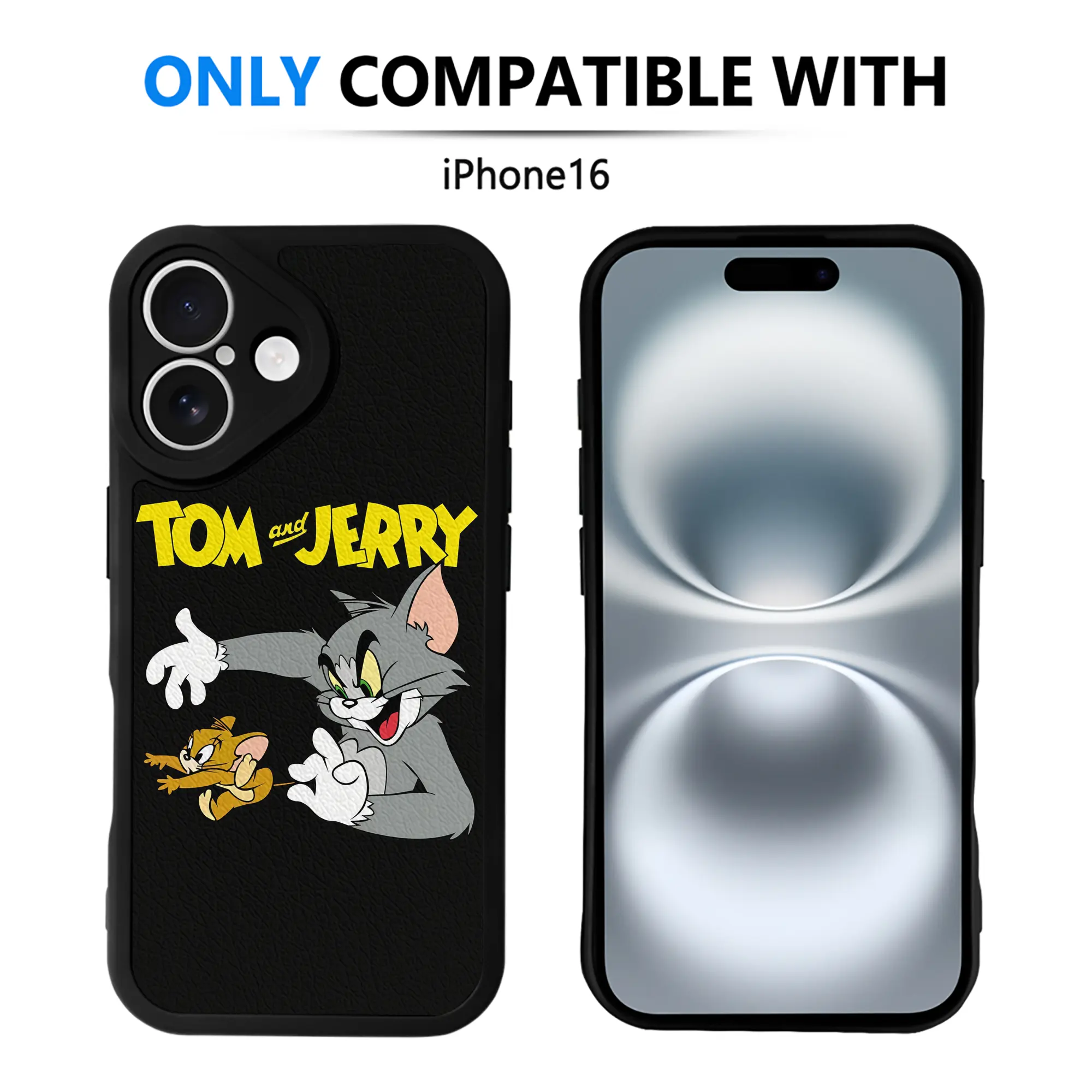 トムとジェリー グッズ トム - IPhone 16シリーズ対応 ・ シリコンスマホケース ・ レザー調 ・ 高精度フィット ・ 耐衝撃 ・ ワイヤレス充電対応 ・ 精密カット