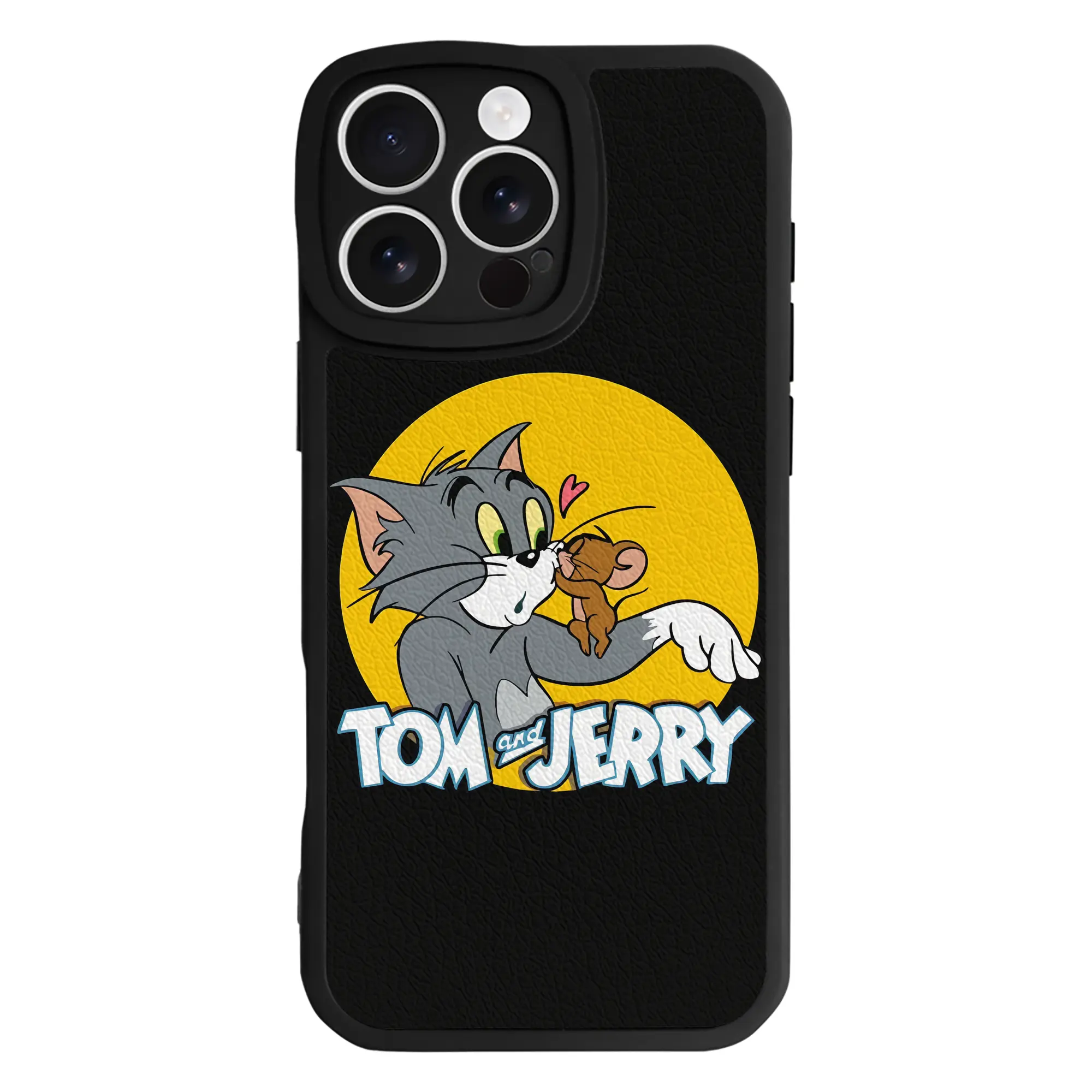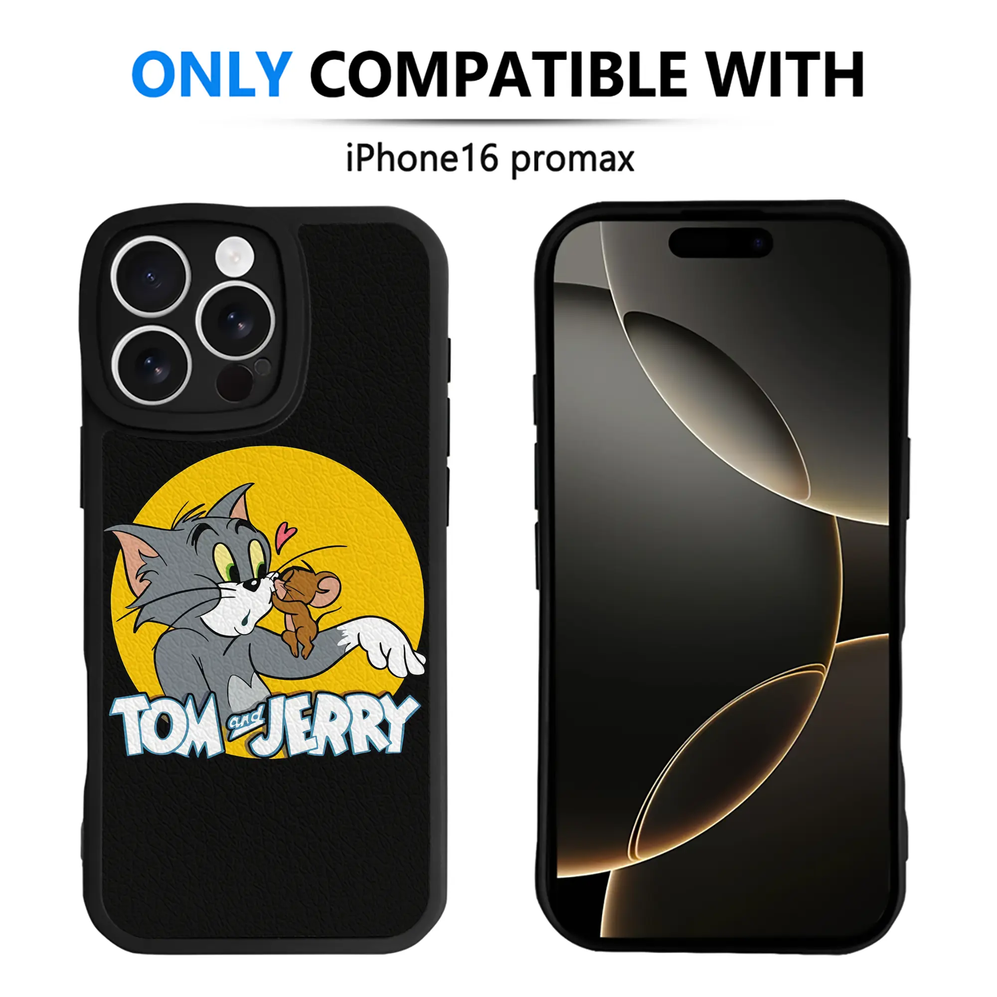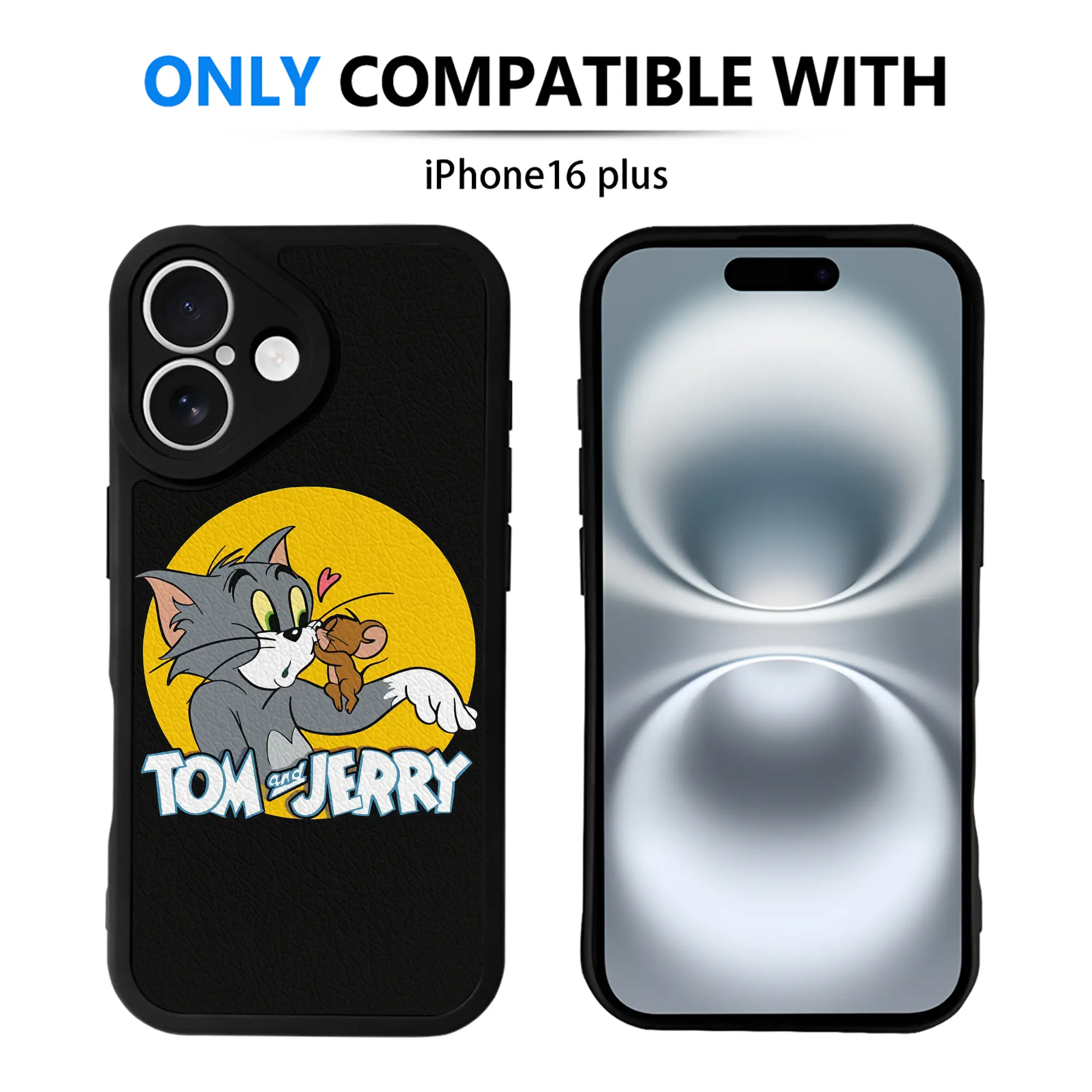 トムとジェリー グッズ トム - IPhone 16シリーズ対応 ・ シリコンスマホケース ・ レザー調 ・ 高精度フィット ・ 耐衝撃 ・ ワイヤレス充電対応 ・ 精密カット