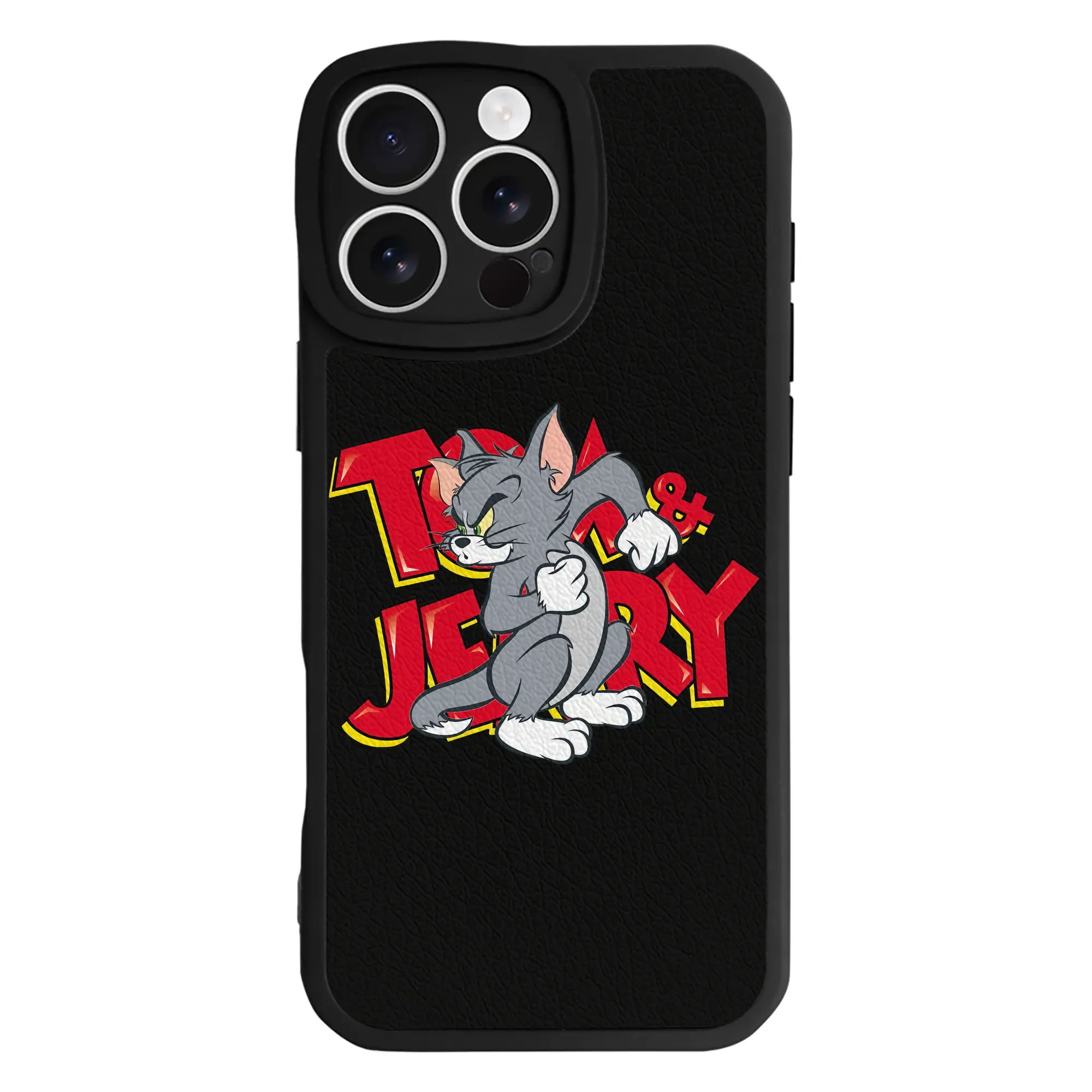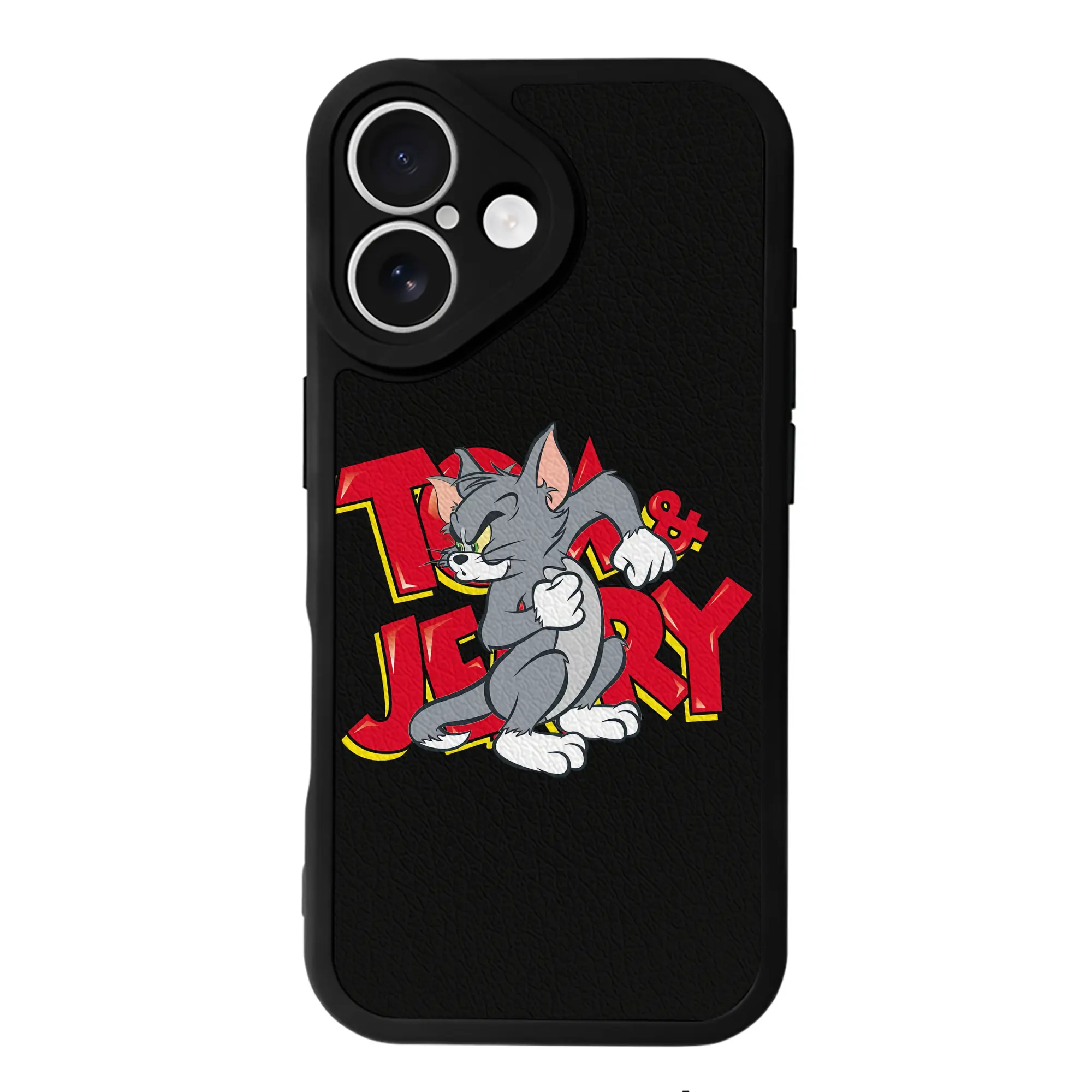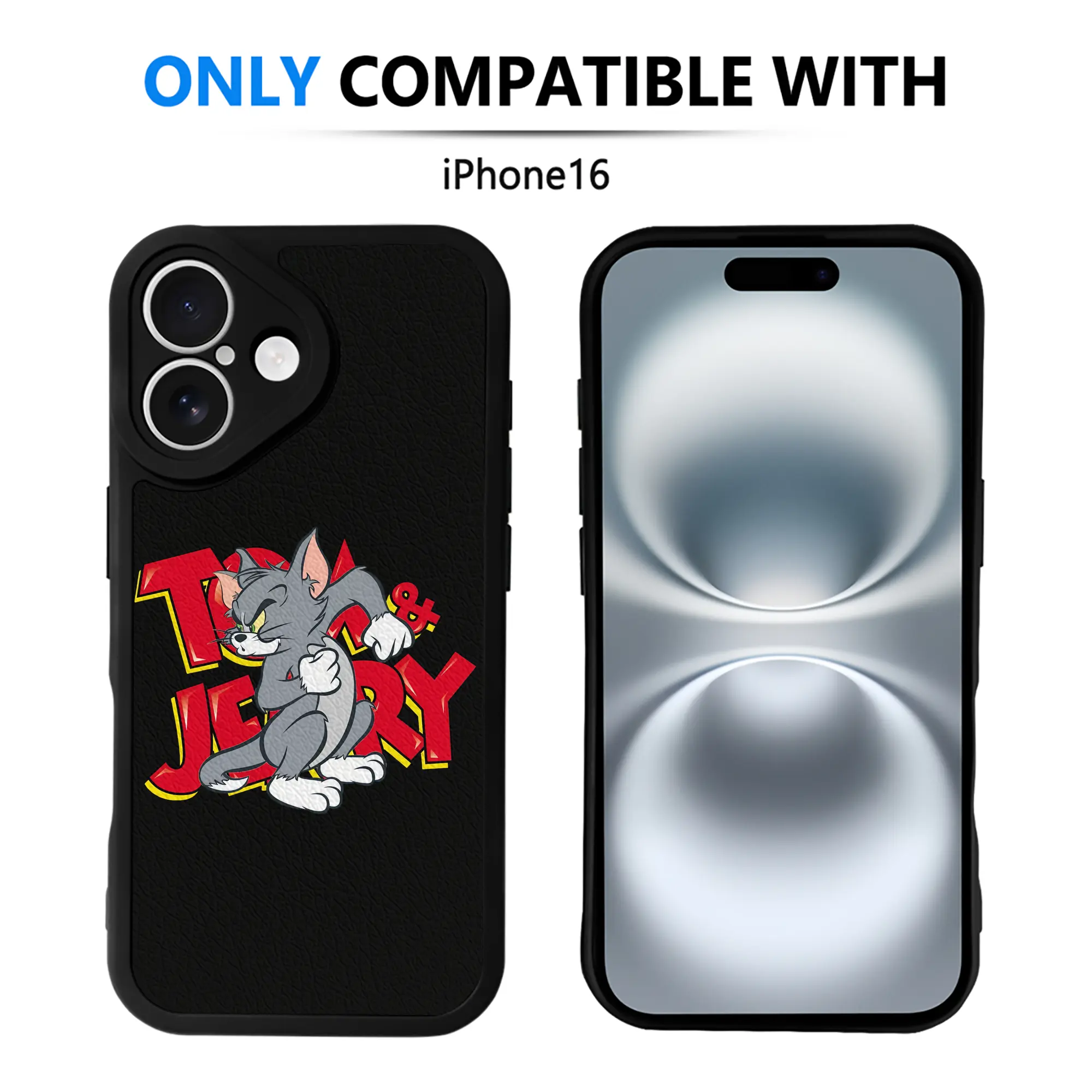 トムとジェリー グッズ トム - IPhone 16シリーズ対応 ・ シリコンスマホケース ・ レザー調 ・ 高精度フィット ・ 耐衝撃 ・ ワイヤレス充電対応 ・ 精密カット