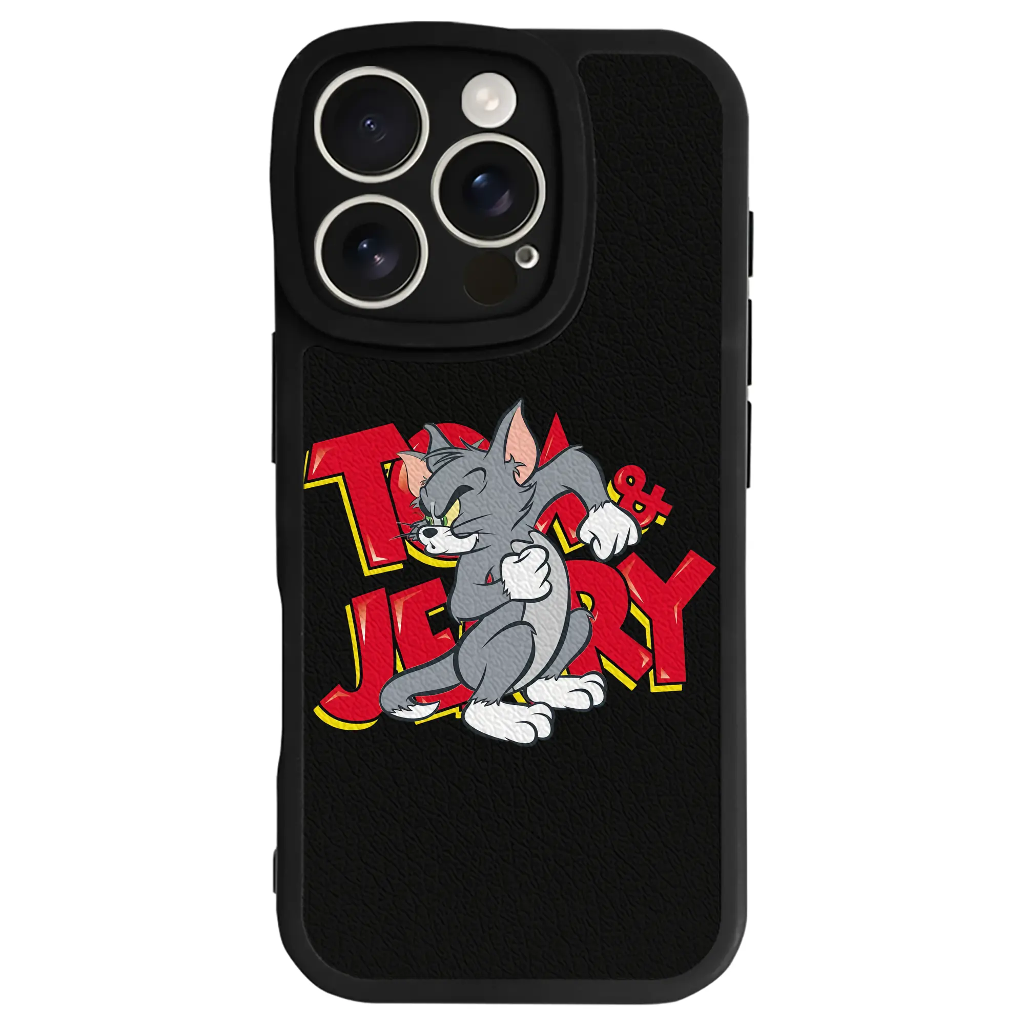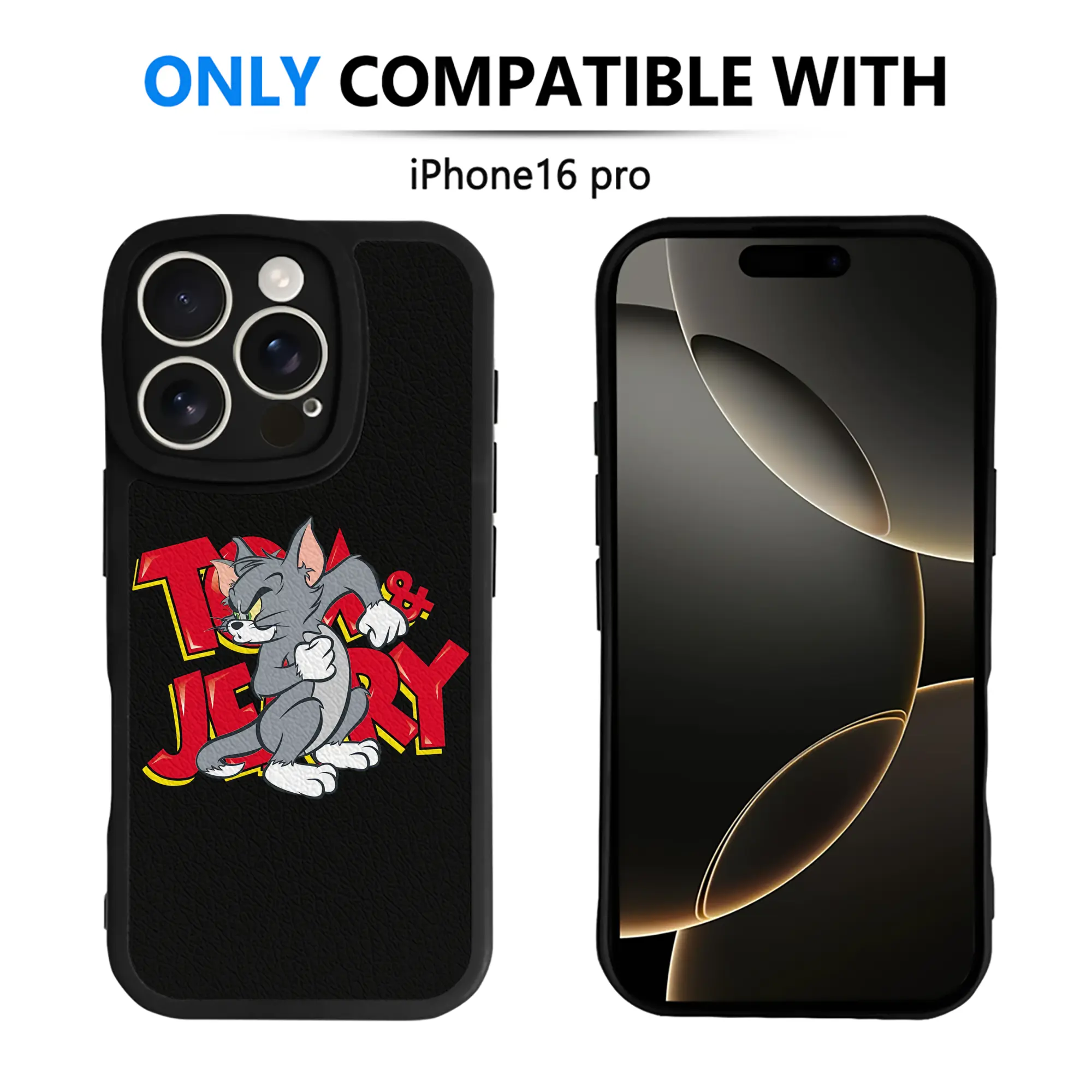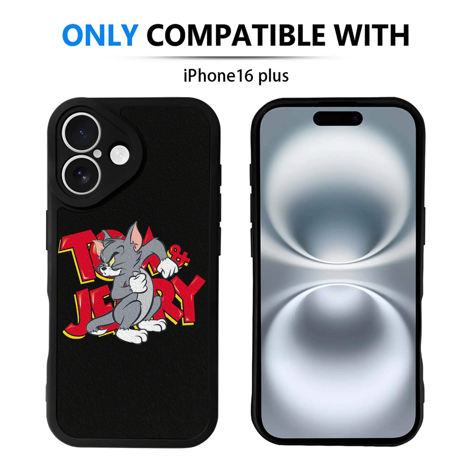 トムとジェリー グッズ トム - IPhone 16シリーズ対応 ・ シリコンスマホケース ・ レザー調 ・ 高精度フィット ・ 耐衝撃 ・ ワイヤレス充電対応 ・ 精密カット