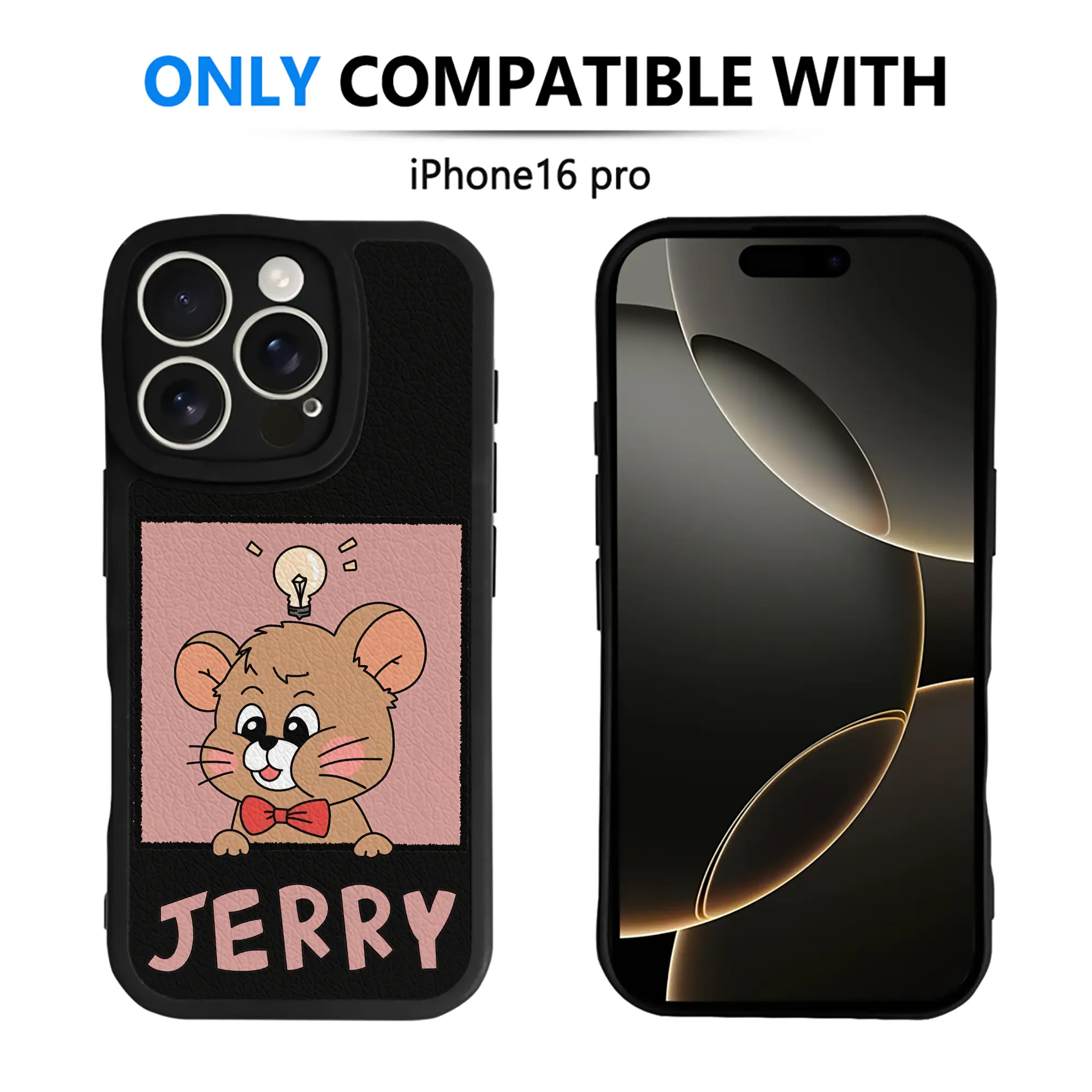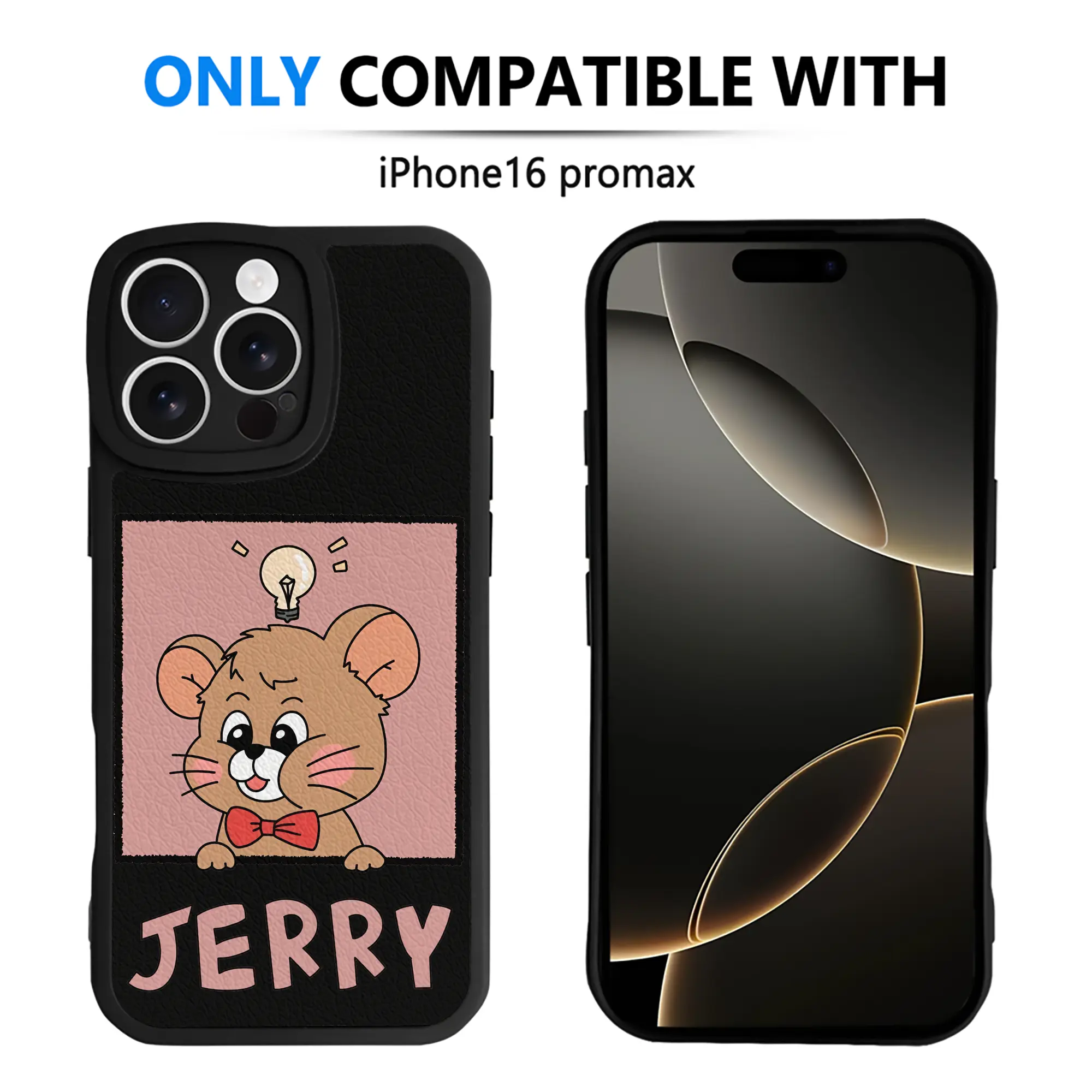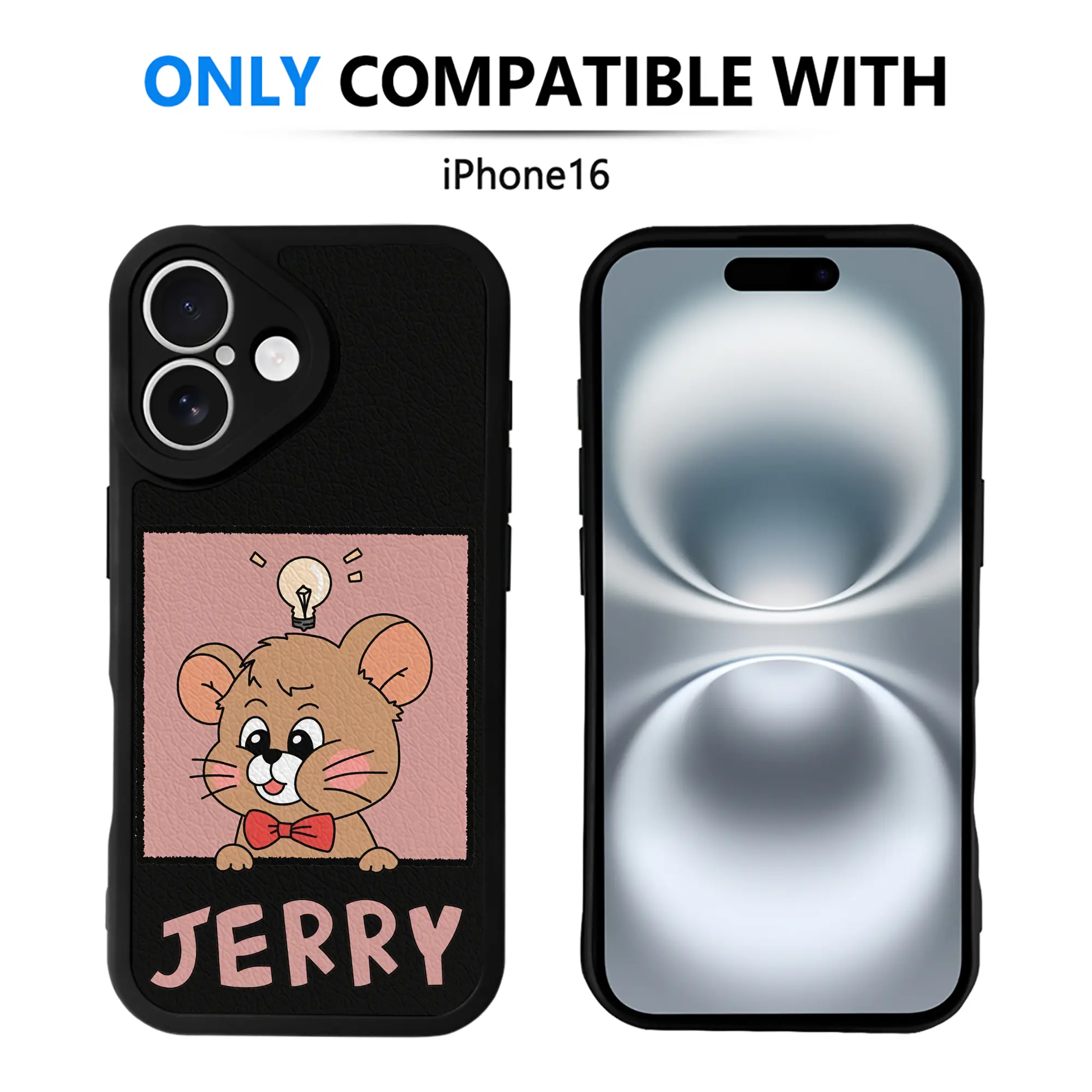 トムとジェリー グッズ ジェリー - IPhone 16シリーズ対応 ・ シリコンスマホケース ・ レザー調 ・ 高精度フィット ・ 耐衝撃 ・ ワイヤレス充電対応 ・ 精密カット