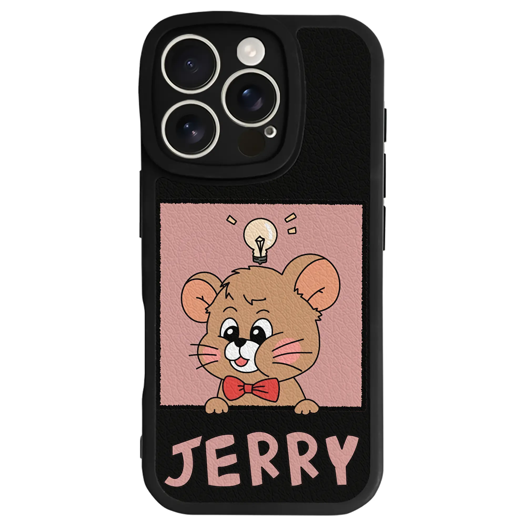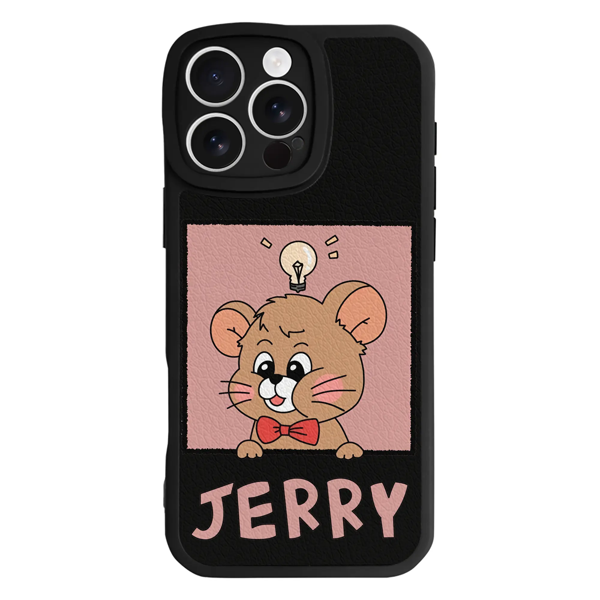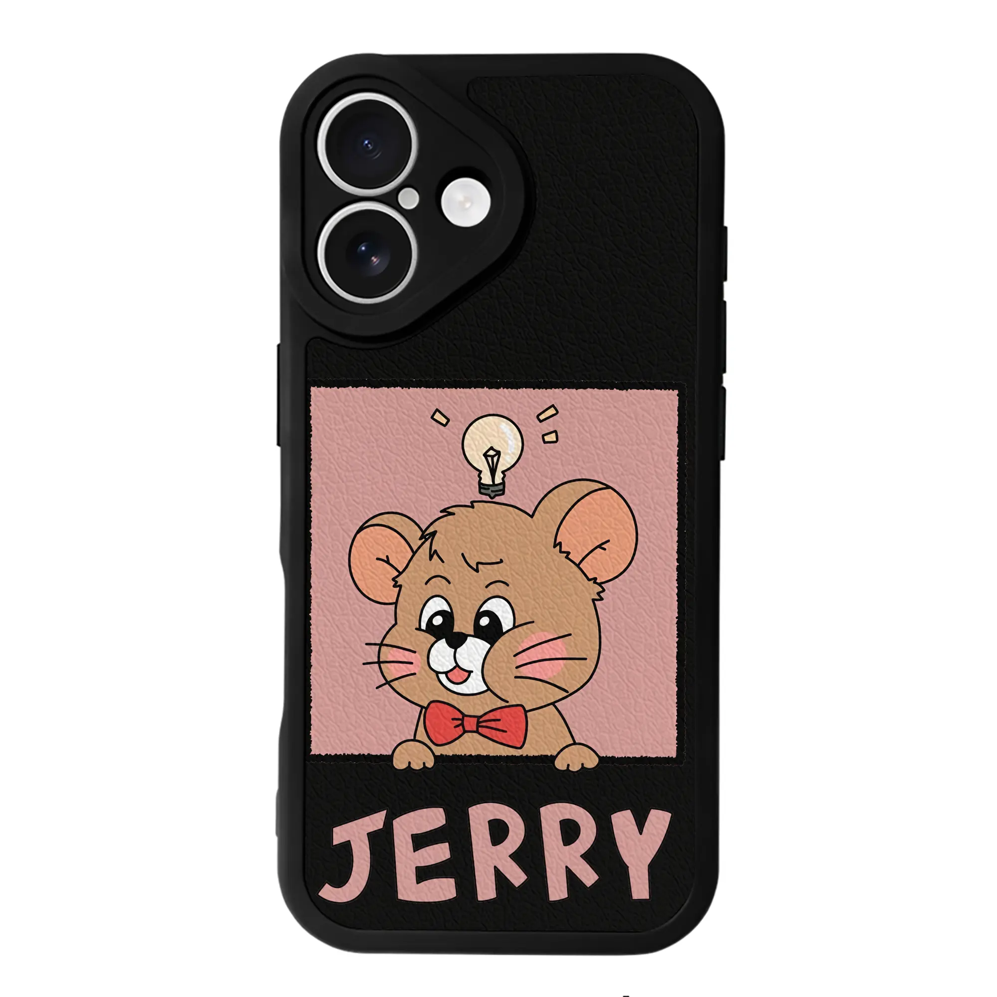 トムとジェリー グッズ ジェリー - IPhone 16シリーズ対応 ・ シリコンスマホケース ・ レザー調 ・ 高精度フィット ・ 耐衝撃 ・ ワイヤレス充電対応 ・ 精密カット