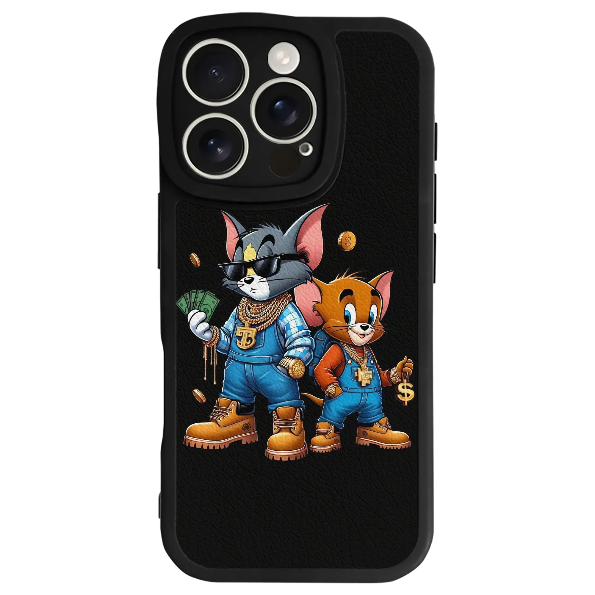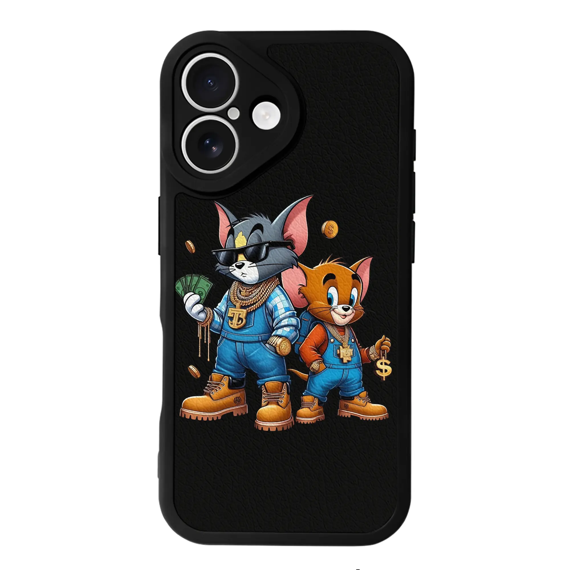 トムとジェリー グッズ ジェリー - IPhone 16シリーズ対応 ・ シリコンスマホケース ・ レザー調 ・ 高精度フィット ・ 耐衝撃 ・ ワイヤレス充電対応 ・ 精密カット