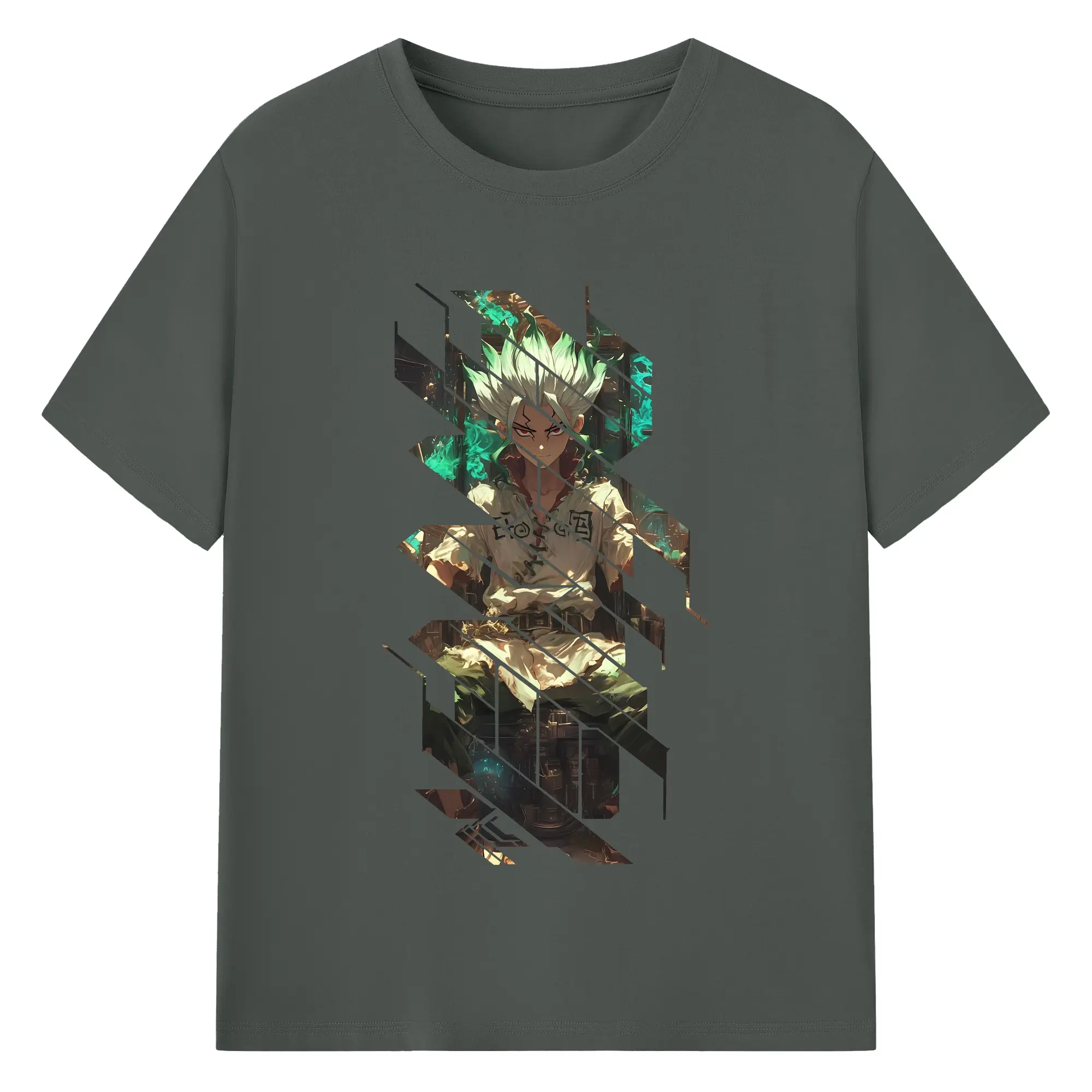 ドクターストーン グッズ,石神千空 - 綿100% ヴィンテージ風 半袖Tシャツ ・ フロントプリント ・ 柔らか肌触り ・ 通気性 快適 ・ スポーツ カジュアル 外出用