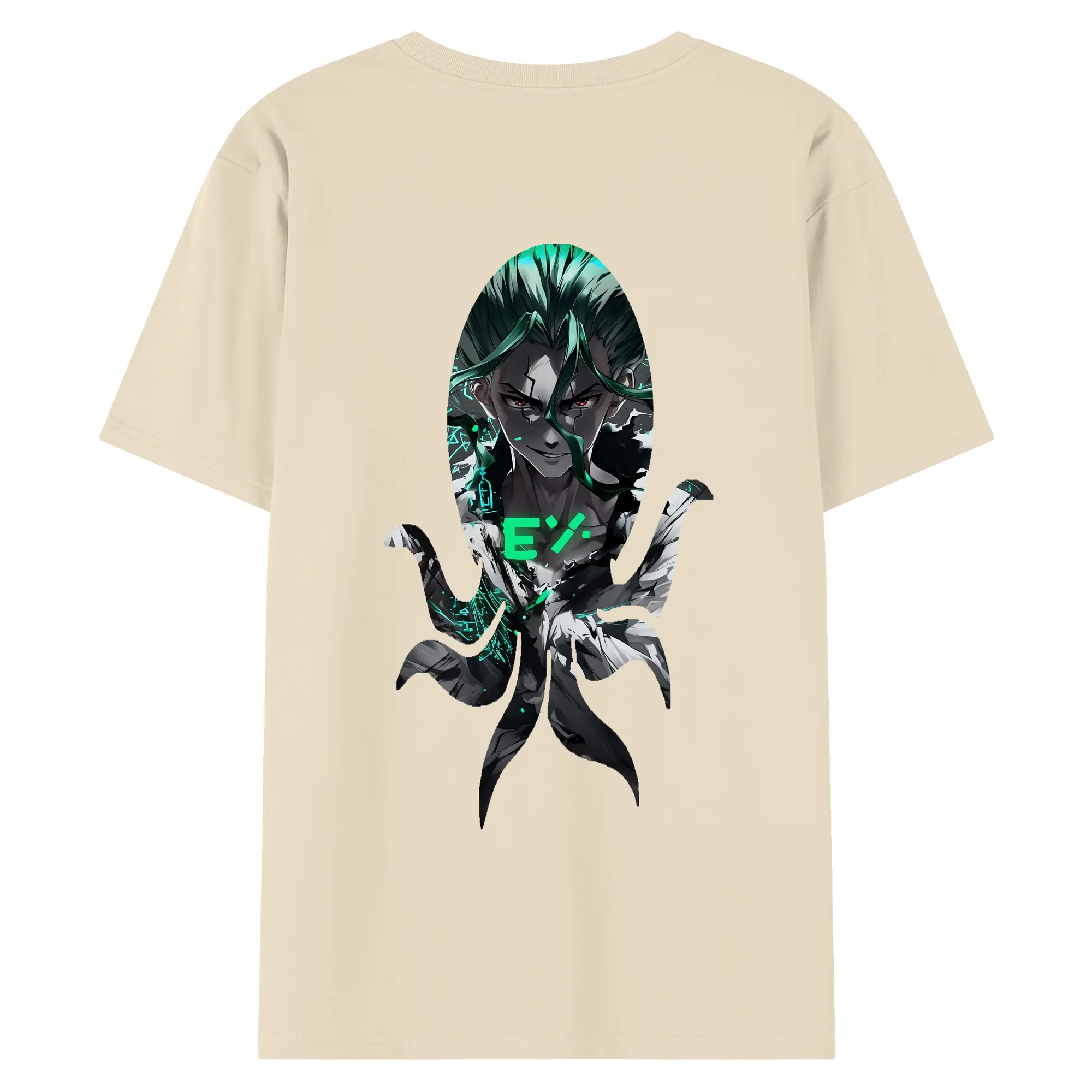 ドクターストーン グッズ,石神千空 - 綿100% ヴィンテージ風 半袖Tシャツ ・ 背面プリント ・ 柔らか肌触り ・ 通気性 快適 ・ スポーツ カジュアル 外出用