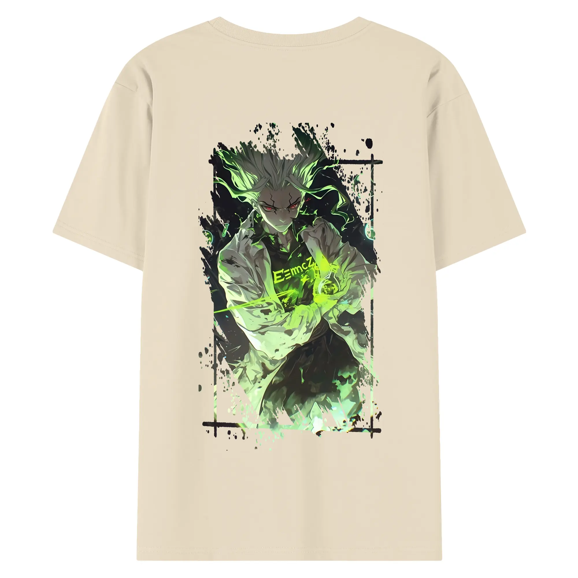 ドクターストーン グッズ,石神千空 - 綿100% ヴィンテージ風 半袖Tシャツ ・ 背面プリント ・ 柔らか肌触り ・ 通気性 快適 ・ スポーツ カジュアル 外出用