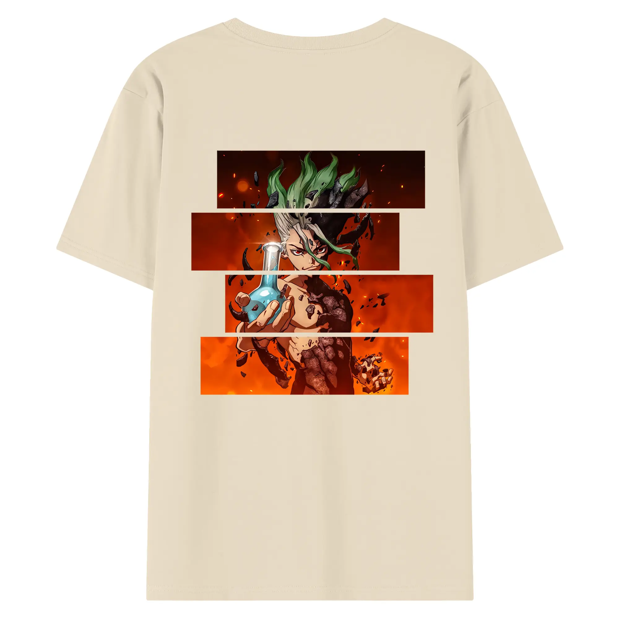 ドクターストーン グッズ,石神千空 - 綿100% ヴィンテージ風 半袖Tシャツ ・ フロントプリント ・ 柔らか肌触り ・ 通気性 快適 ・ スポーツ カジュアル 外出用