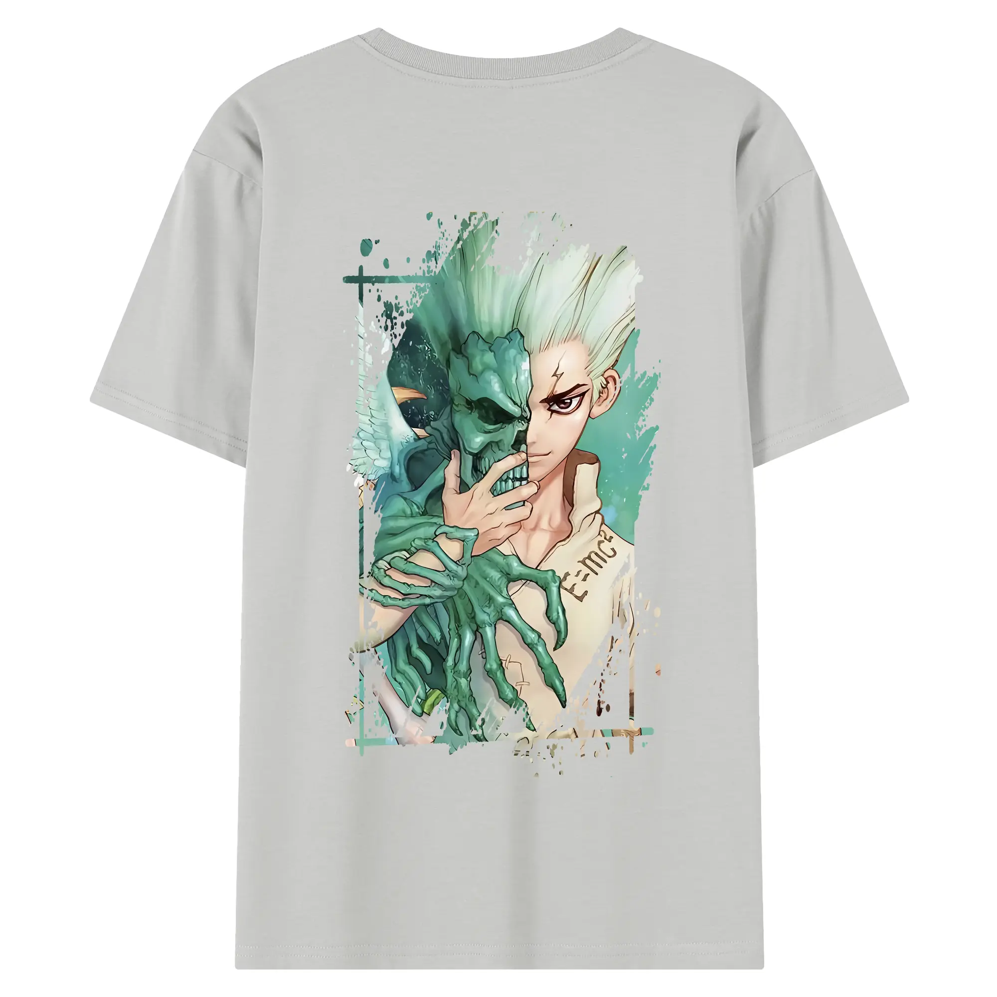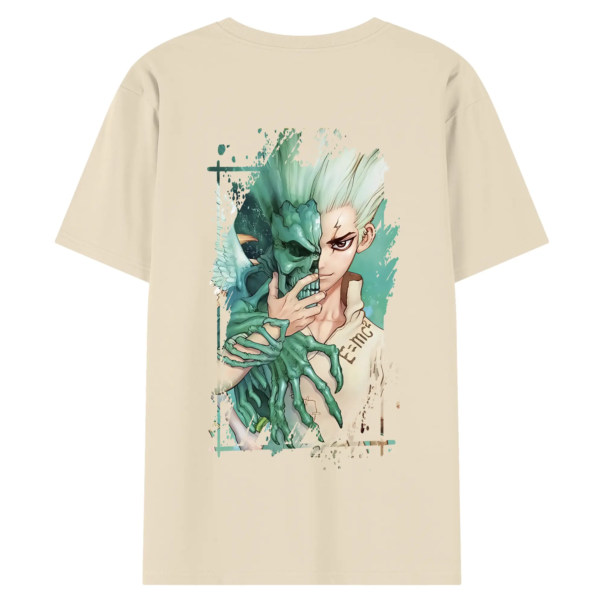 ドクターストーン グッズ,石神千空 - 綿100% ヴィンテージ風 半袖Tシャツ ・ 背面プリント ・ 柔らか肌触り ・ 通気性 快適 ・ スポーツ カジュアル 外出用