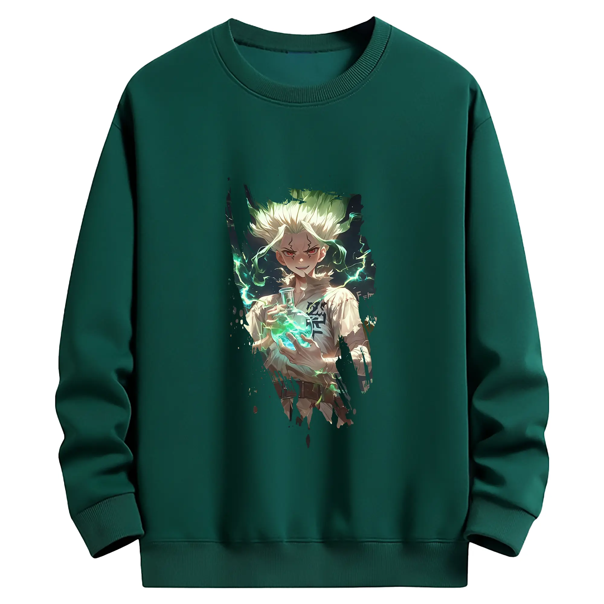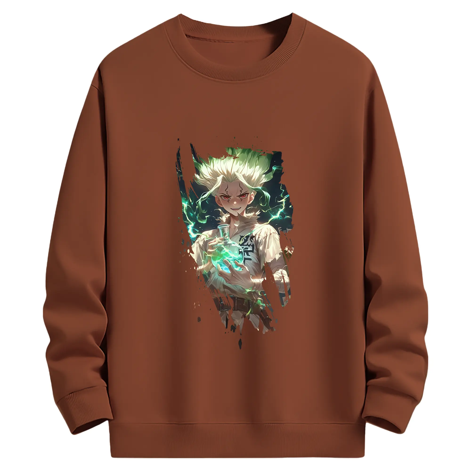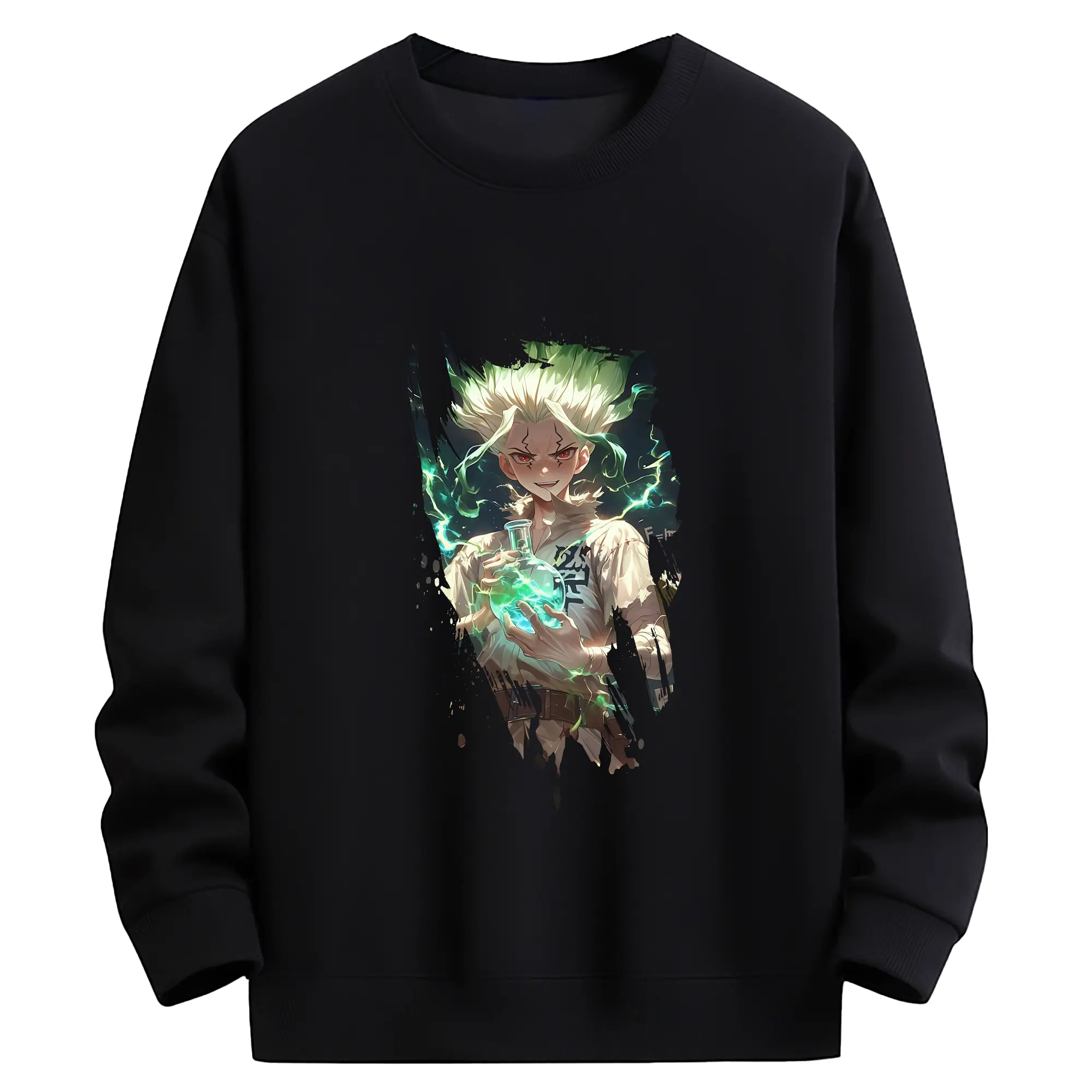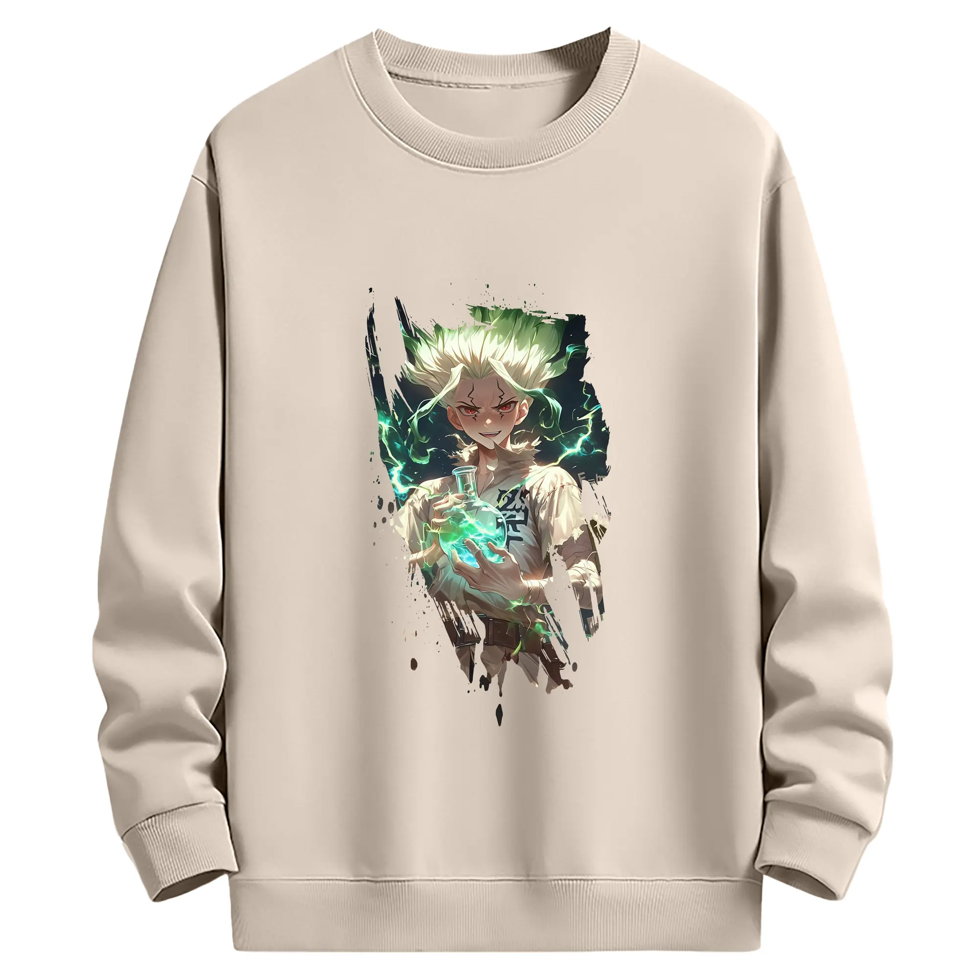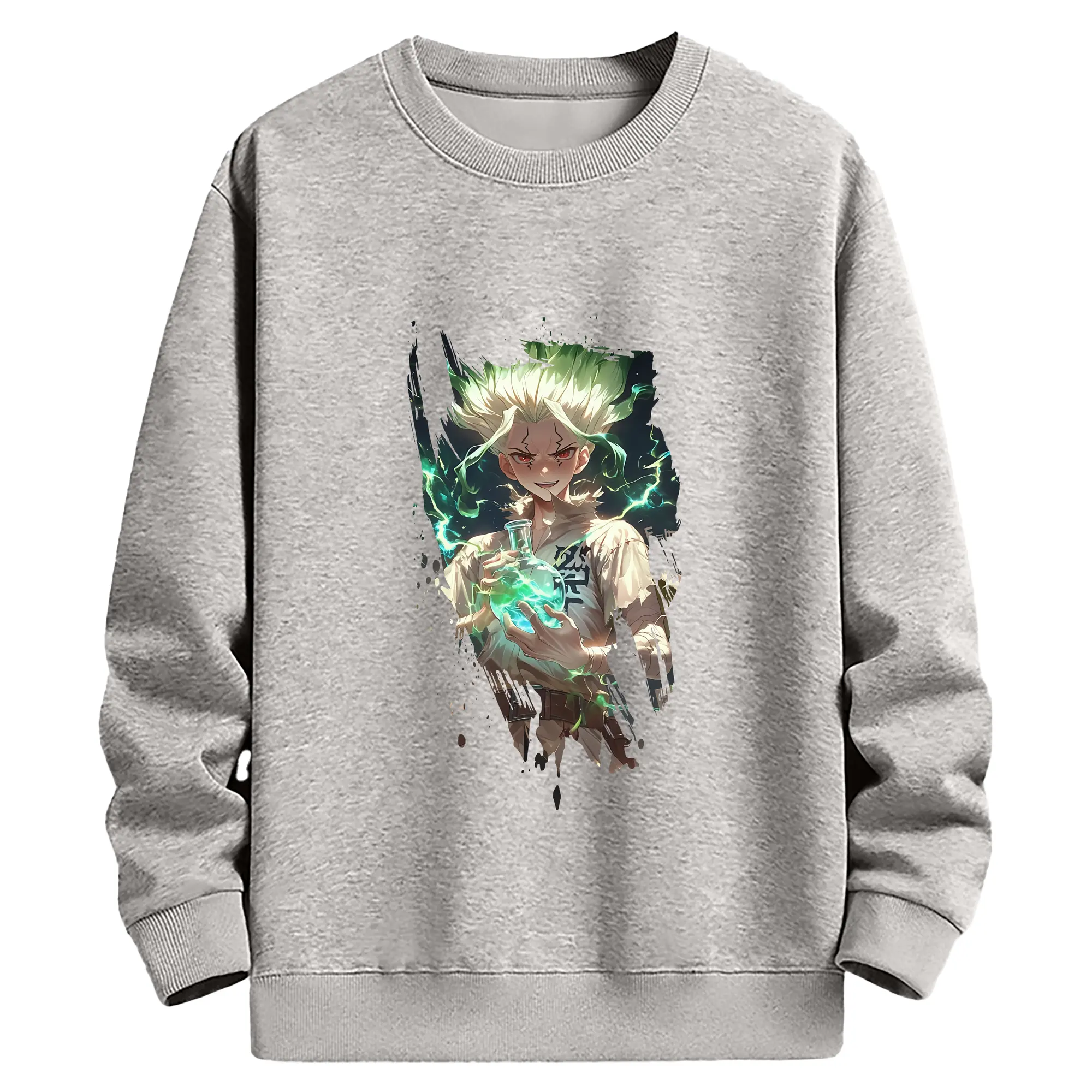 ドクターストーン グッズ,石神千空 - 薄手 クルーネック スウェット 裏毛260g · ポリエステル 春秋向け カジュアル 男女兼用 · トレーナー デイリー スポーツ 散歩に最適