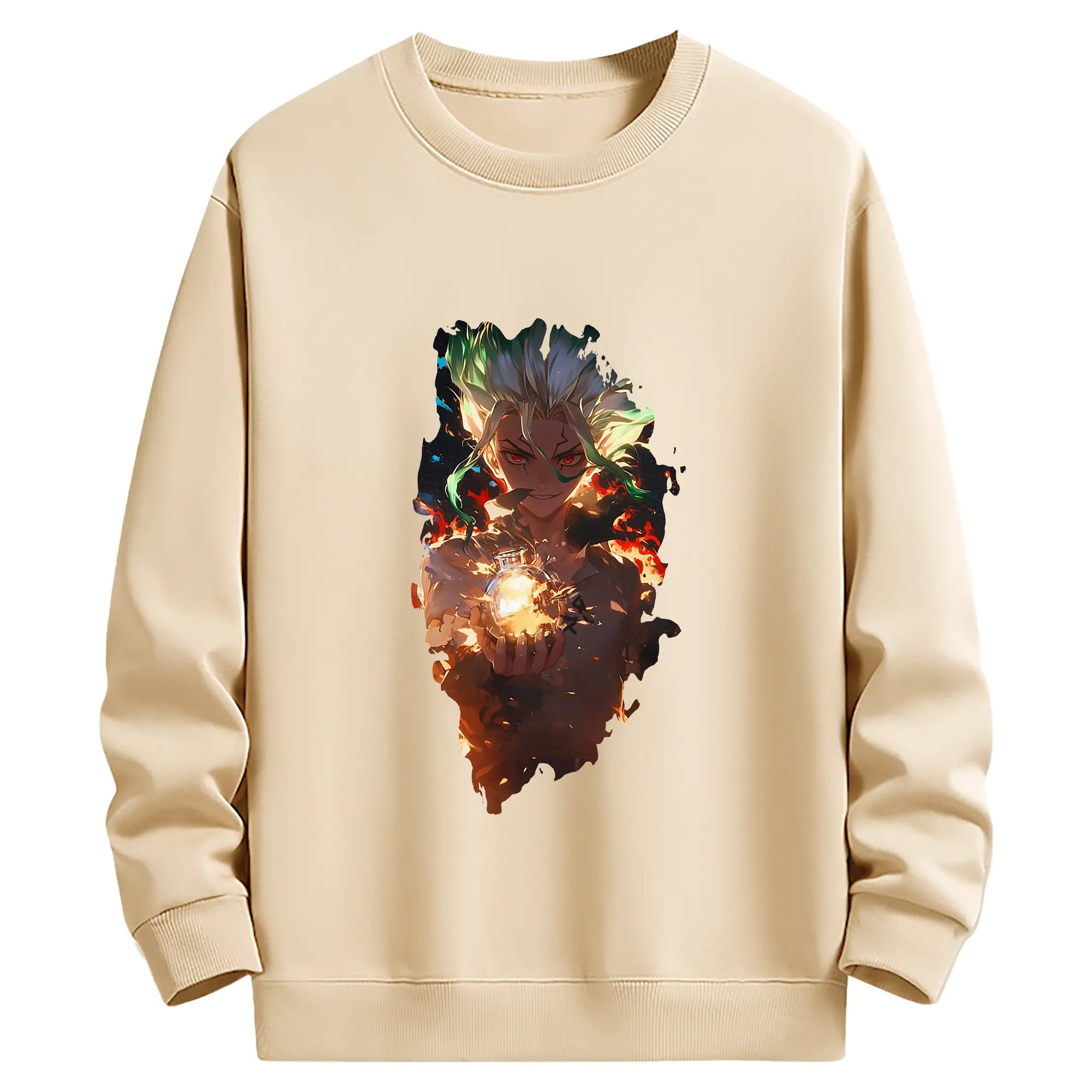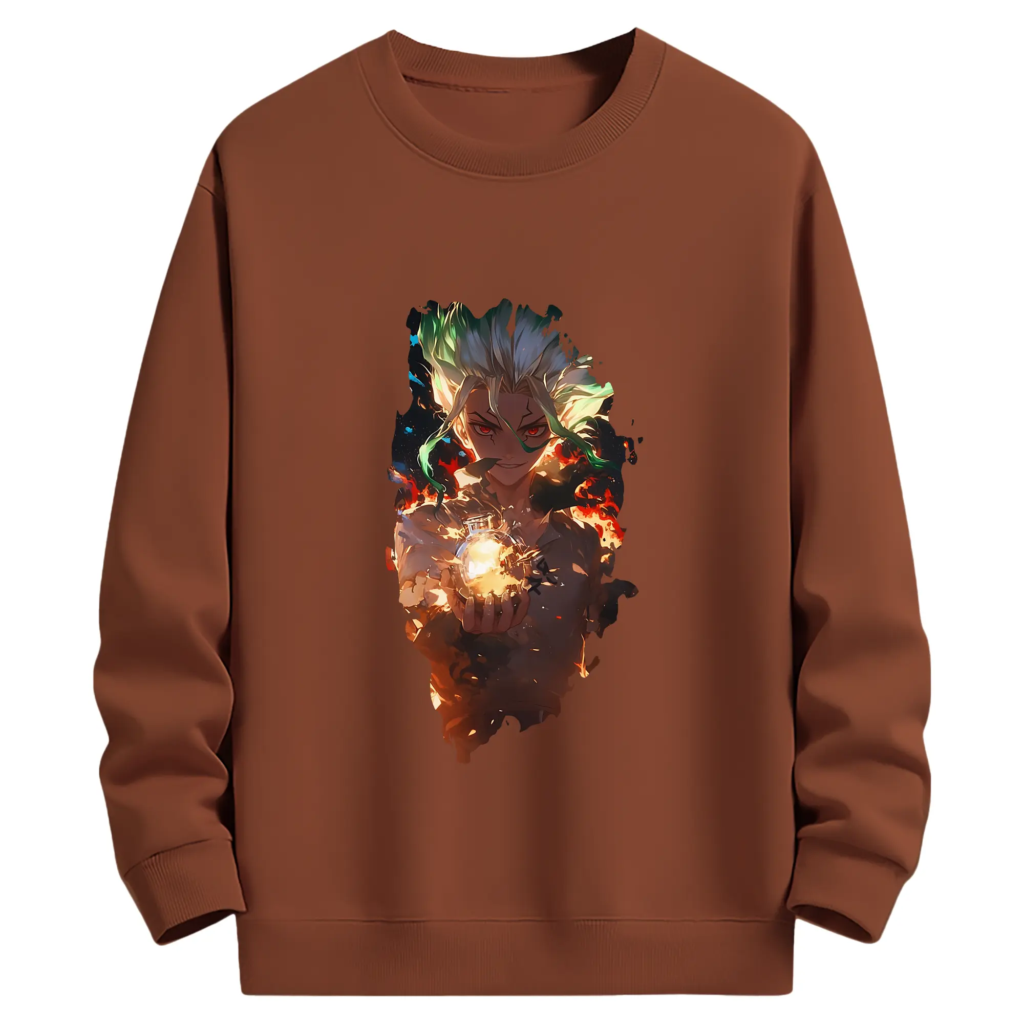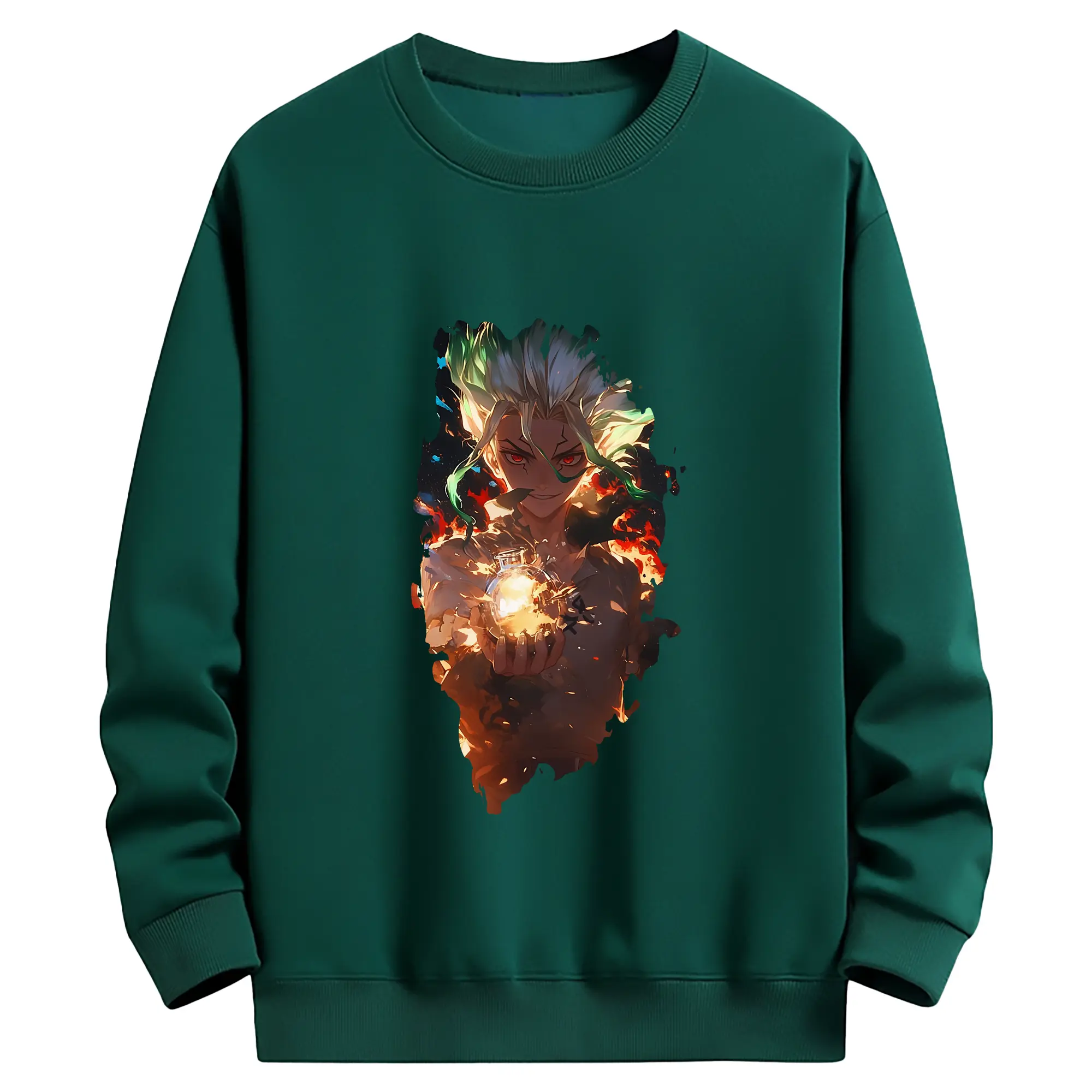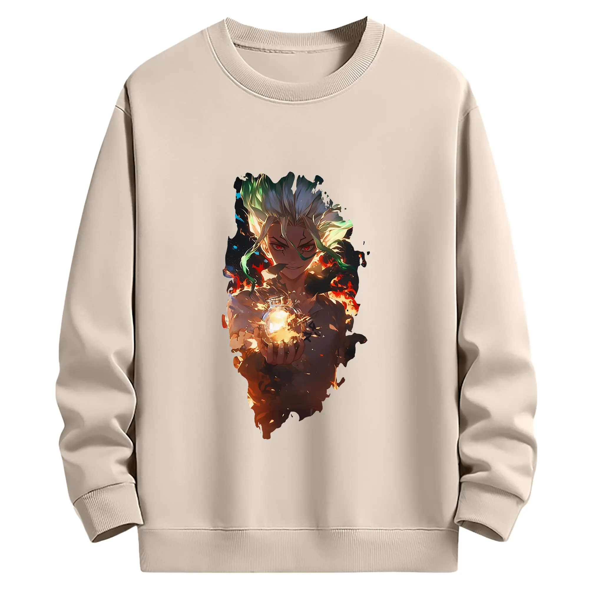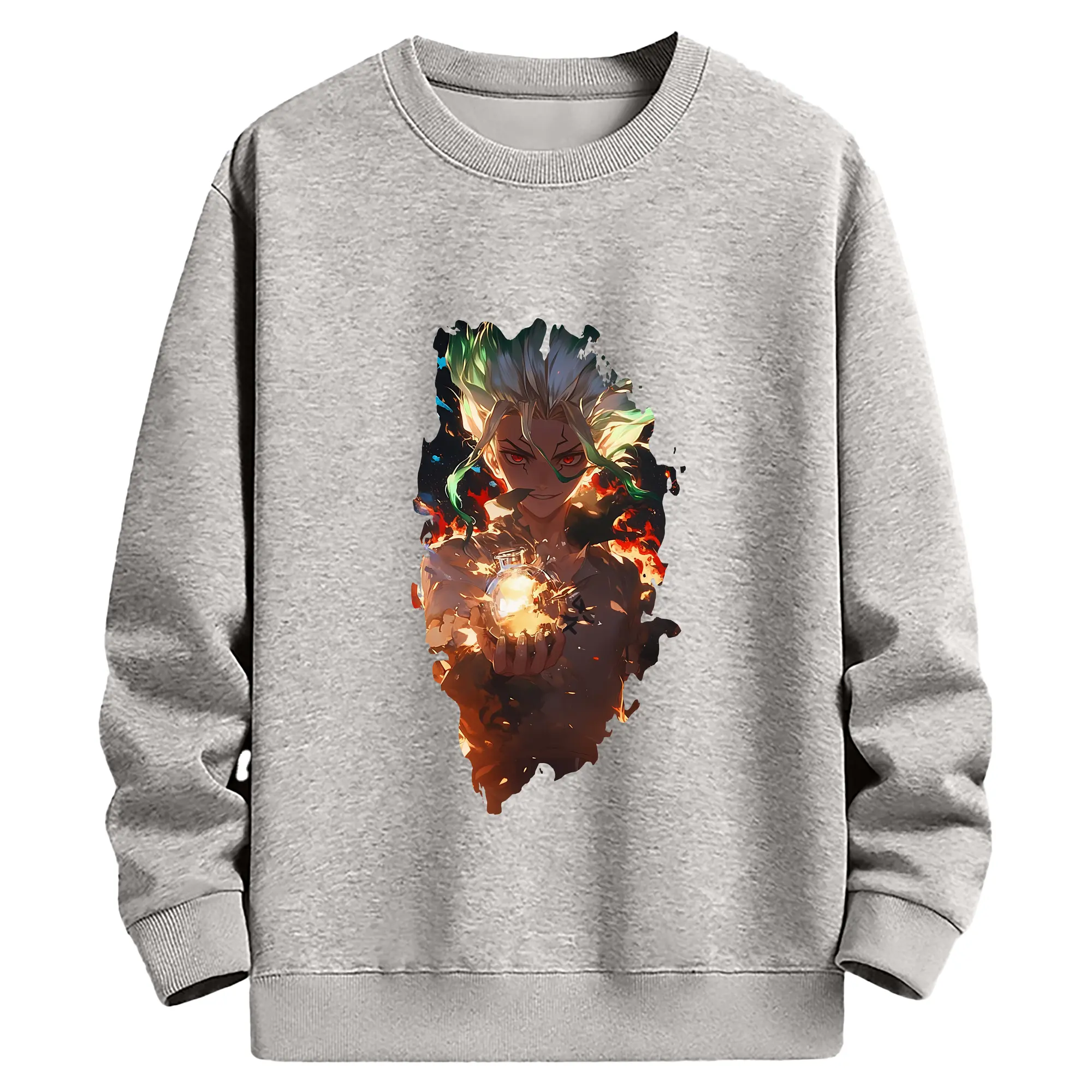 ドクターストーン グッズ,石神千空 - 薄手 クルーネック スウェット 裏毛260g · ポリエステル 春秋向け カジュアル 男女兼用 · トレーナー デイリー スポーツ 散歩に最適