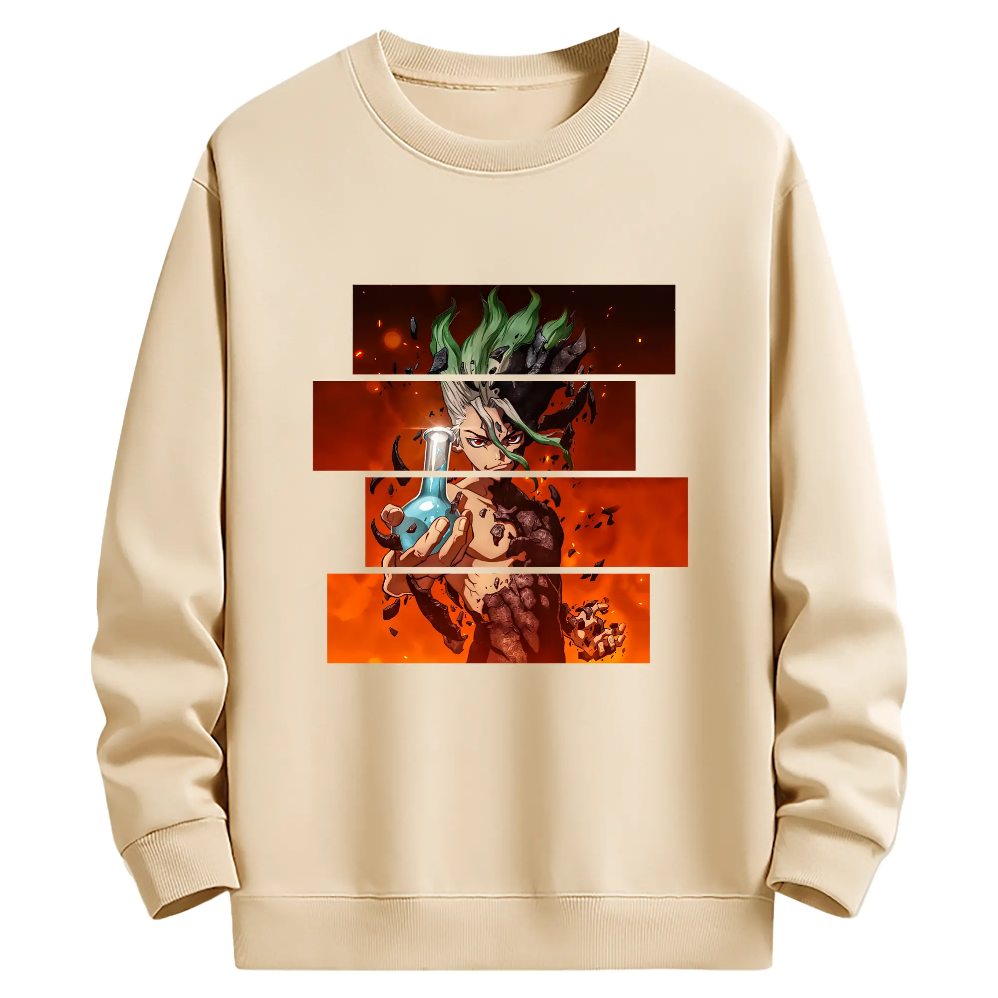 ドクターストーン グッズ,石神千空 - 薄手 クルーネック スウェット 裏毛260g · ポリエステル 春秋向け カジュアル 男女兼用 · トレーナー デイリー スポーツ 散歩に最適