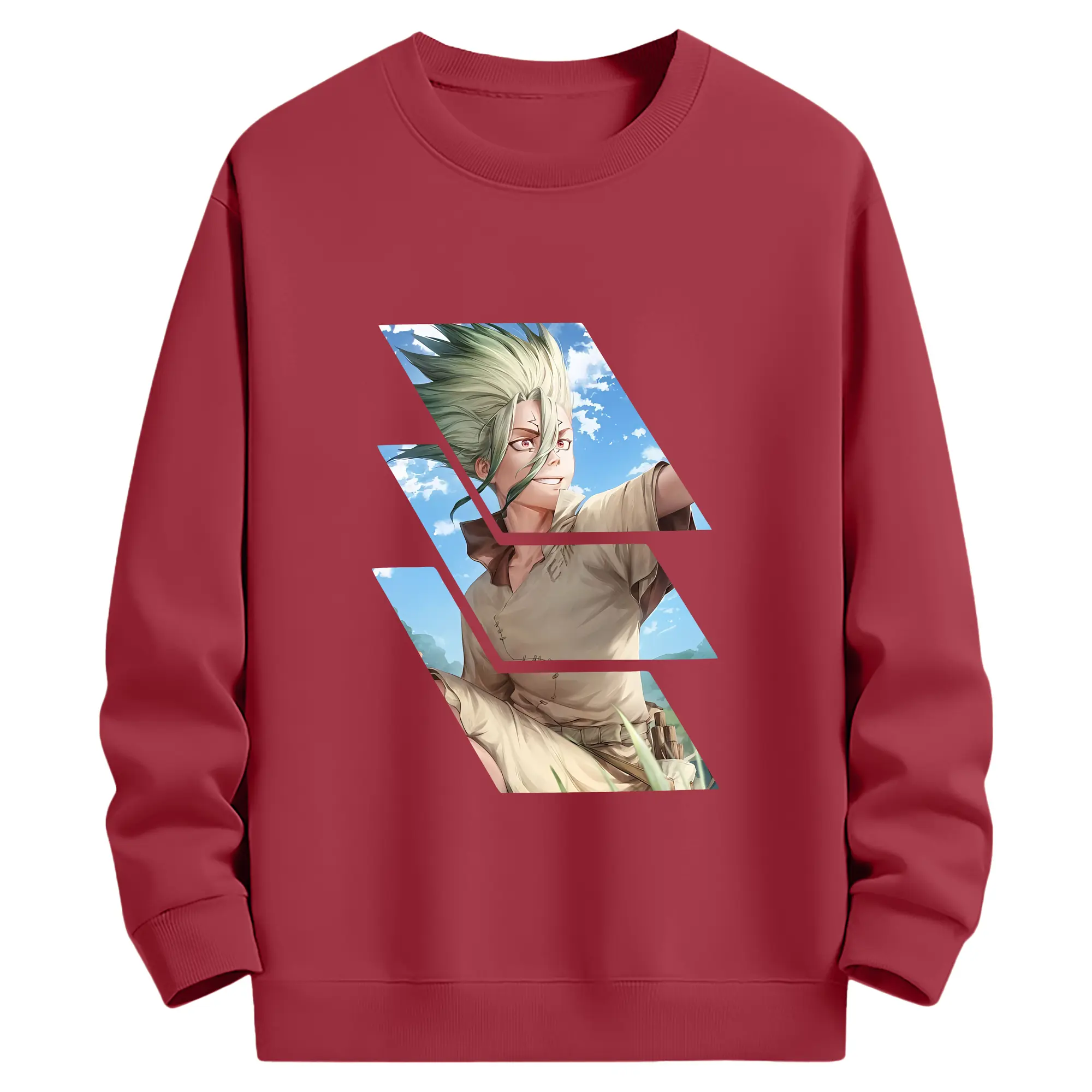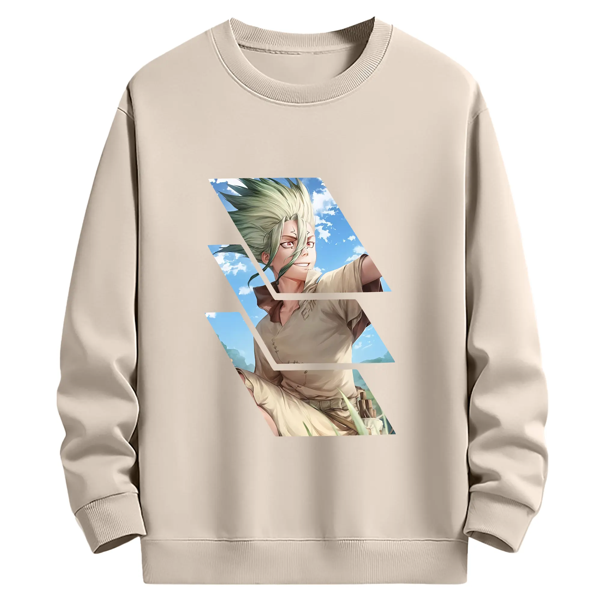 ドクターストーン グッズ,石神千空 - 薄手 クルーネック スウェット 裏毛260g · ポリエステル 春秋向け カジュアル 男女兼用 · トレーナー デイリー スポーツ 散歩に最適