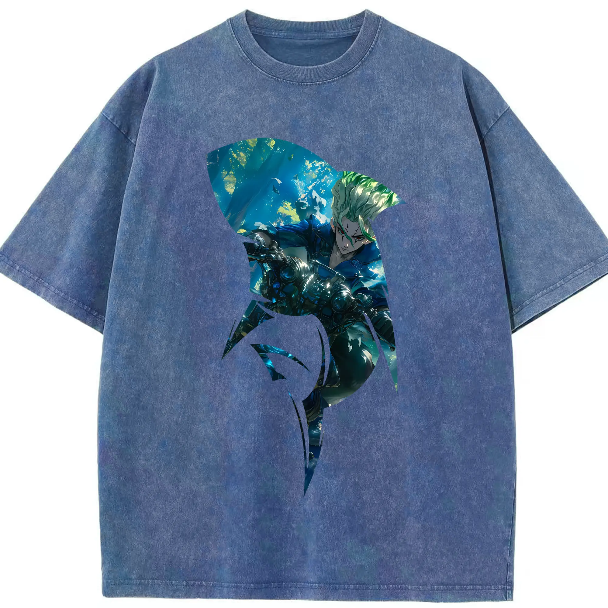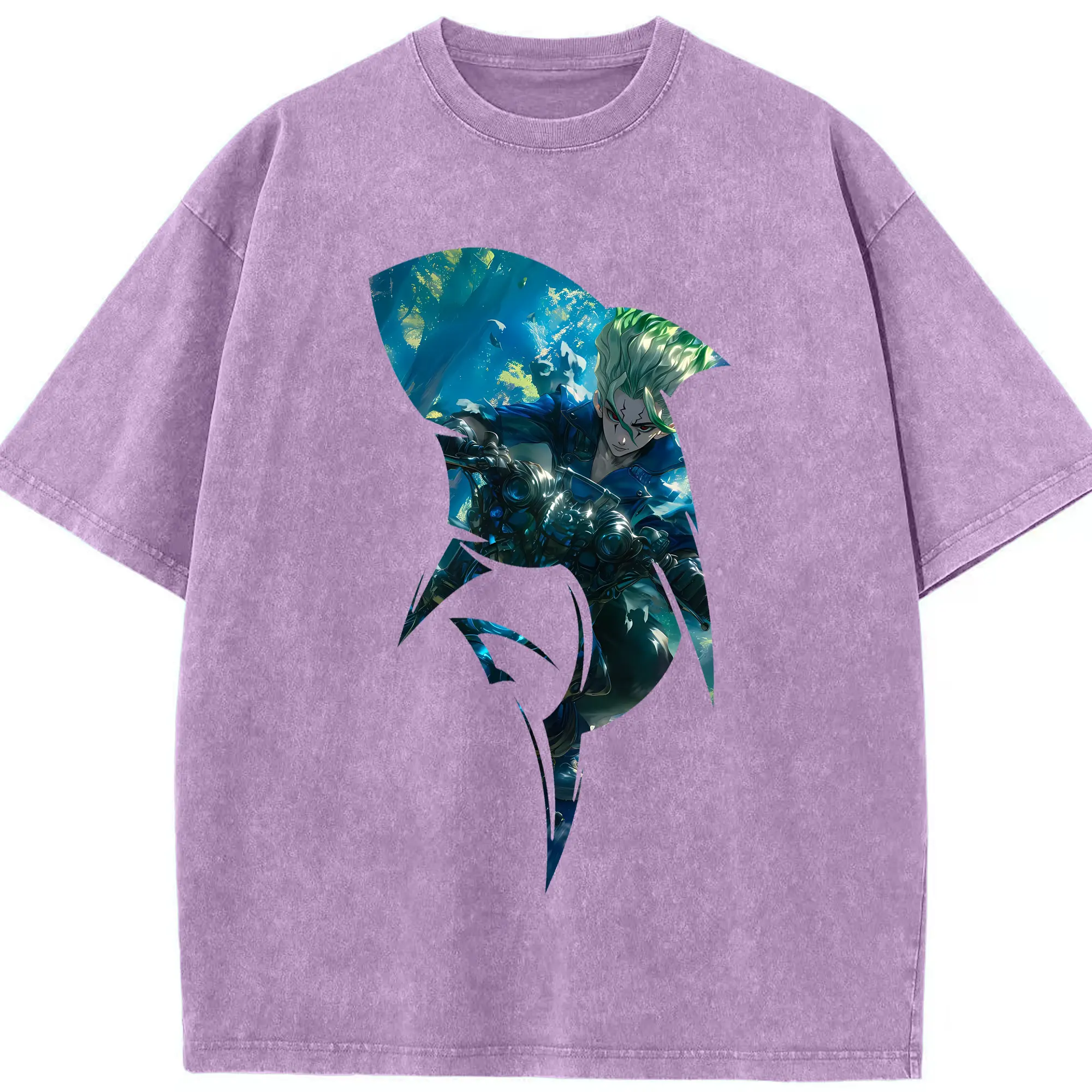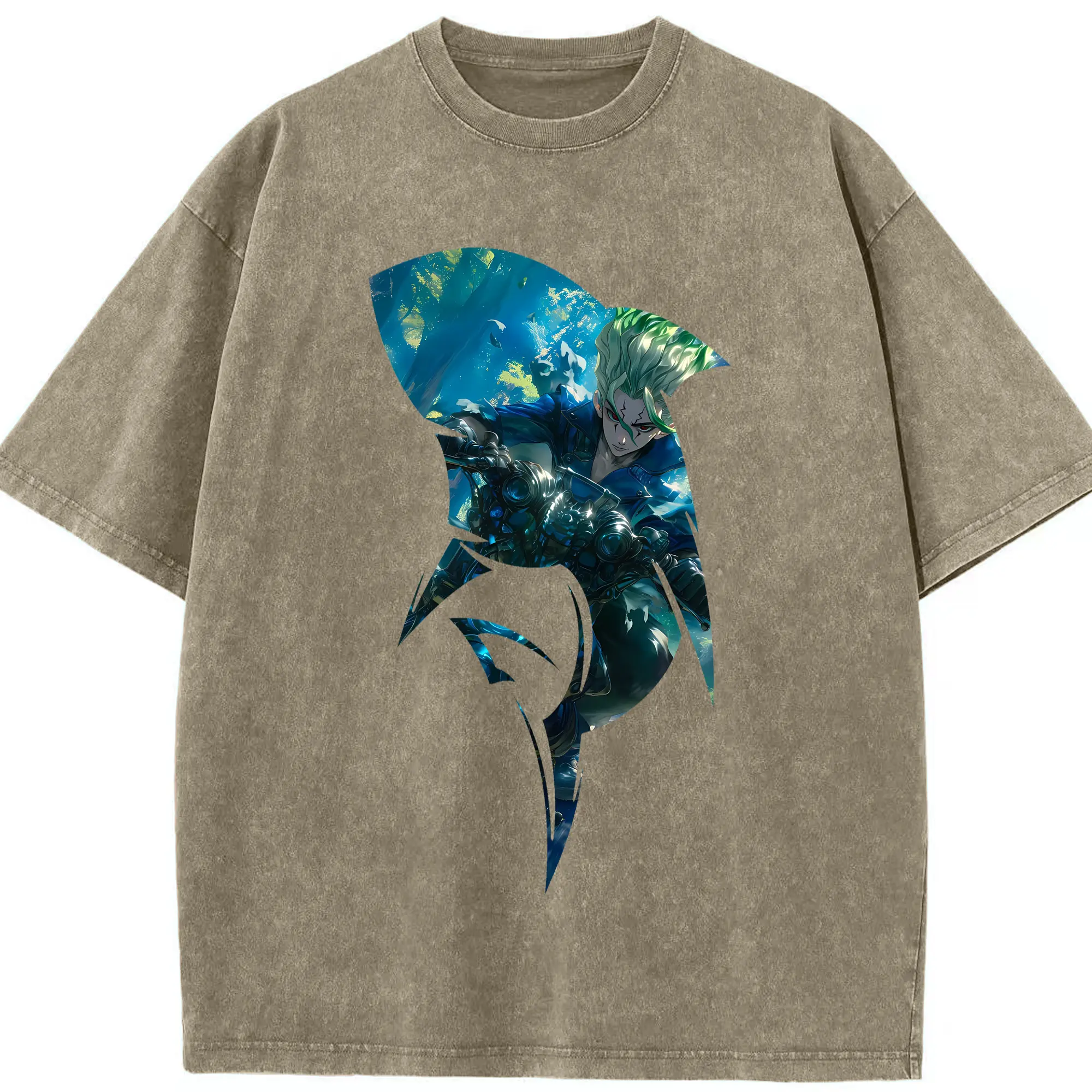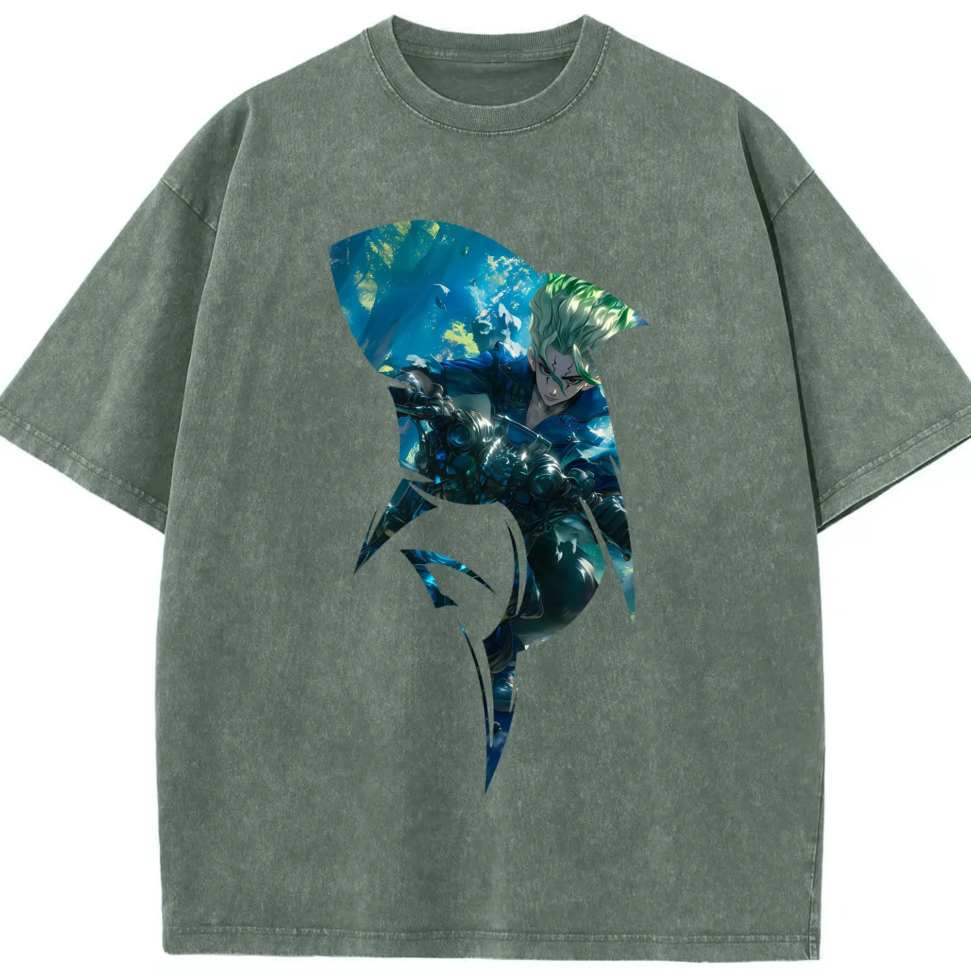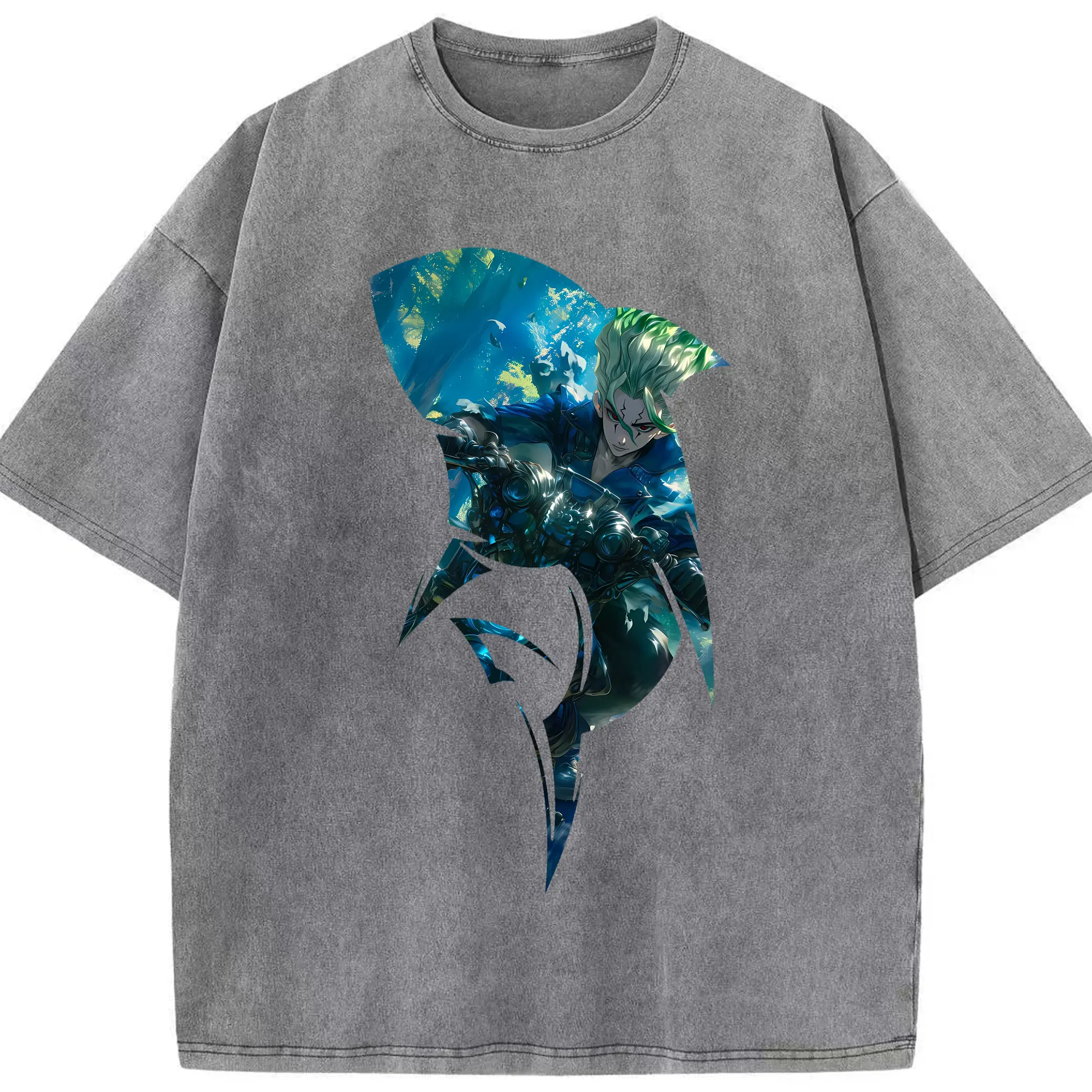 ワンパンマン グッズ 音速のソニック - 綿100% ヴィンテージ風 半袖Tシャツ ・ フロントプリント ・ 柔らか肌触り ・ 通気性 快適 ・ スポーツ カジュアル 外出用