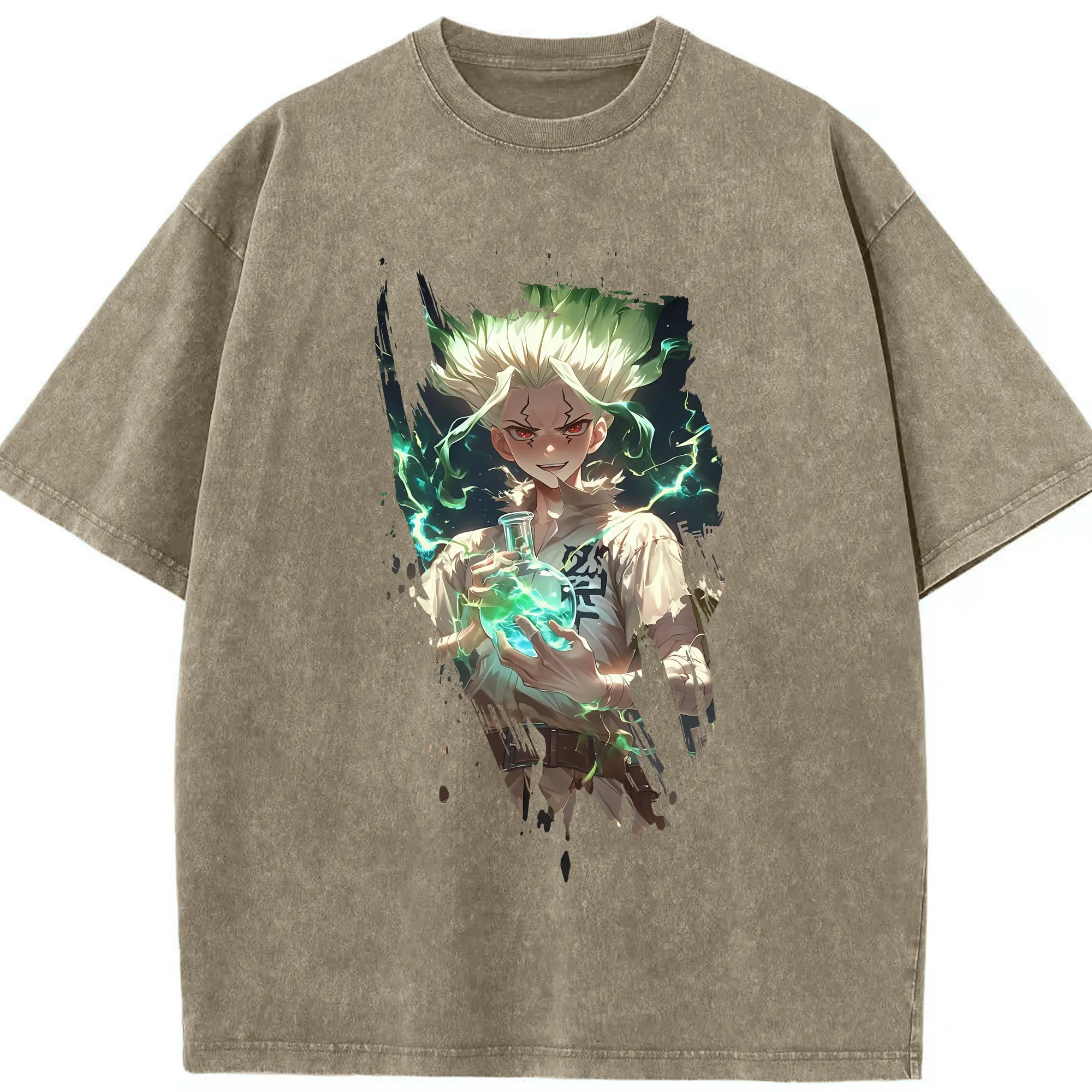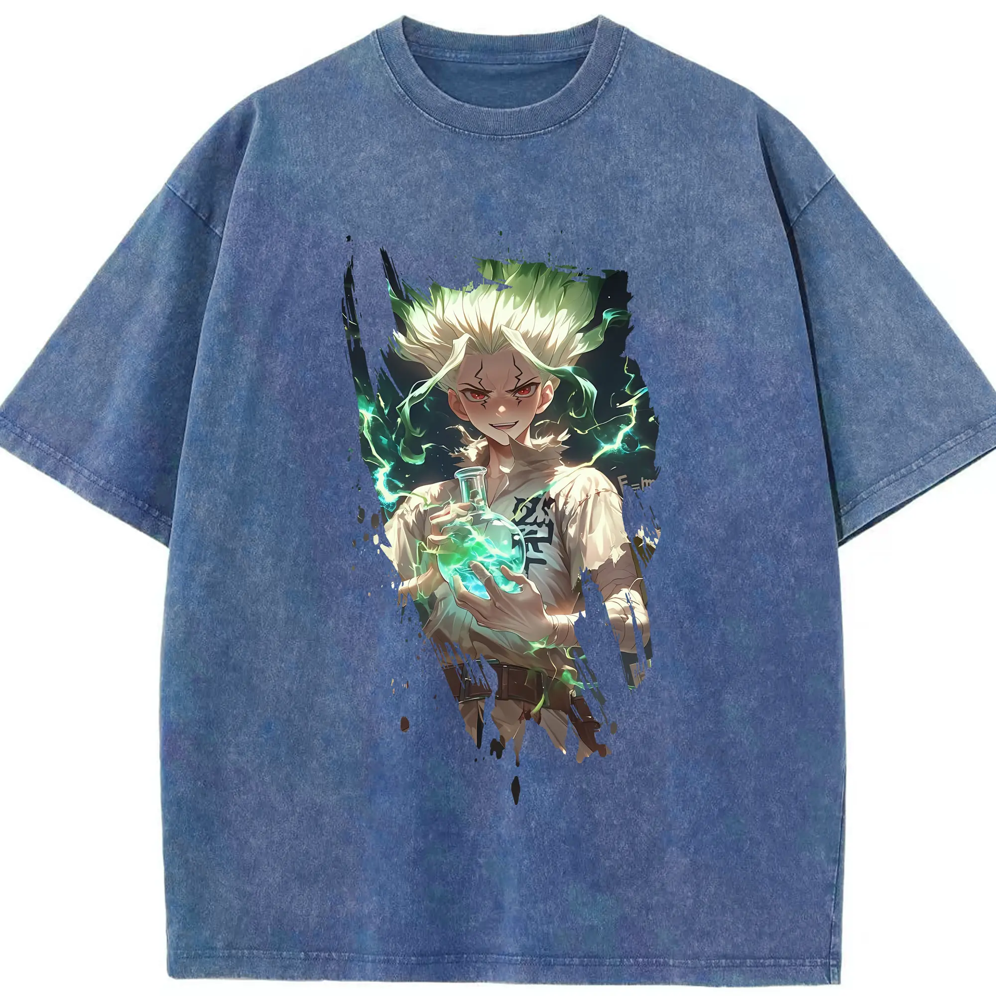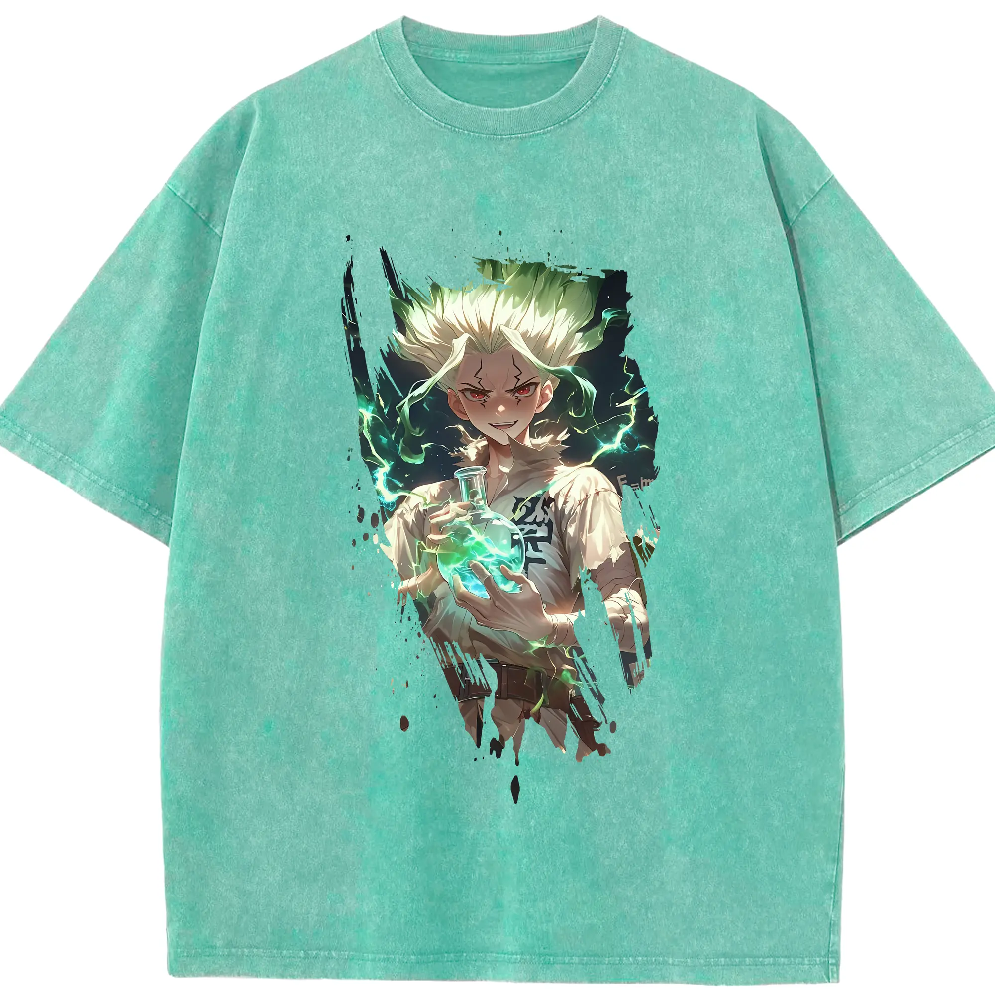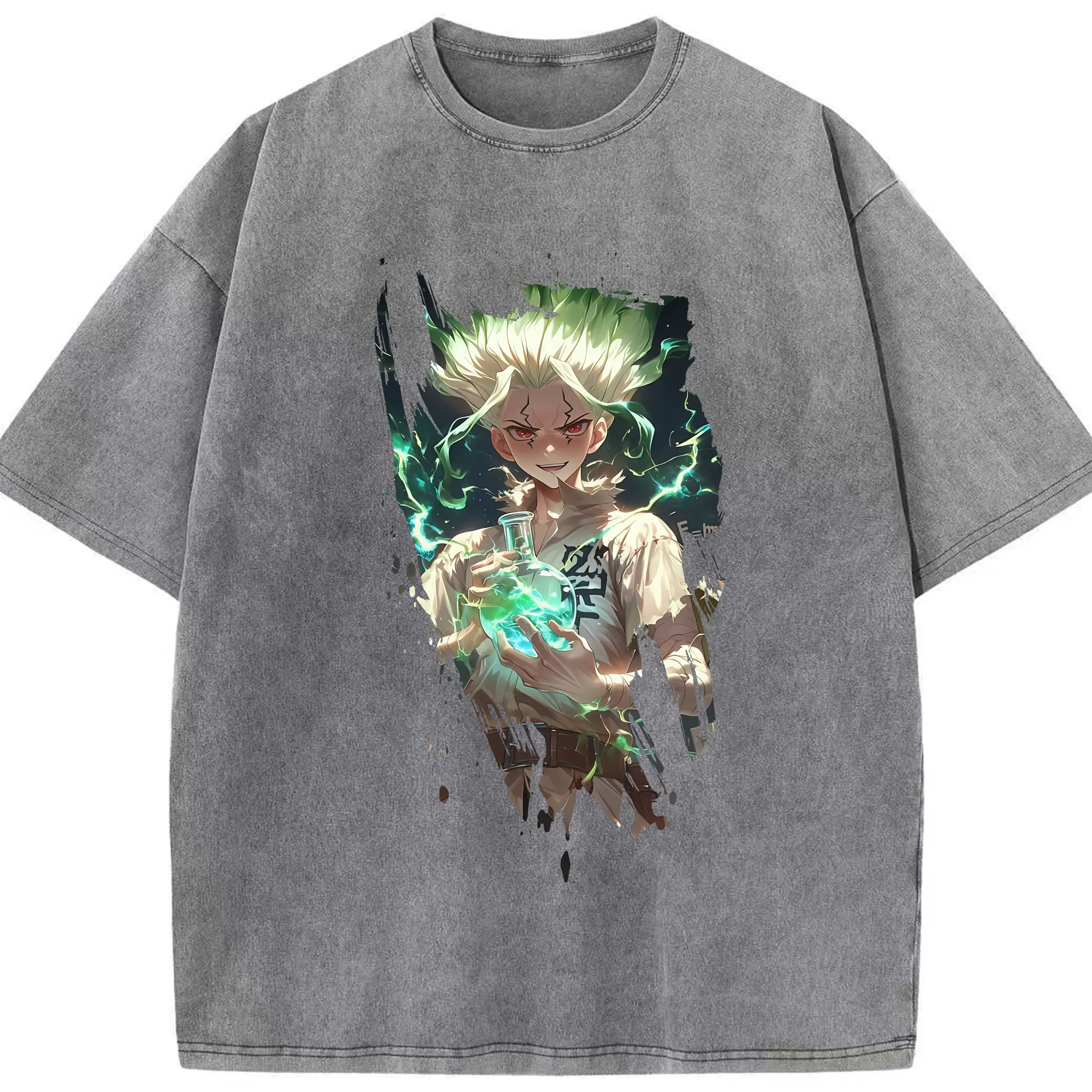 ドクターストーン グッズ,石神千空 - 綿100% ヴィンテージ風 半袖Tシャツ ・ 背面プリント ・ 柔らか肌触り ・ 通気性 快適 ・ スポーツ カジュアル 外出用
