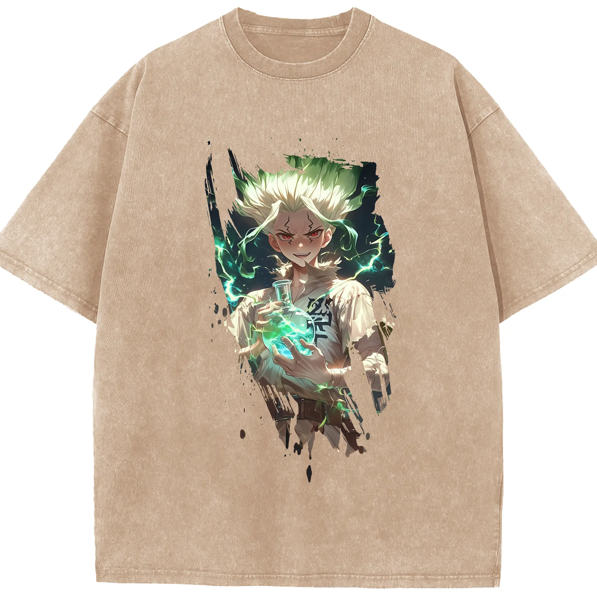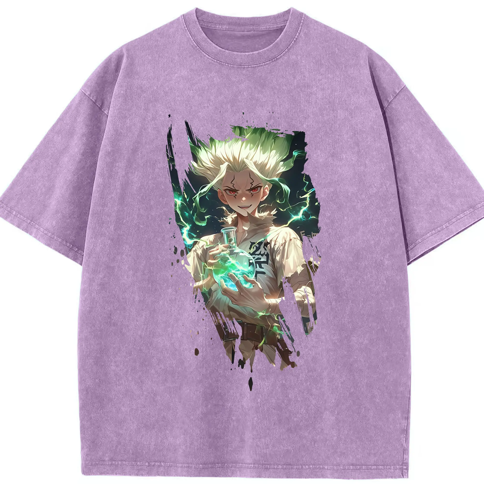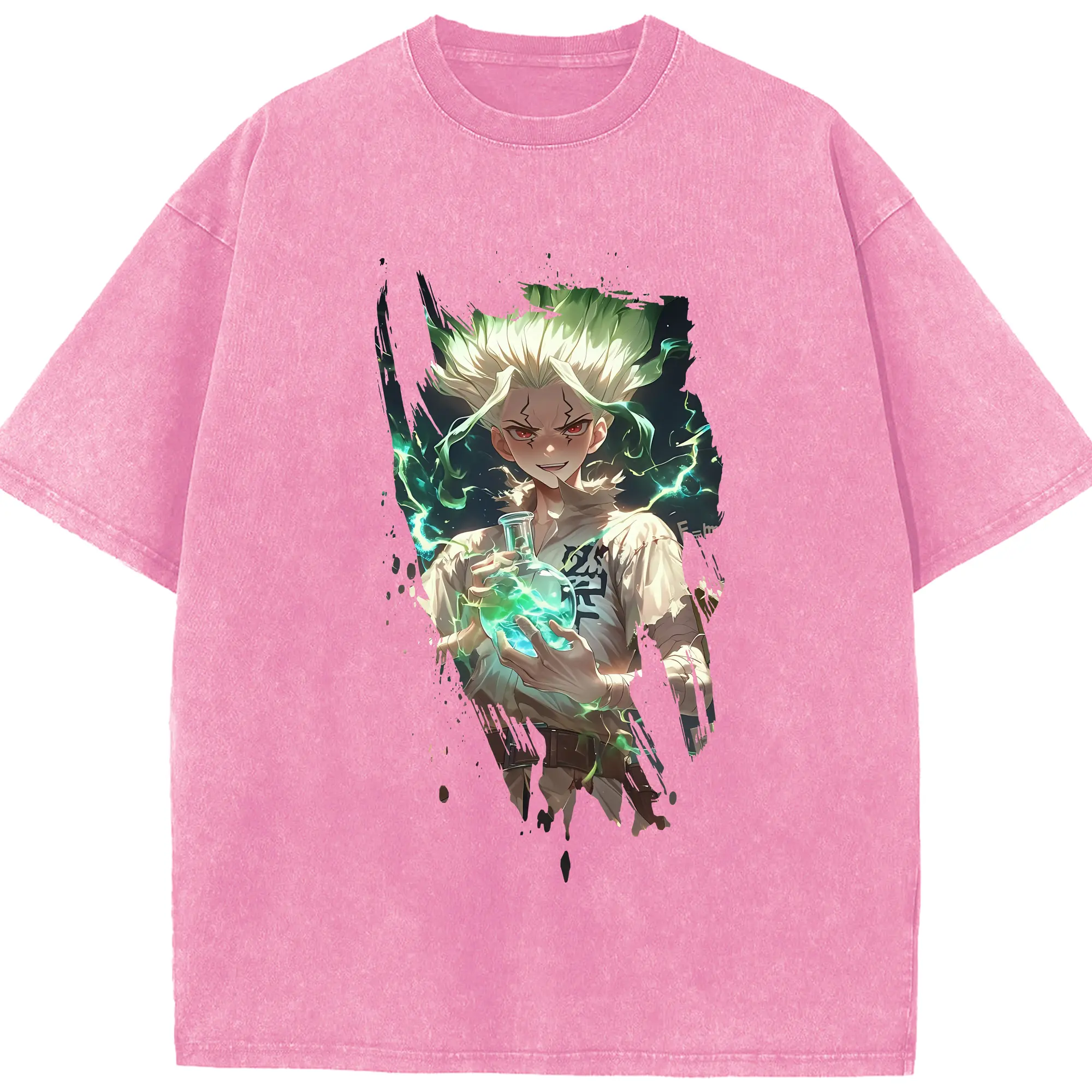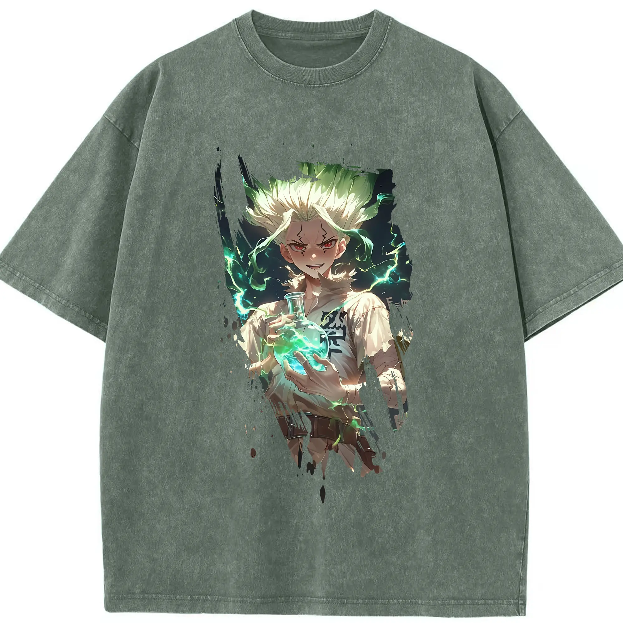 ドクターストーン グッズ,石神千空 - 綿100% ヴィンテージ風 半袖Tシャツ ・ 背面プリント ・ 柔らか肌触り ・ 通気性 快適 ・ スポーツ カジュアル 外出用