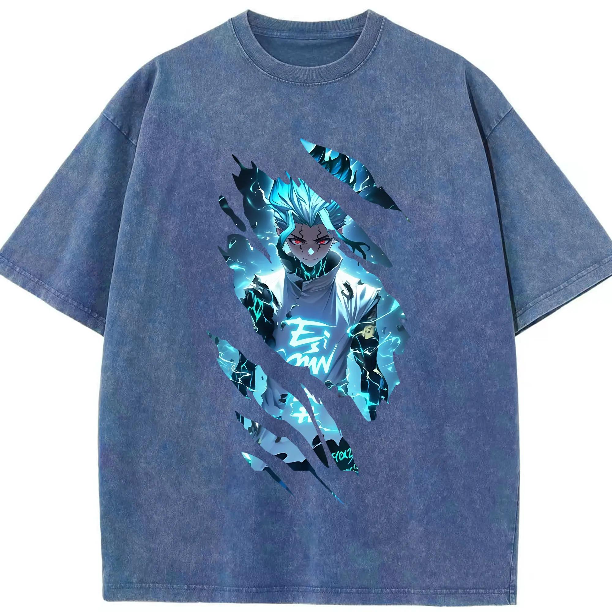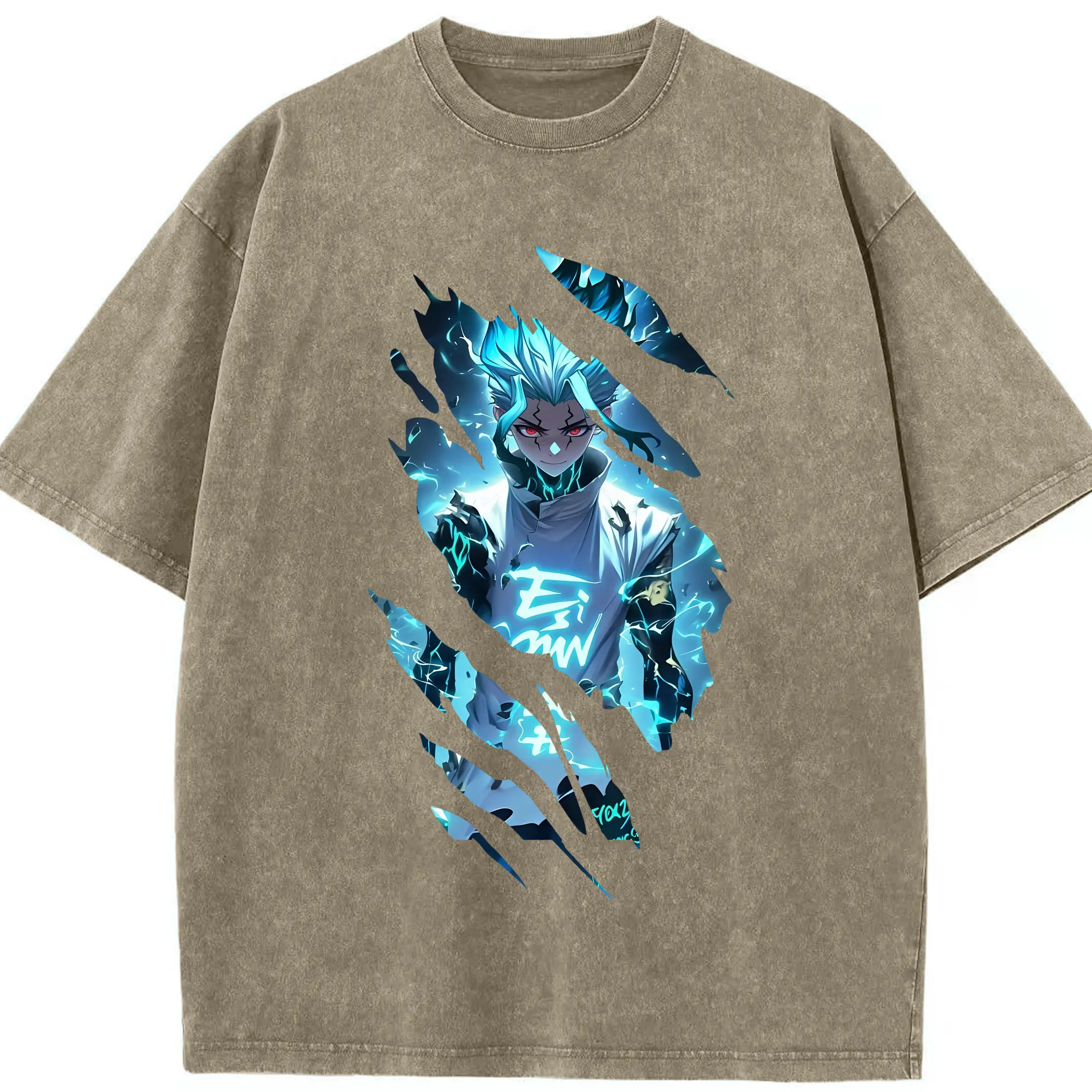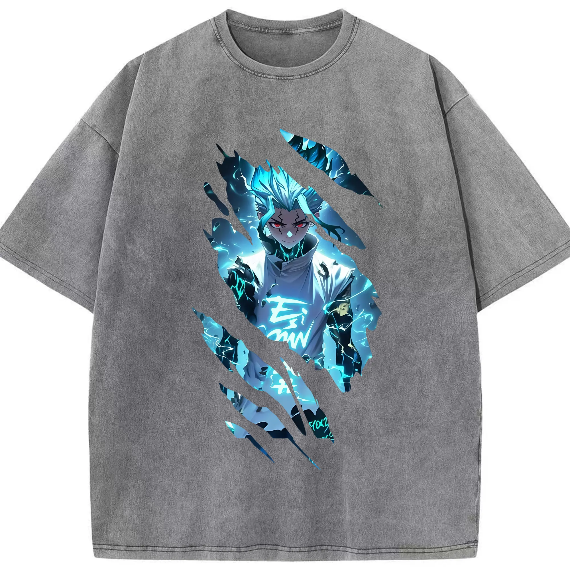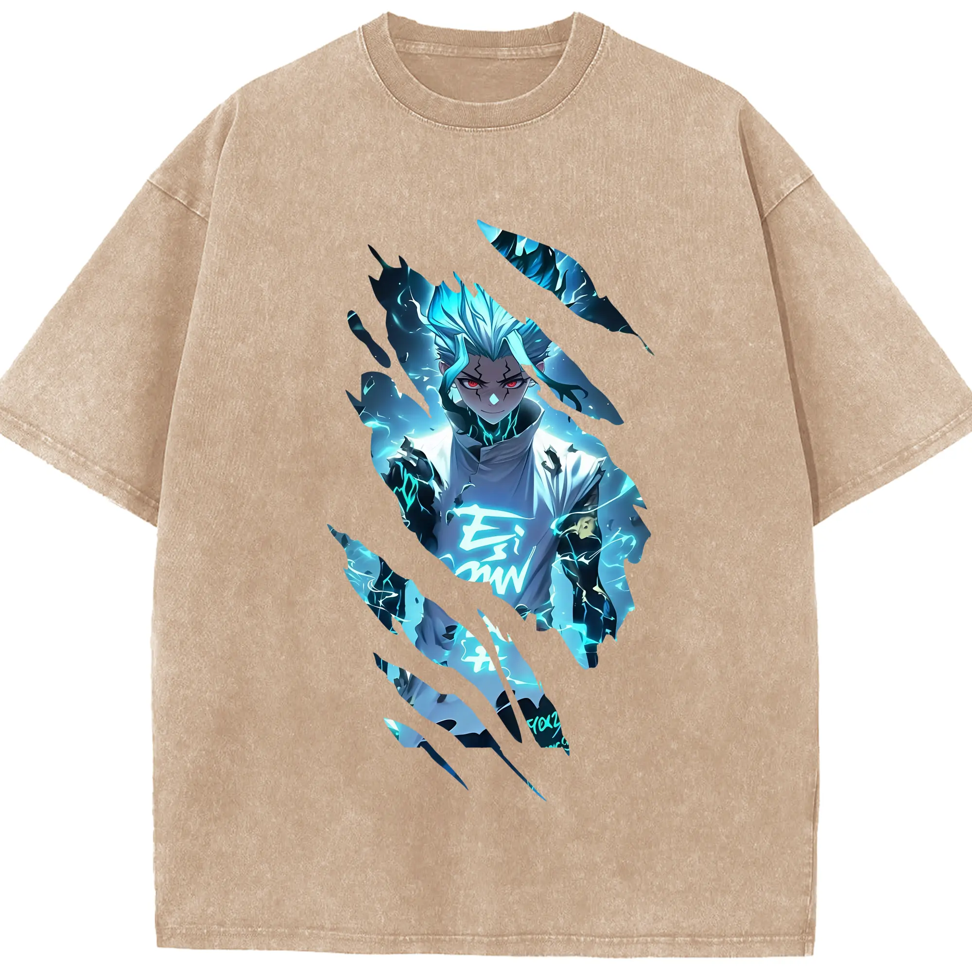 ドクターストーン グッズ,石神千空 - 綿100% ヴィンテージ風 半袖Tシャツ ・ 背面プリント ・ 柔らか肌触り ・ 通気性 快適 ・ スポーツ カジュアル 外出用