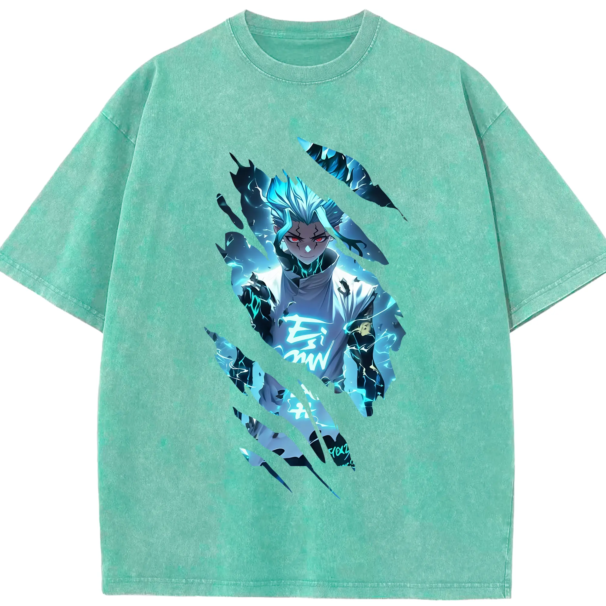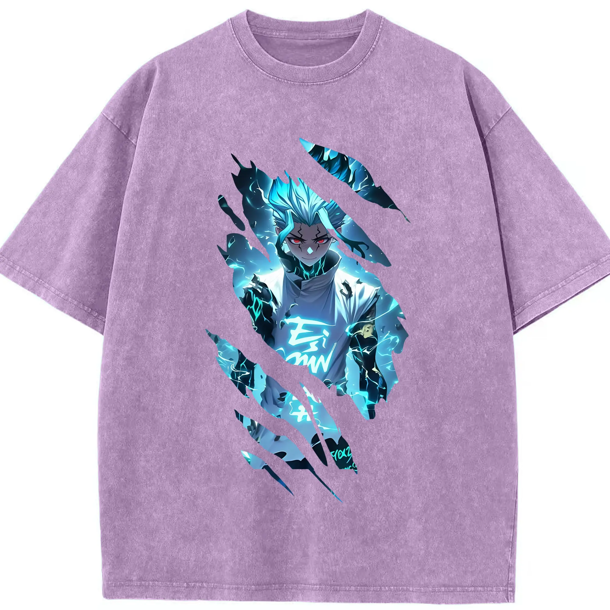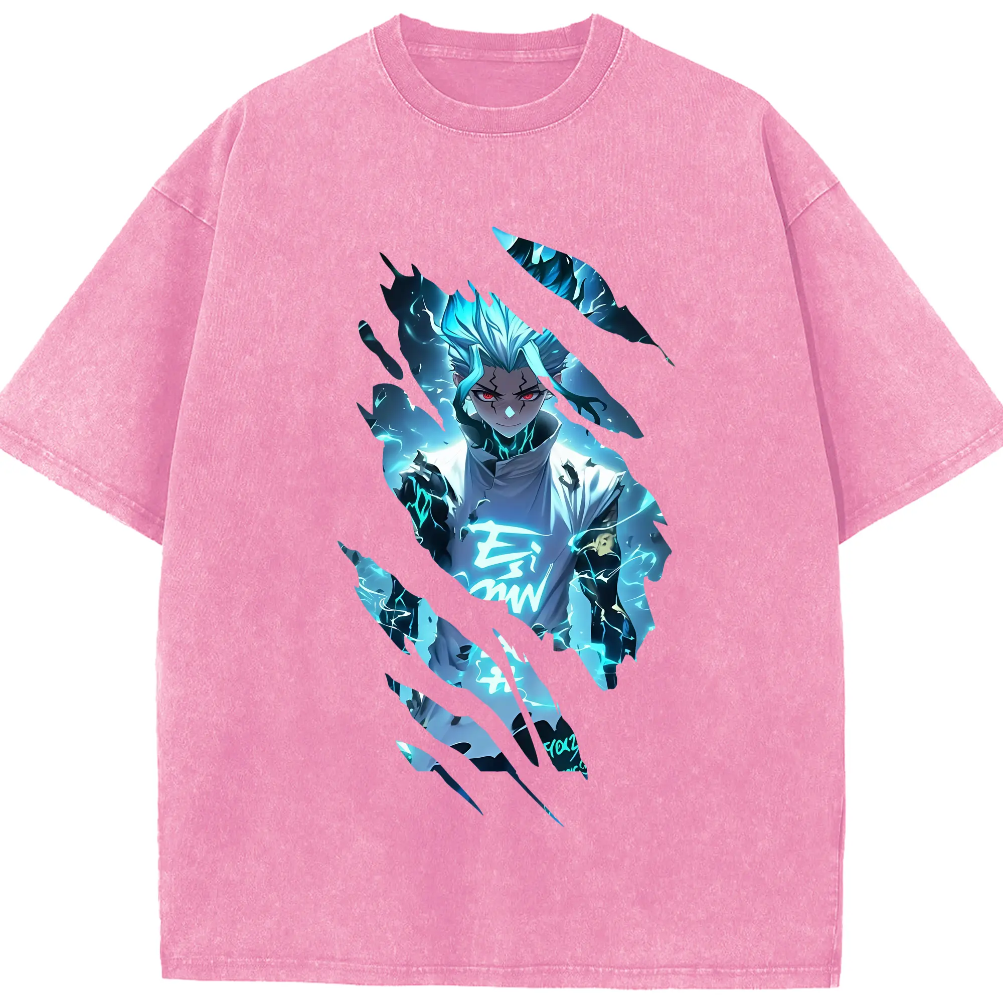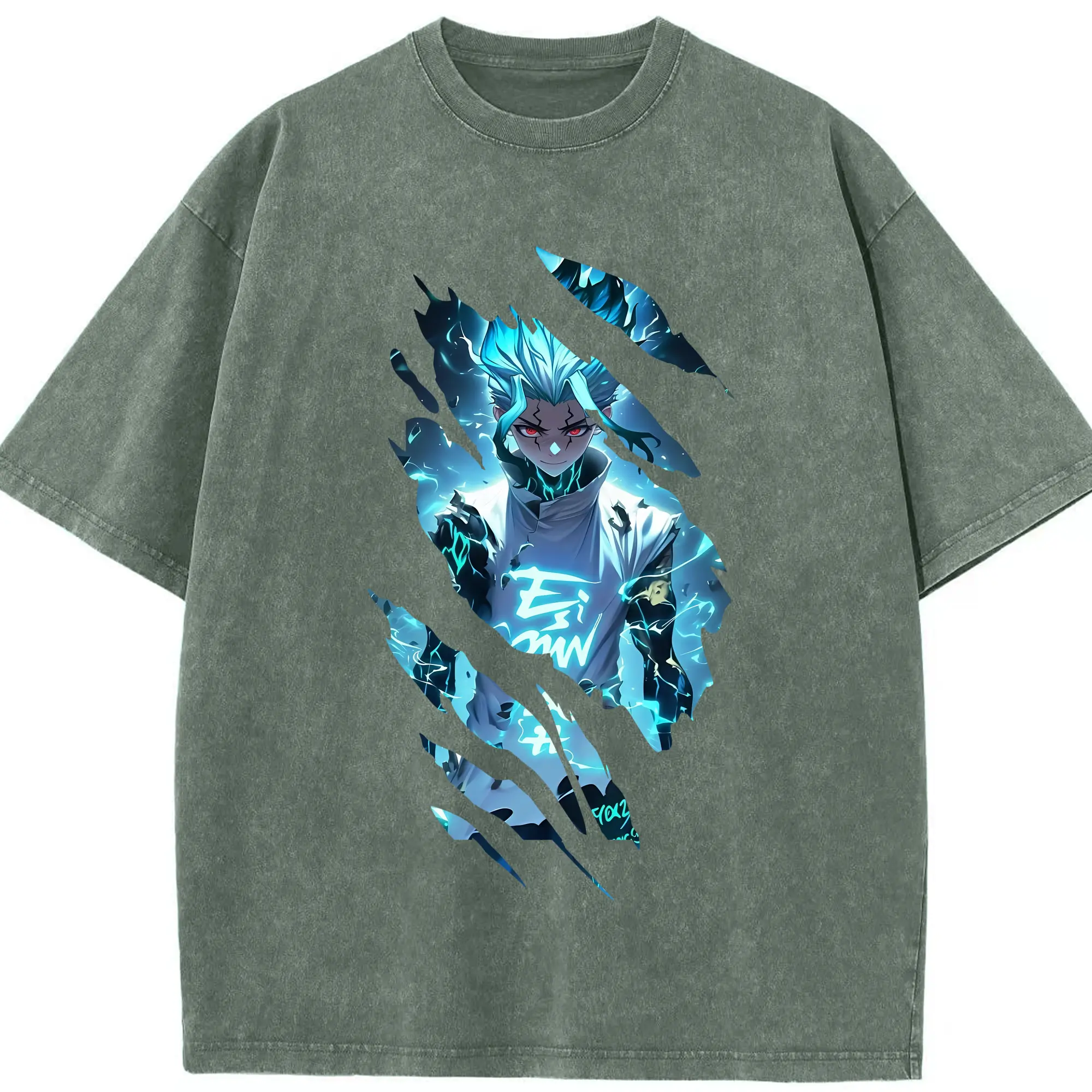 ドクターストーン グッズ,石神千空 - 綿100% ヴィンテージ風 半袖Tシャツ ・ 背面プリント ・ 柔らか肌触り ・ 通気性 快適 ・ スポーツ カジュアル 外出用