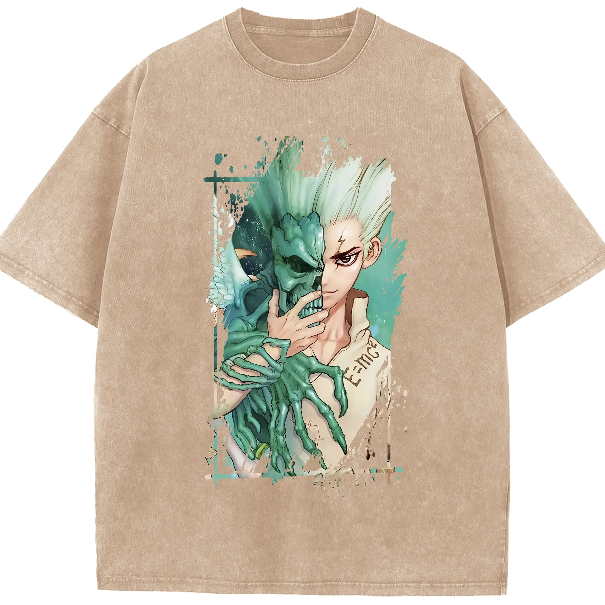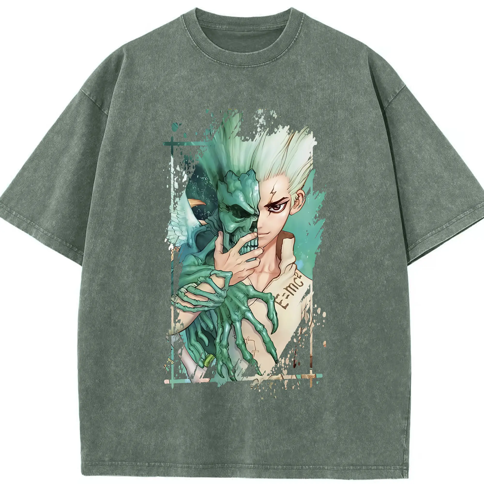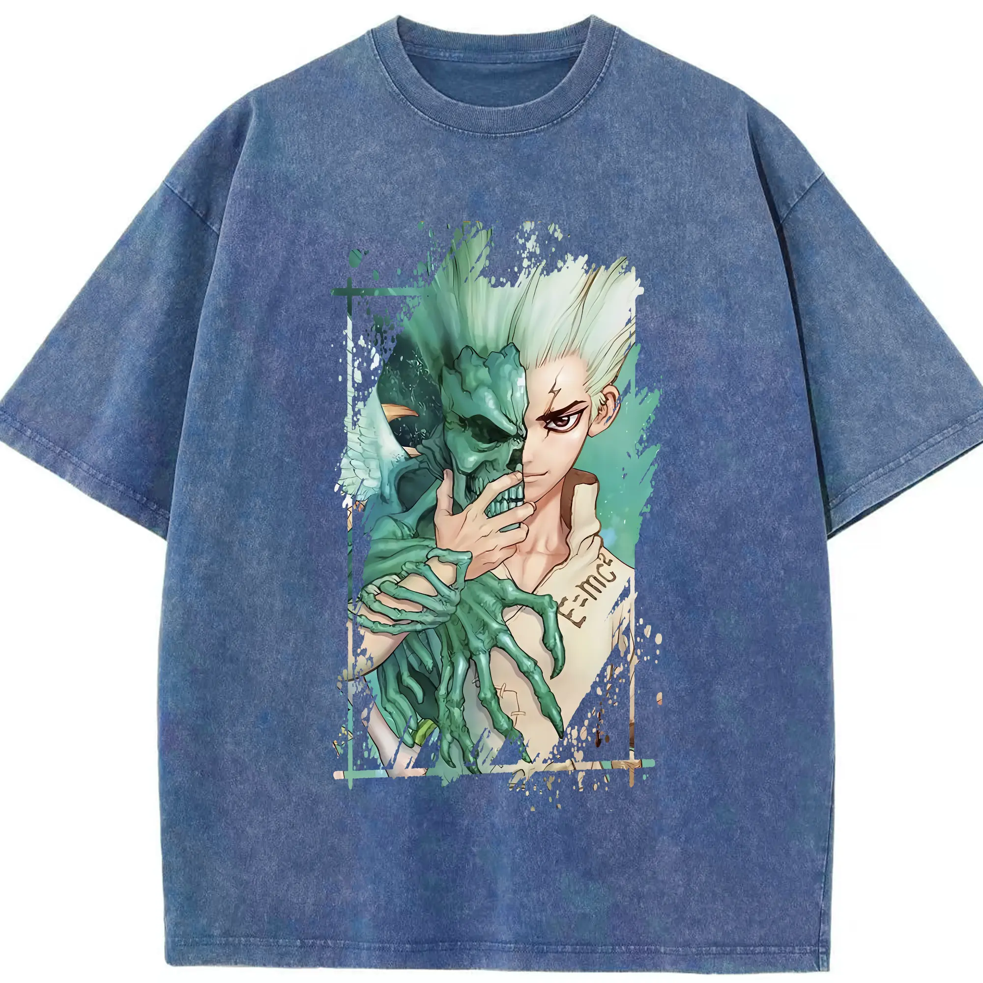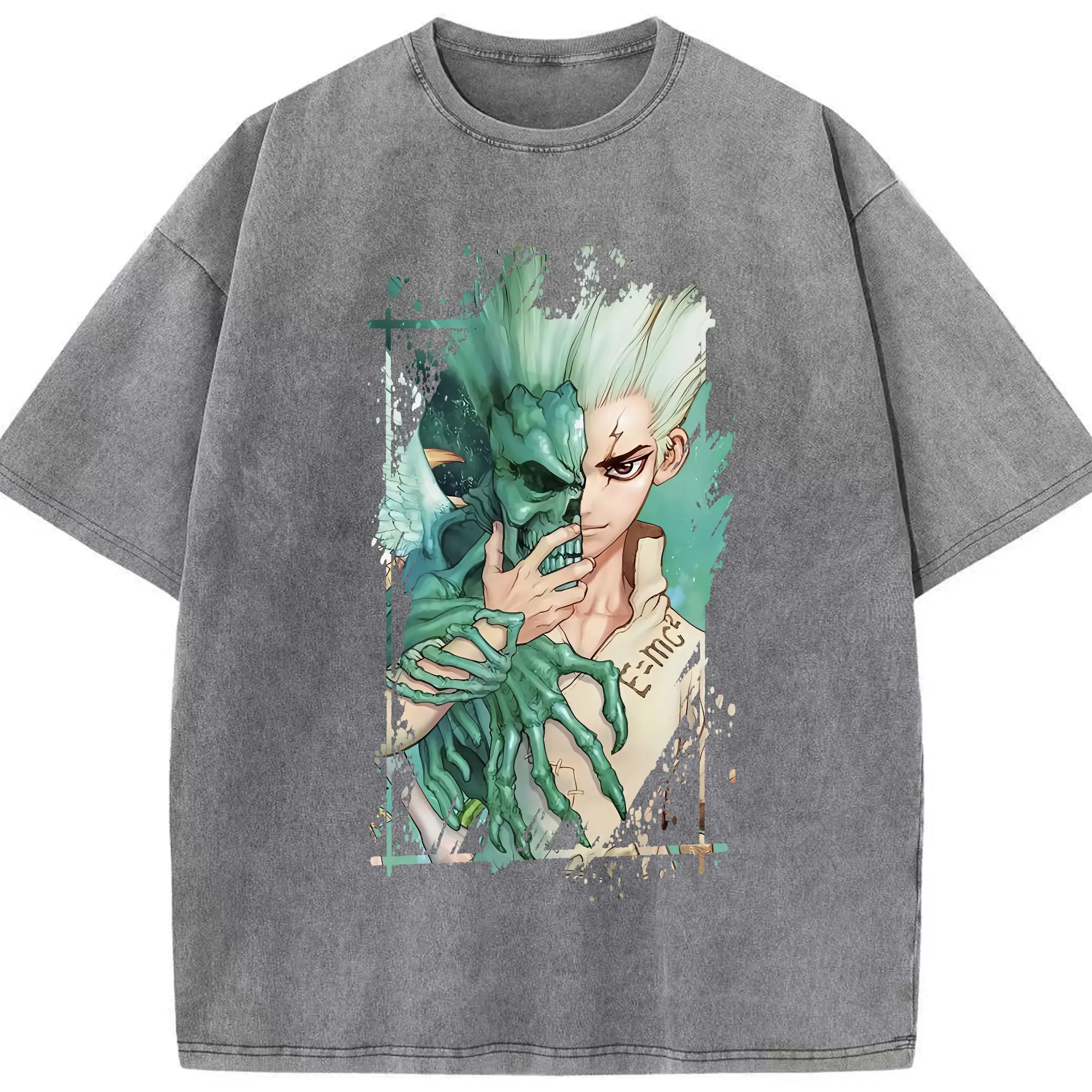 ドクターストーン グッズ,石神千空 - 綿100% ヴィンテージ風 半袖Tシャツ ・ 背面プリント ・ 柔らか肌触り ・ 通気性 快適 ・ スポーツ カジュアル 外出用