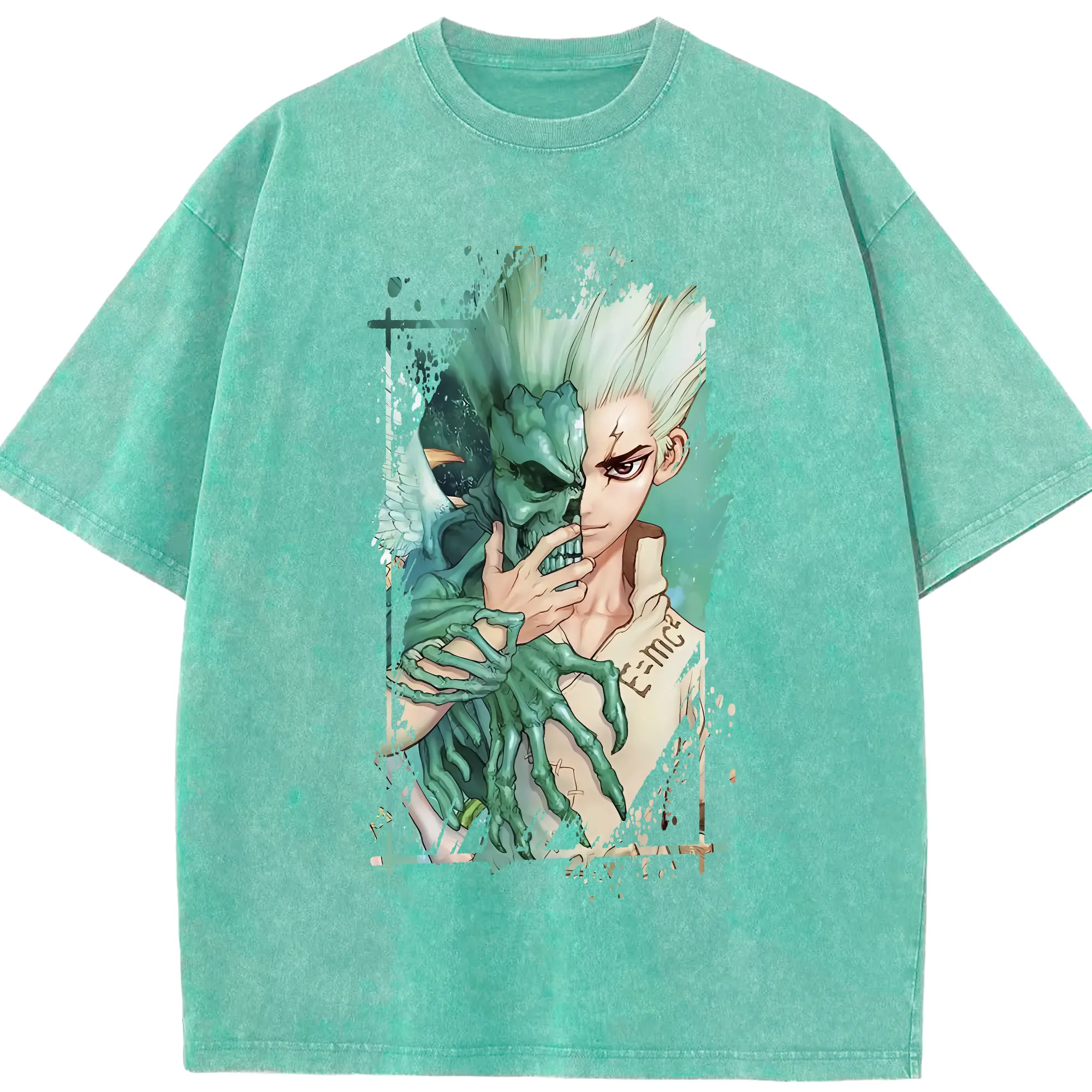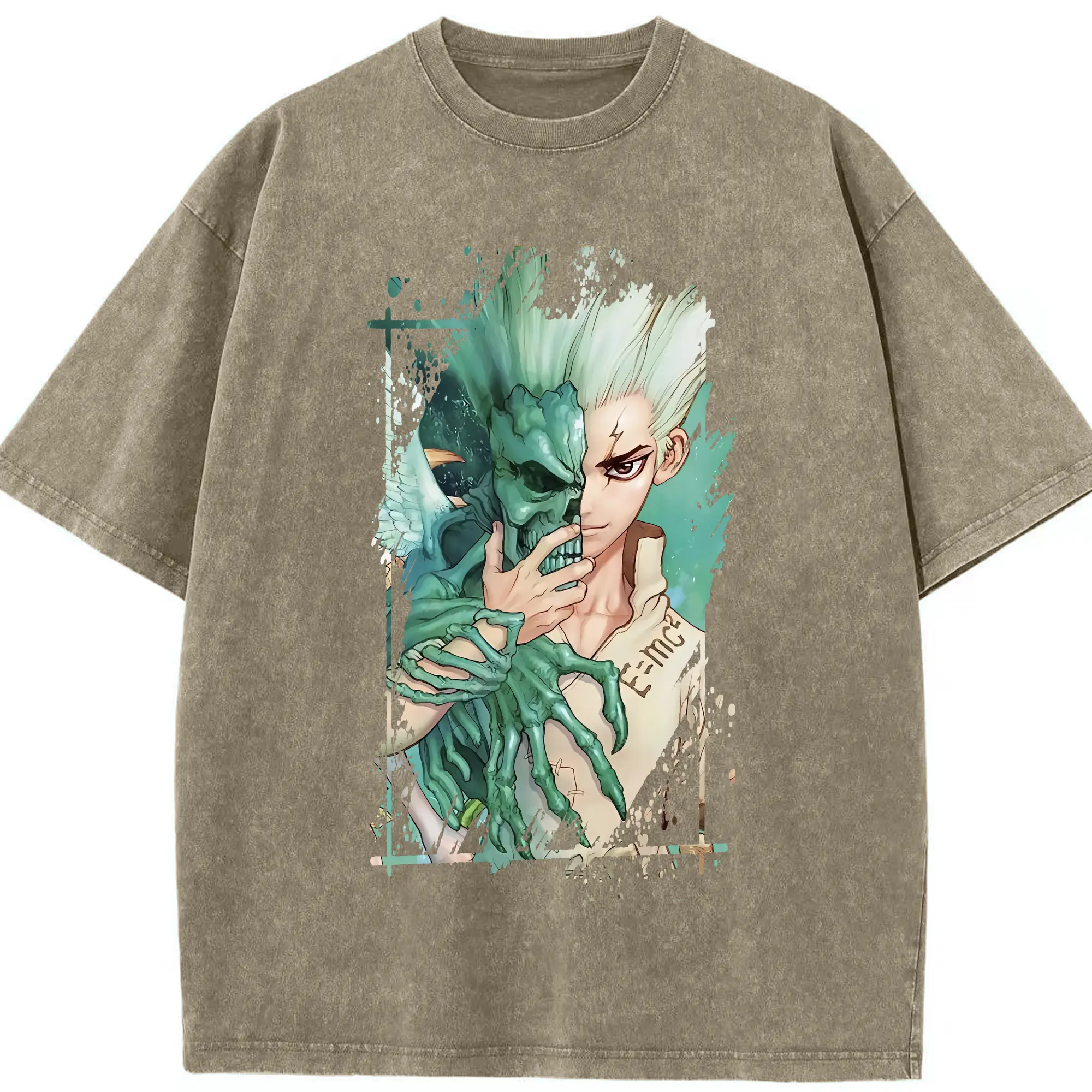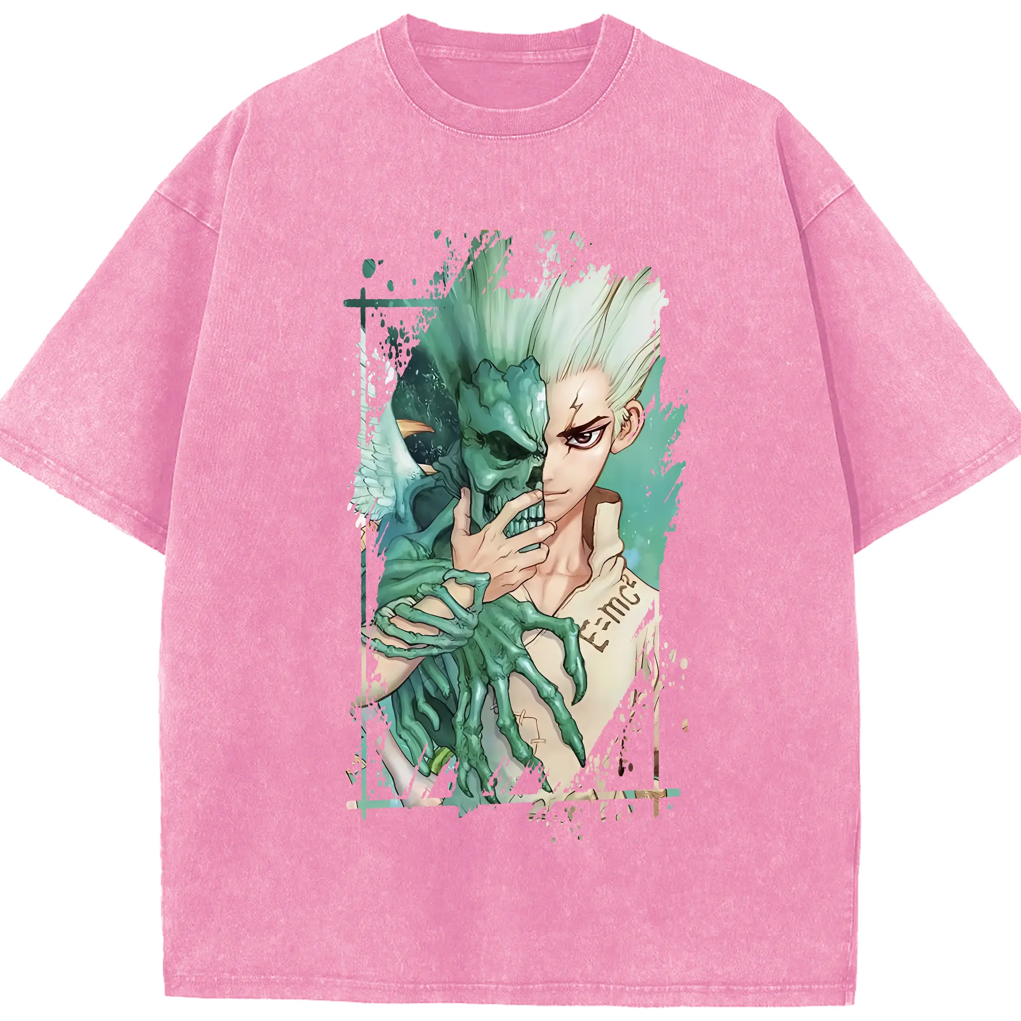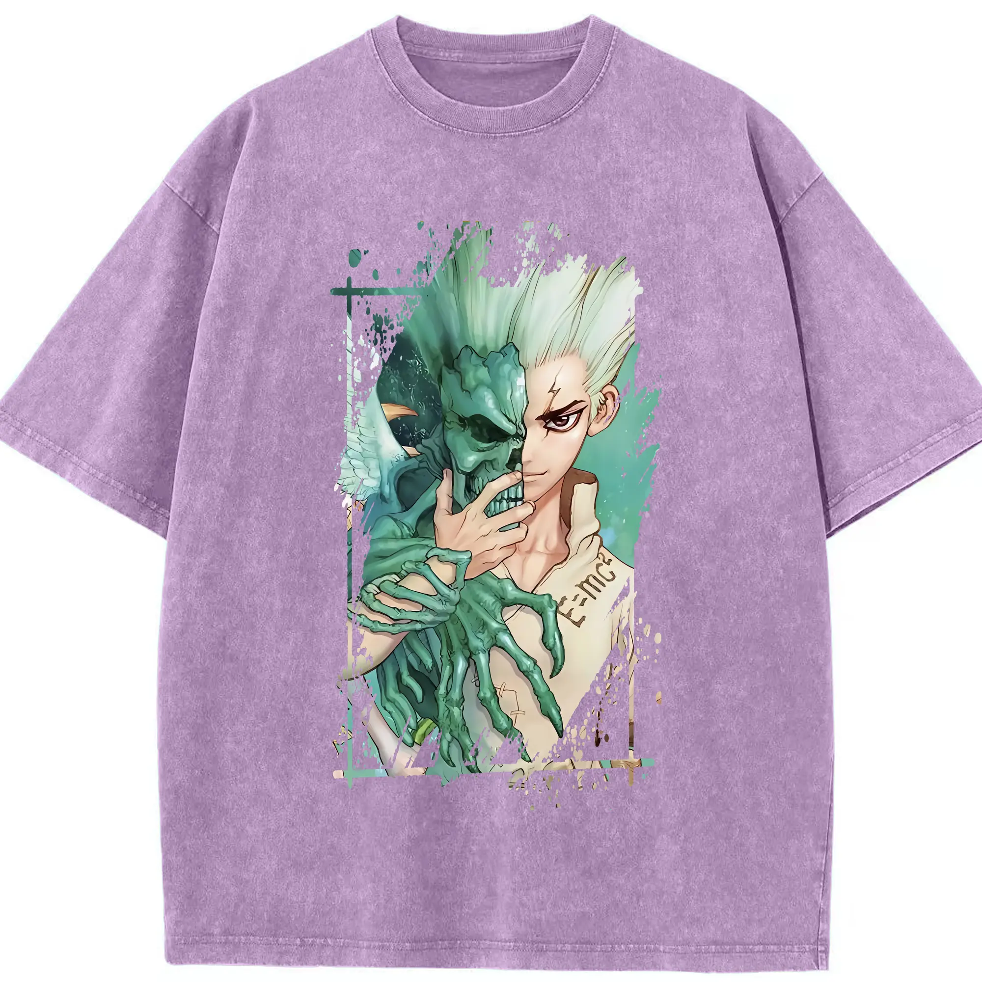 ドクターストーン グッズ,石神千空 - 綿100% ヴィンテージ風 半袖Tシャツ ・ 背面プリント ・ 柔らか肌触り ・ 通気性 快適 ・ スポーツ カジュアル 外出用
