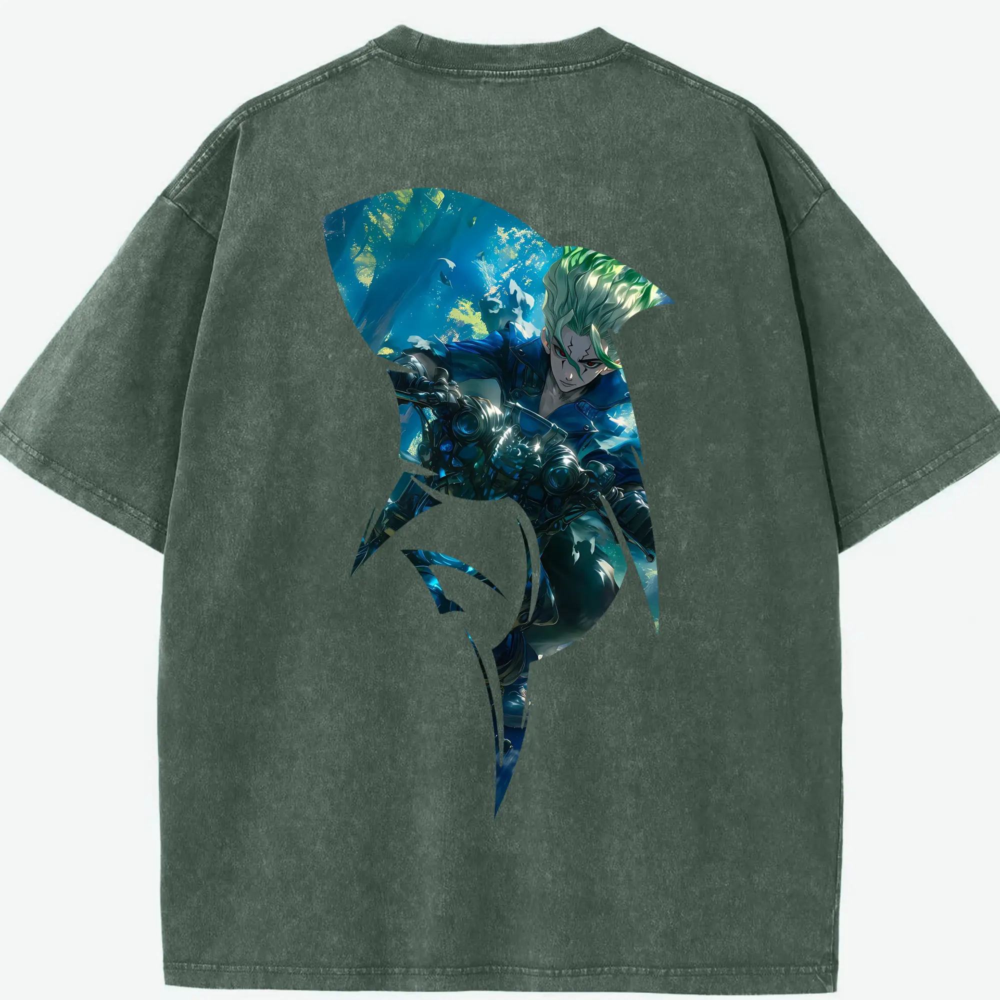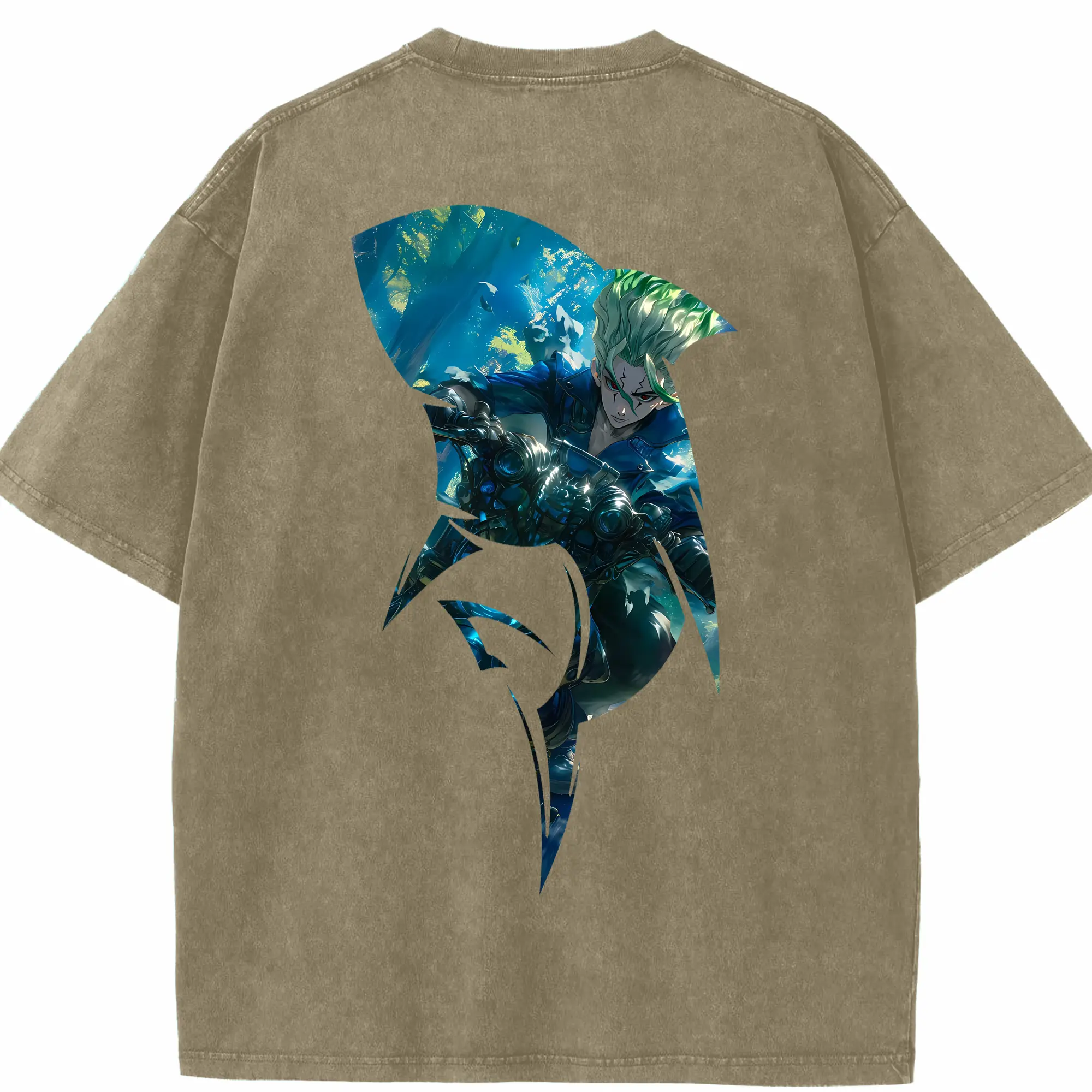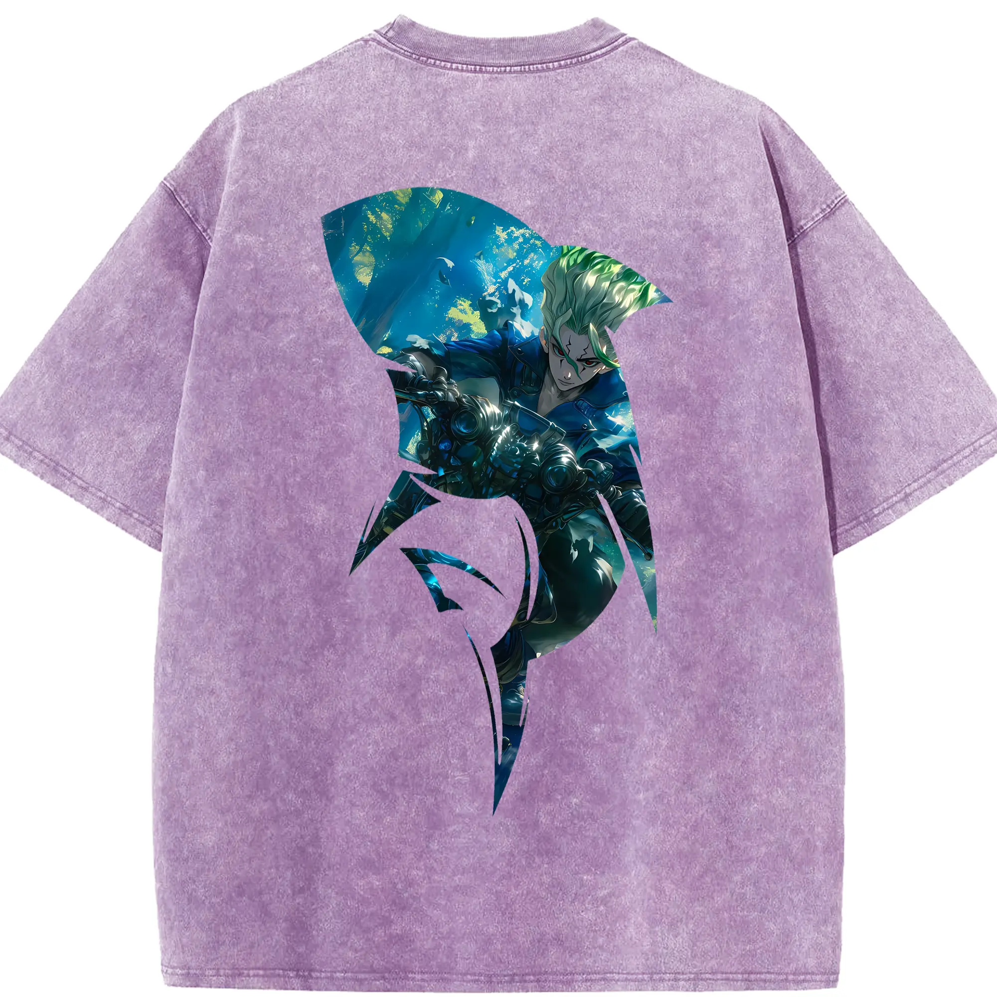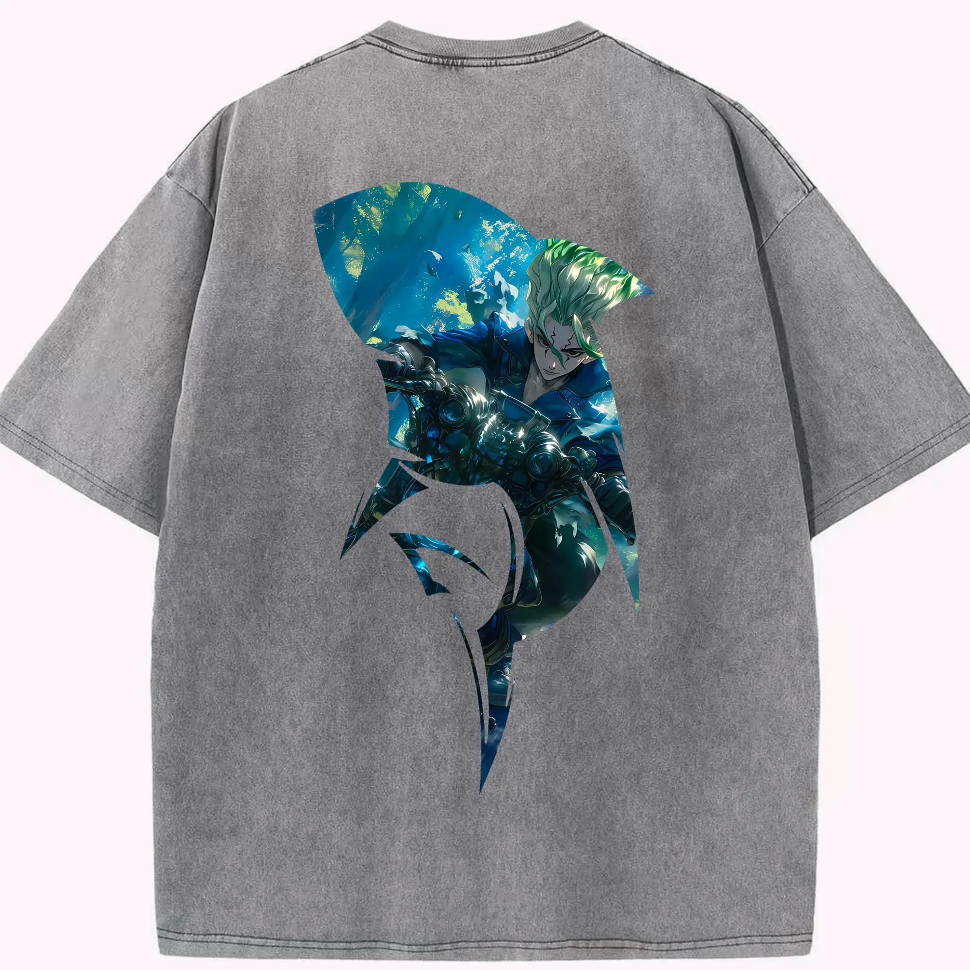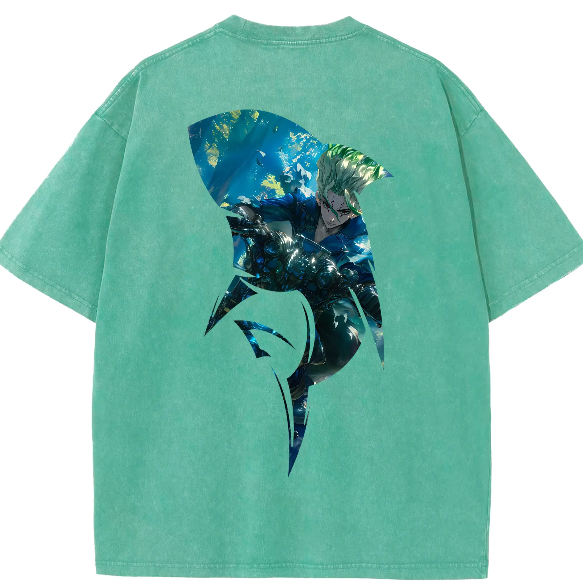 鳴潮 グッズ アンコ - 綿100% ヴィンテージ風 半袖Tシャツ ・ 背面プリント ・ 柔らか肌触り ・ 通気性 快適 ・ スポーツ カジュアル 外出用