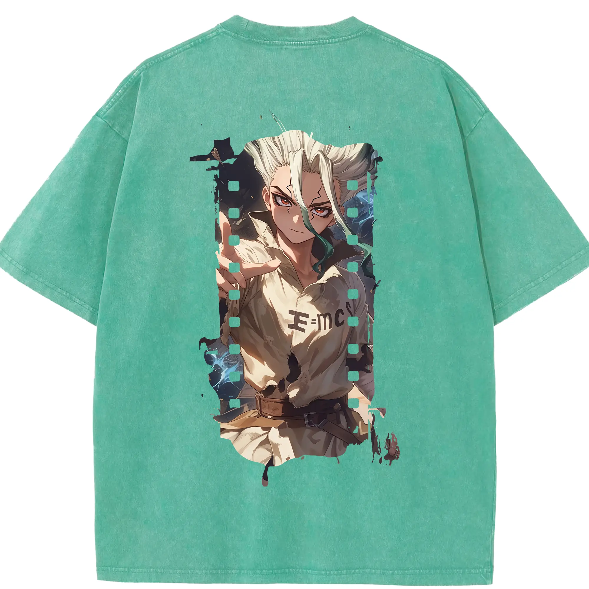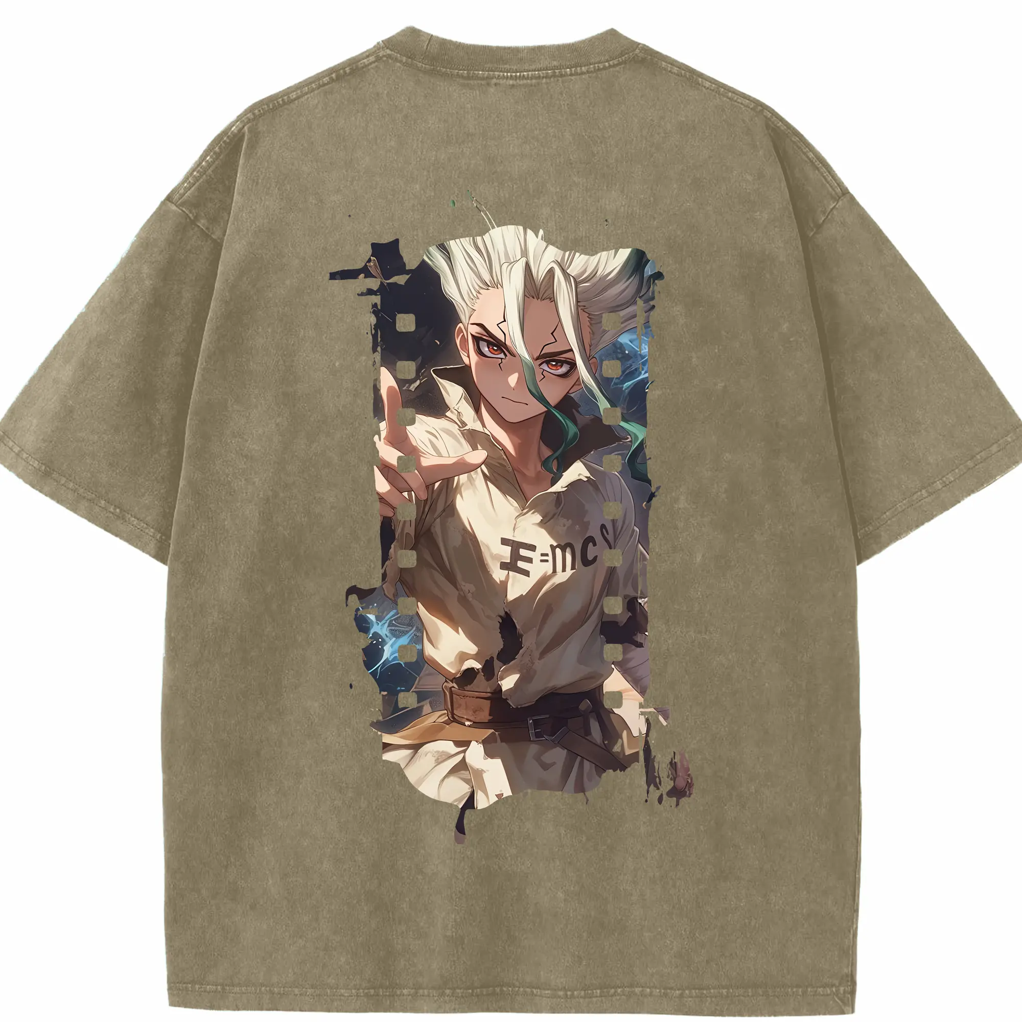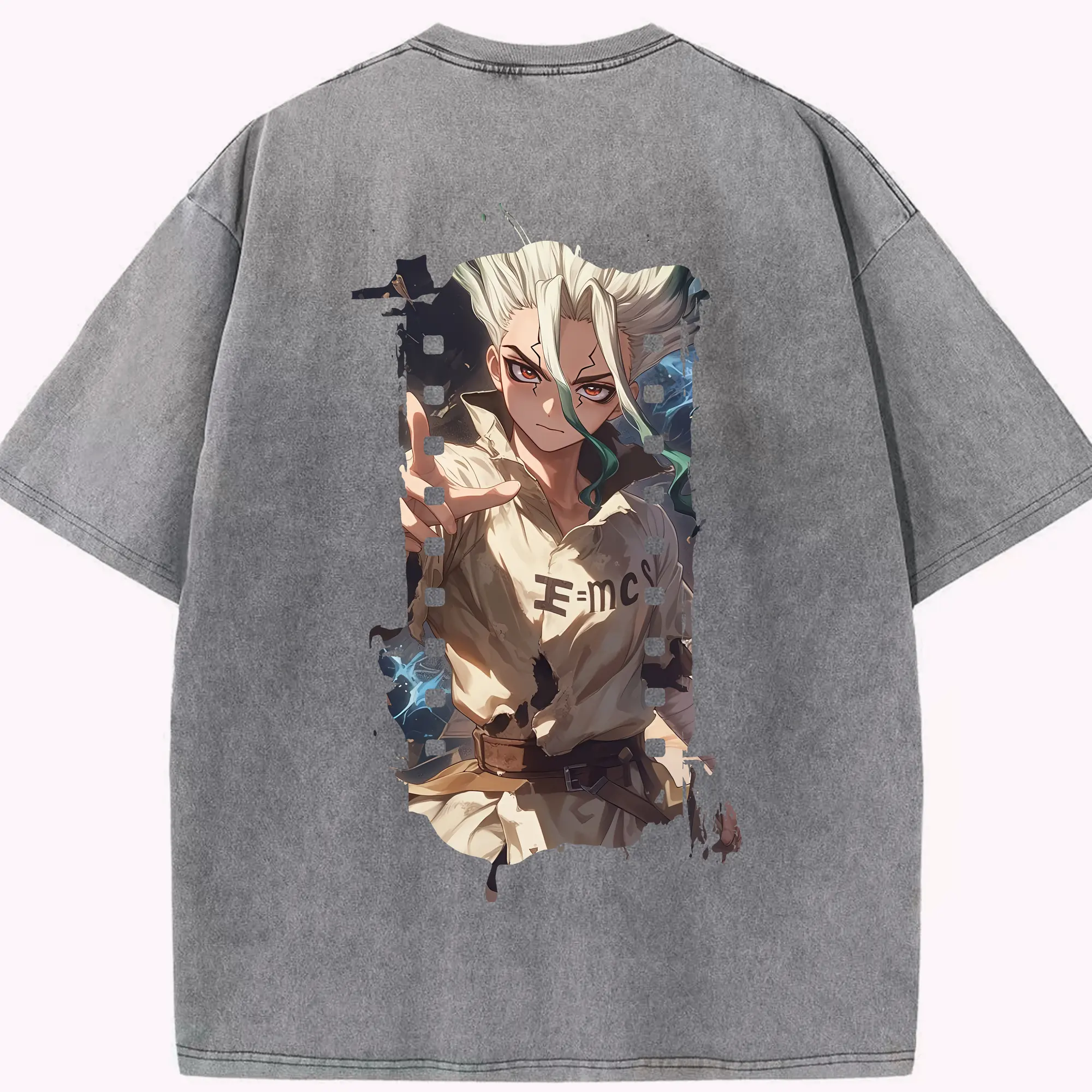 ドクターストーン グッズ,石神千空 - 綿100% ヴィンテージ風 半袖Tシャツ ・ フロントプリント ・ 柔らか肌触り ・ 通気性 快適 ・ スポーツ カジュアル 外出用