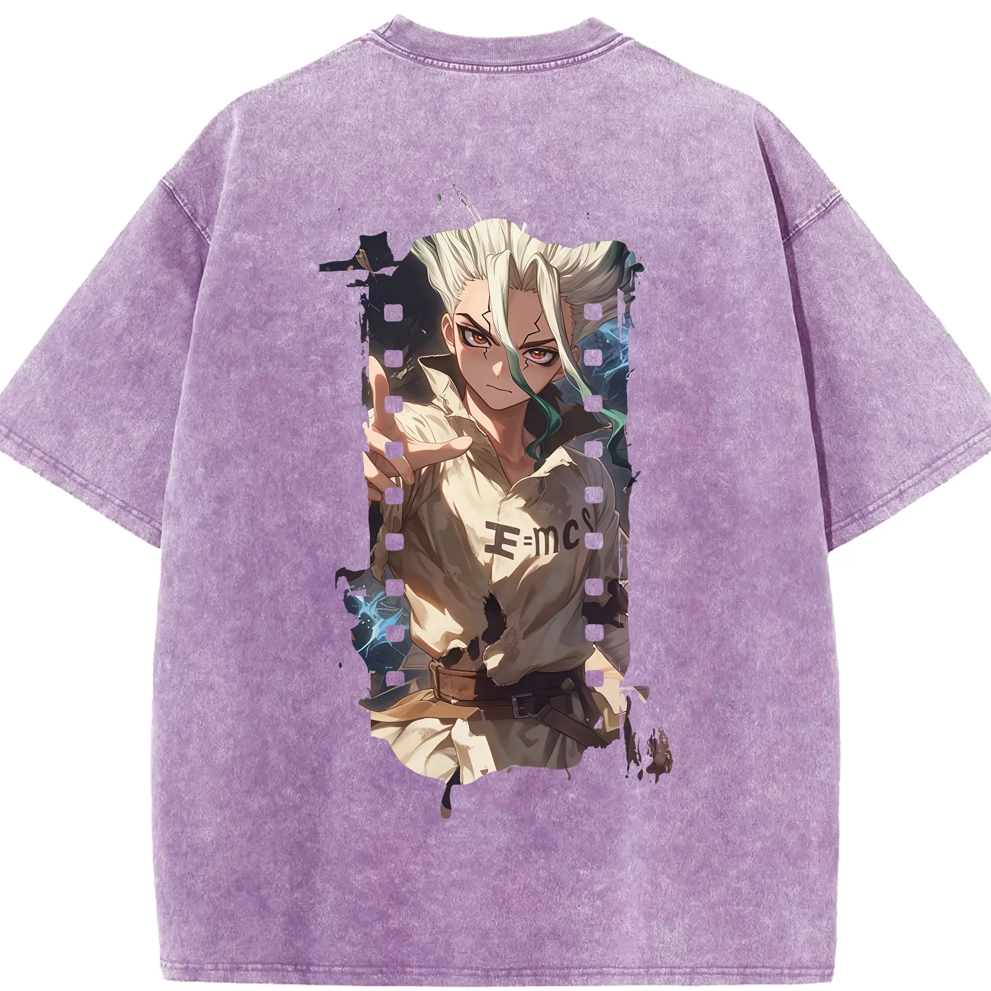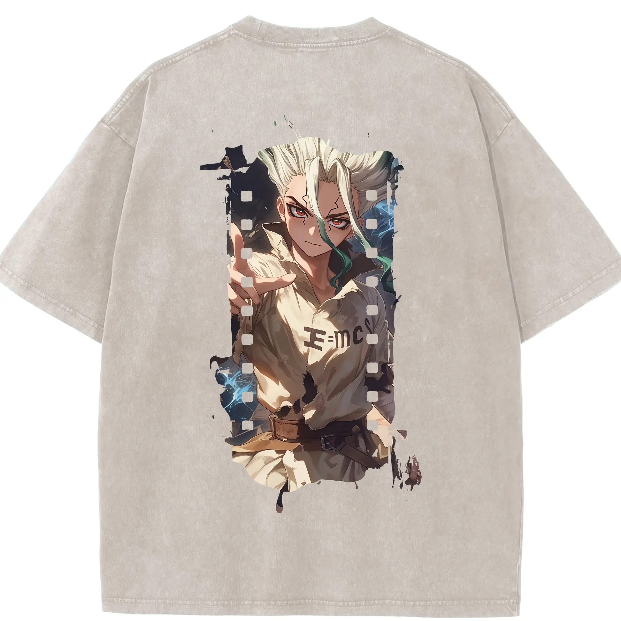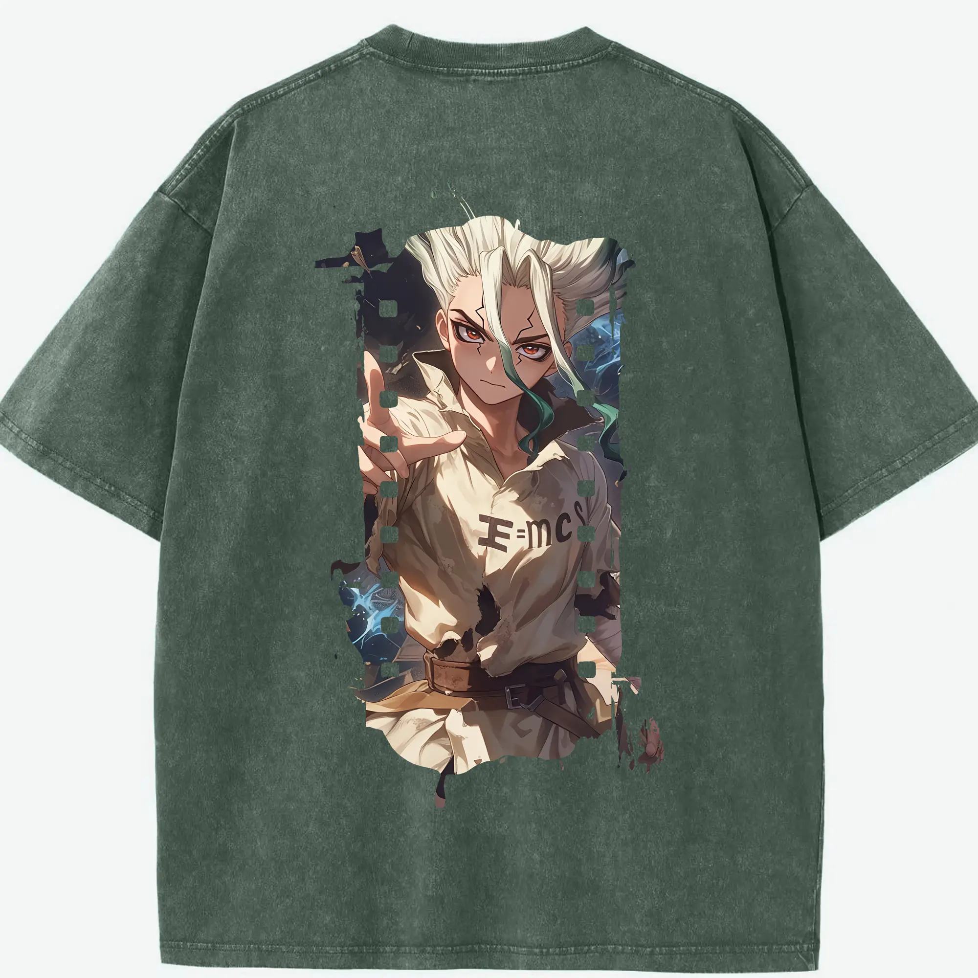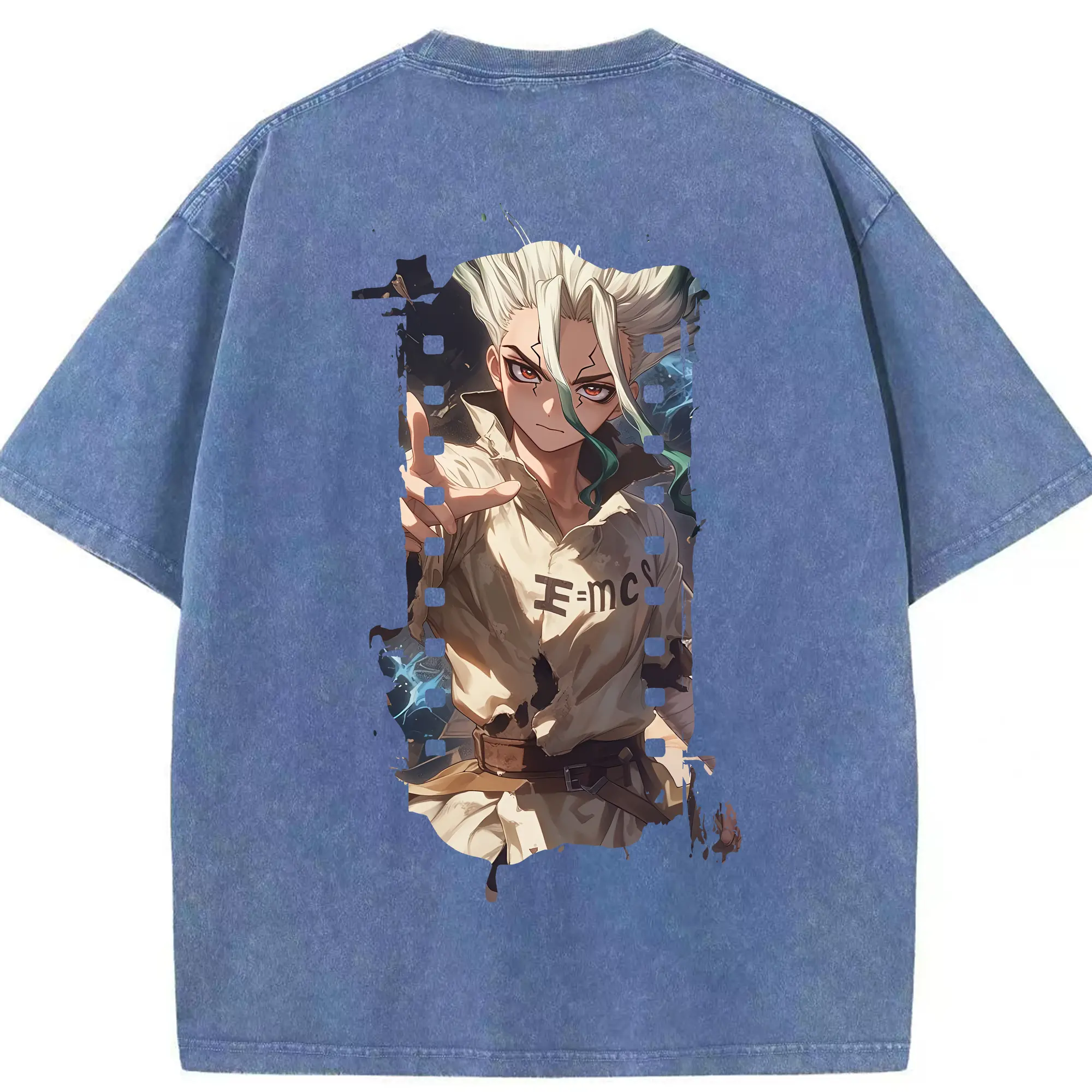 ドクターストーン グッズ,石神千空 - 綿100% ヴィンテージ風 半袖Tシャツ ・ フロントプリント ・ 柔らか肌触り ・ 通気性 快適 ・ スポーツ カジュアル 外出用