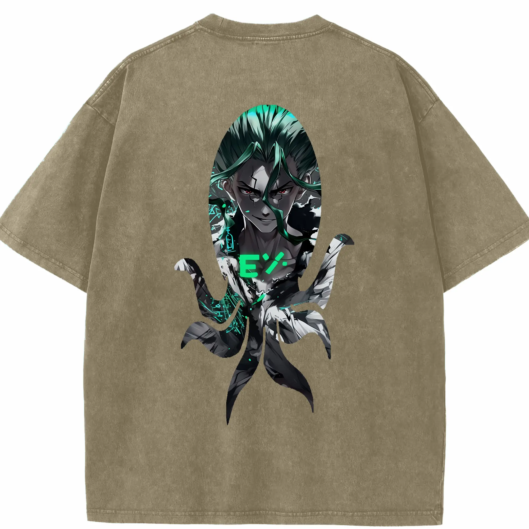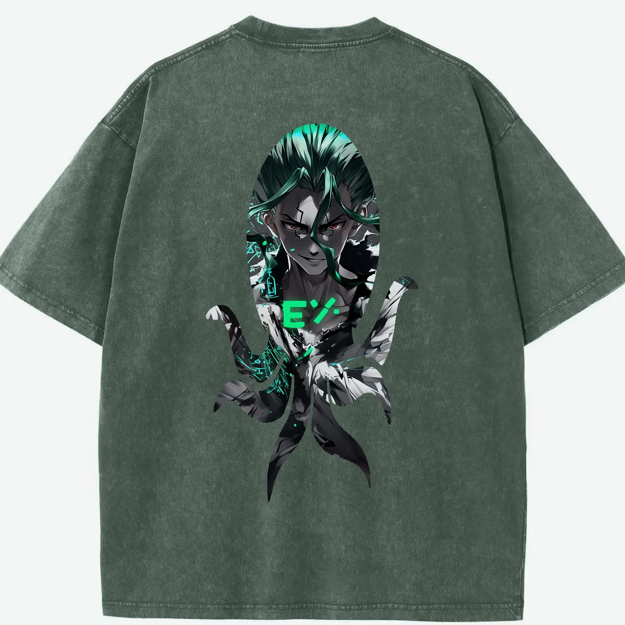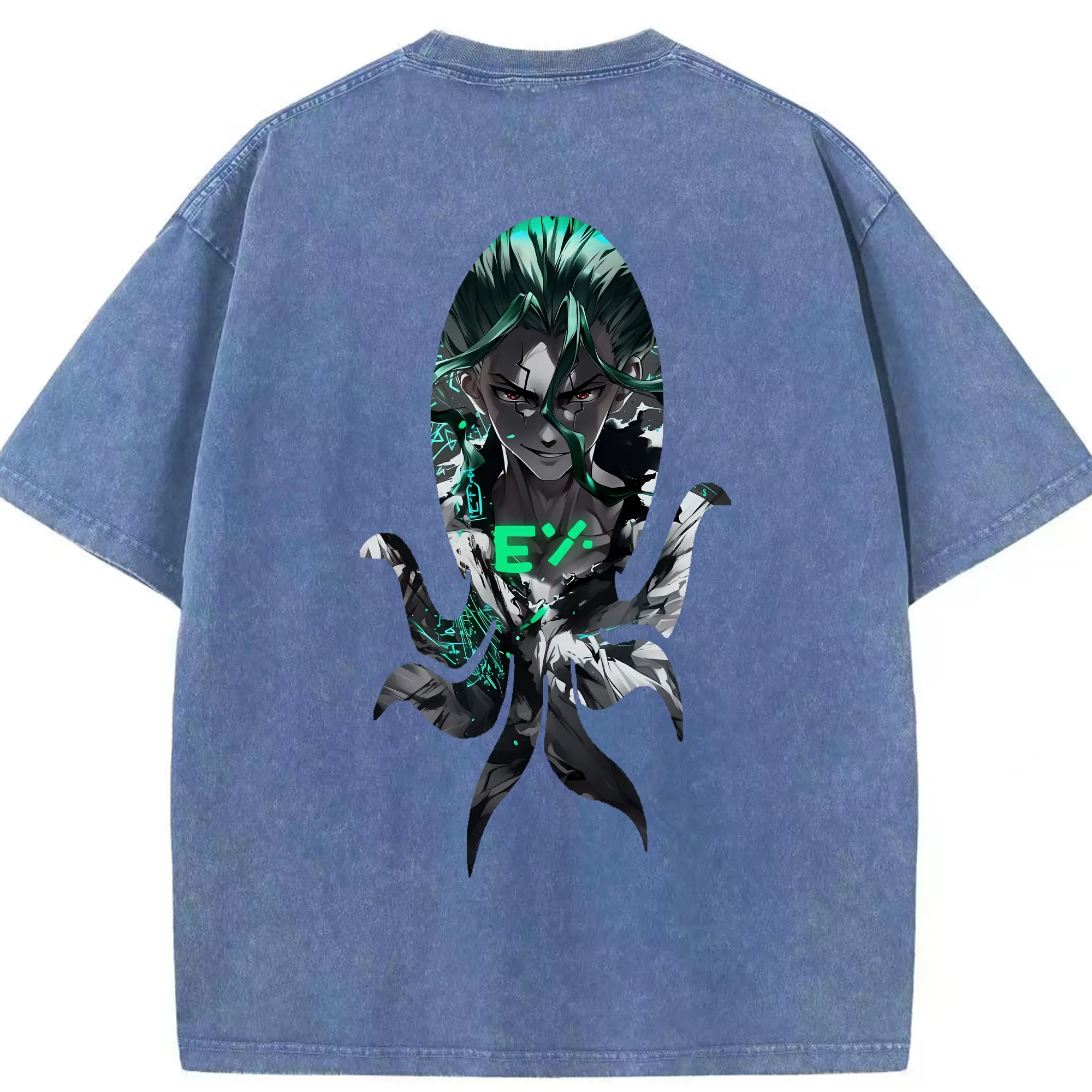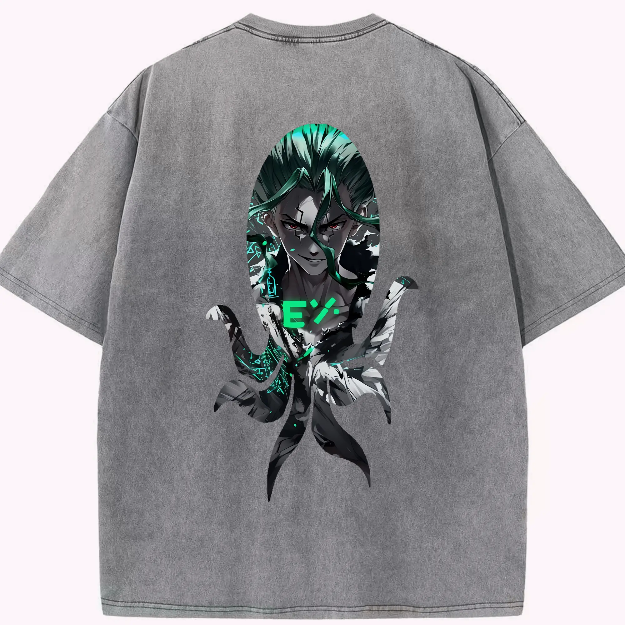 ドクターストーン グッズ,石神千空 - 綿100% ヴィンテージ風 半袖Tシャツ ・ フロントプリント ・ 柔らか肌触り ・ 通気性 快適 ・ スポーツ カジュアル 外出用
