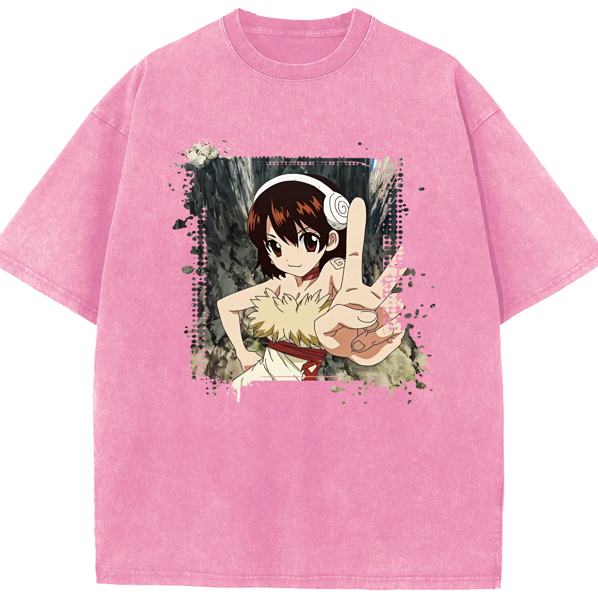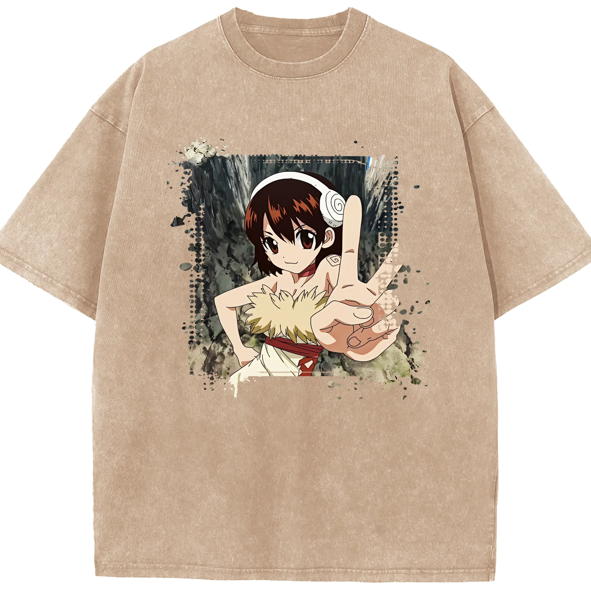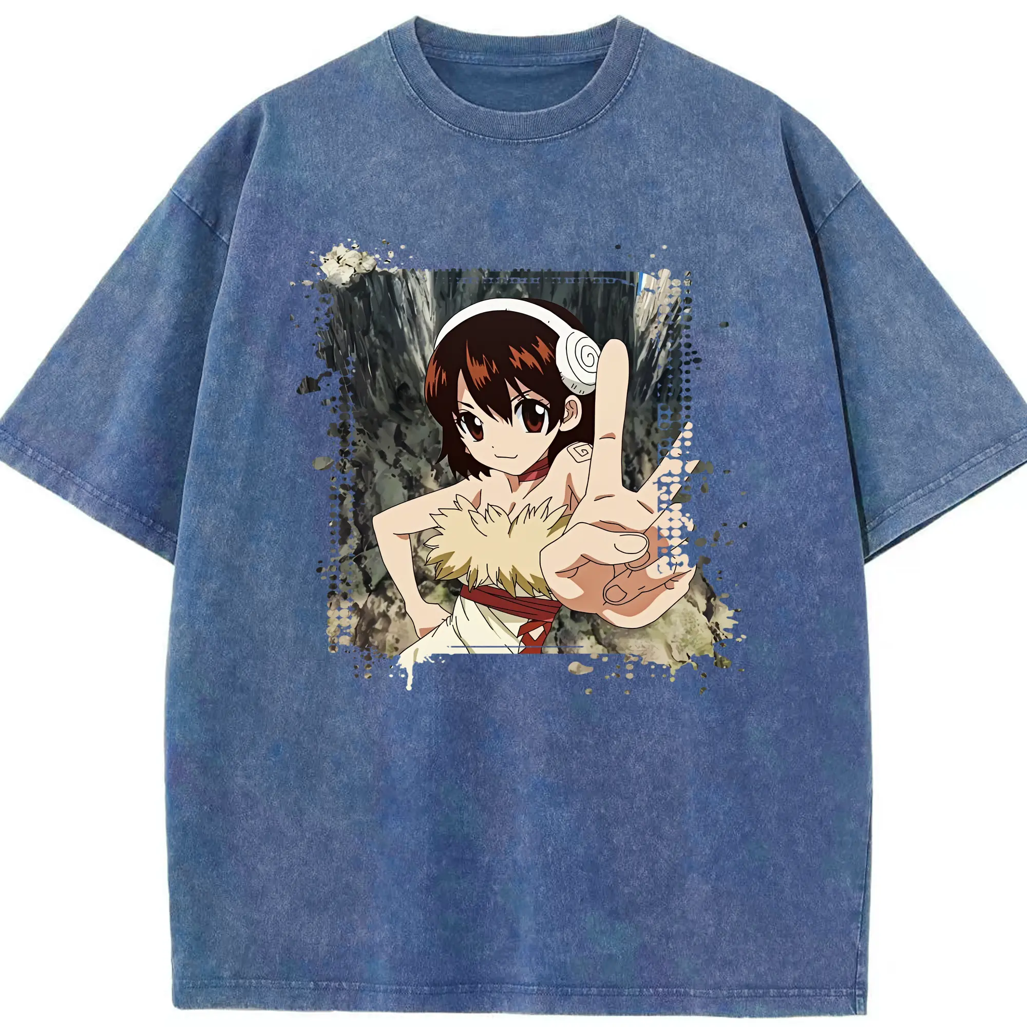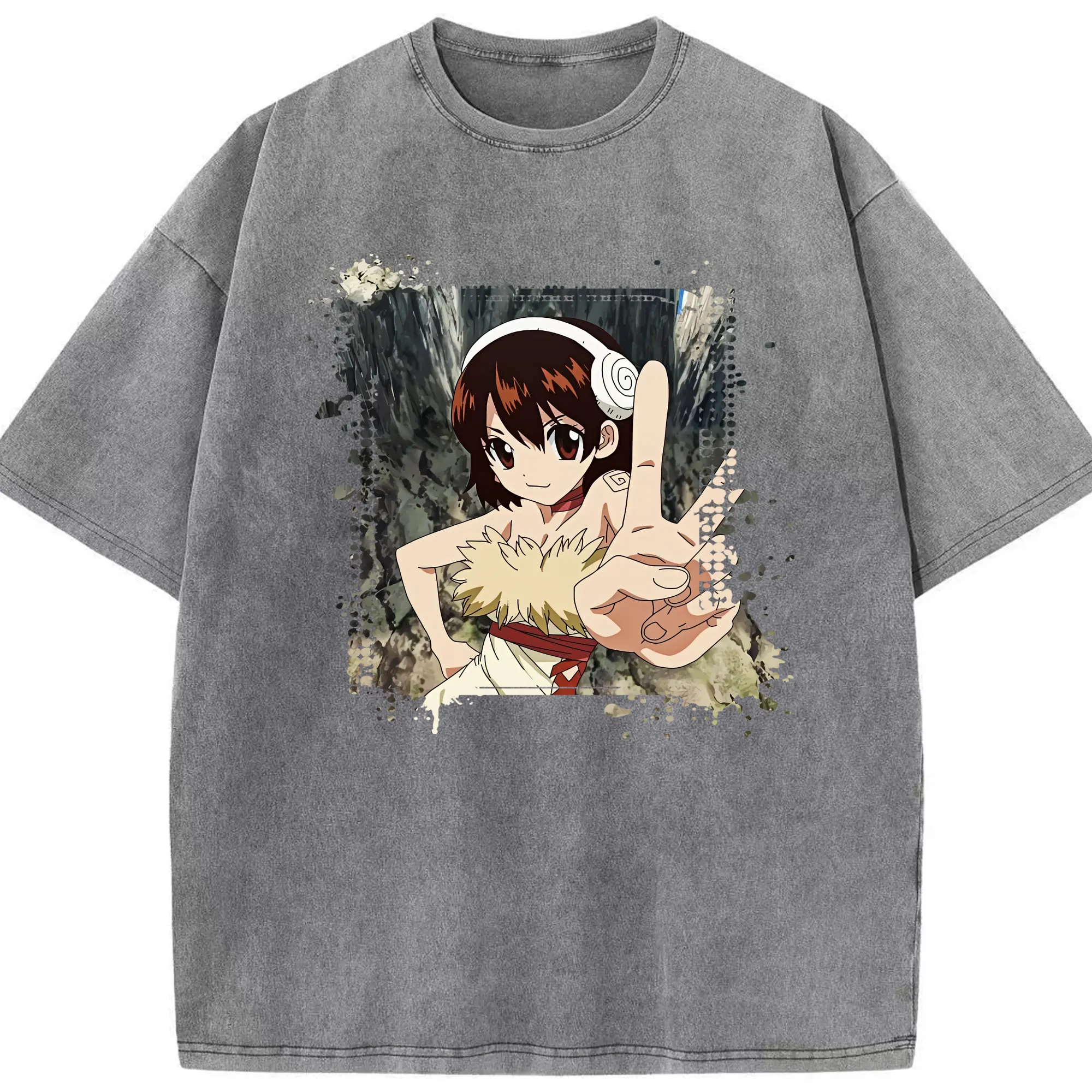 ドクターストーン グッズ,小川杠 - 綿100% ヴィンテージ風 半袖Tシャツ ・ 背面プリント ・ 柔らか肌触り ・ 通気性 快適 ・ スポーツ カジュアル 外出用