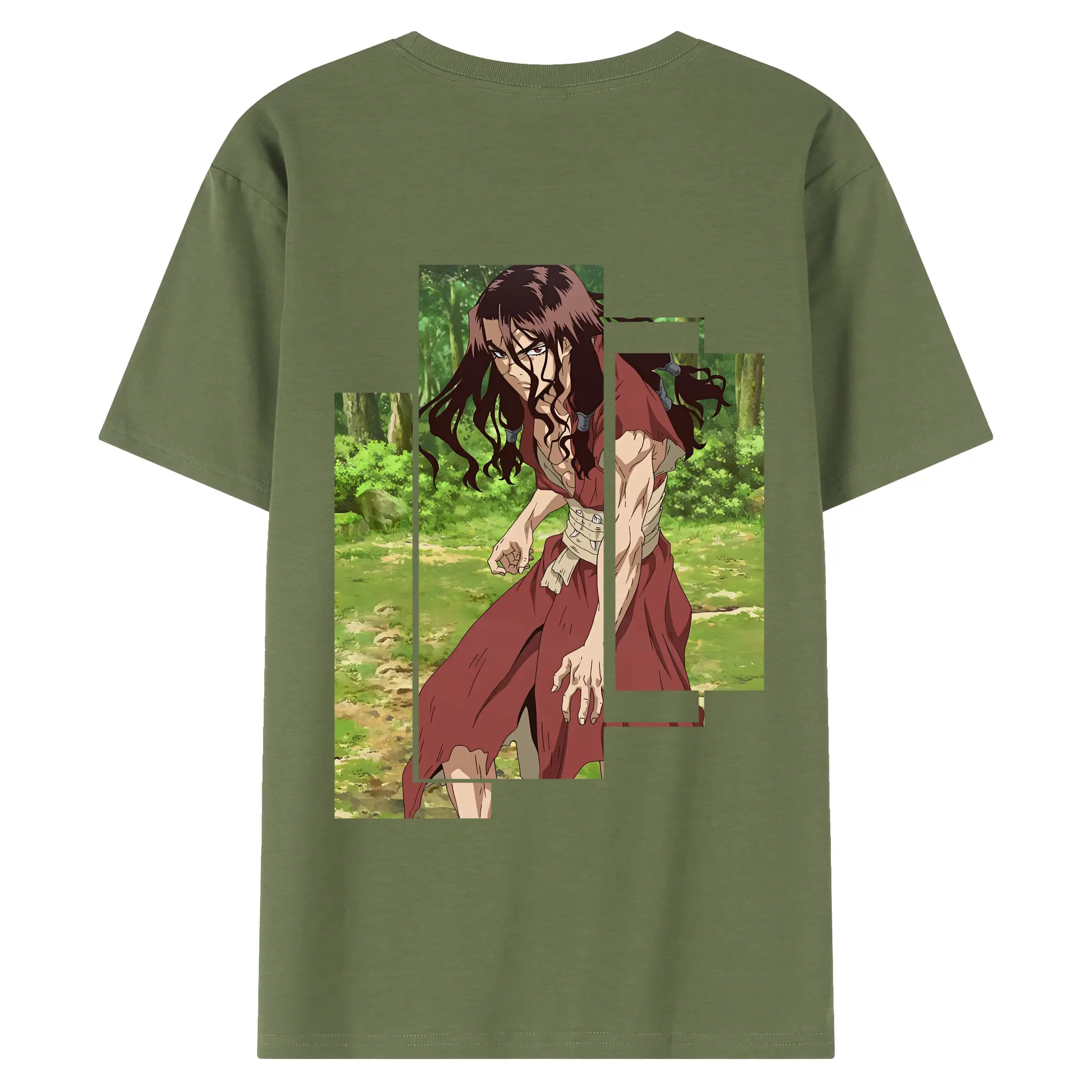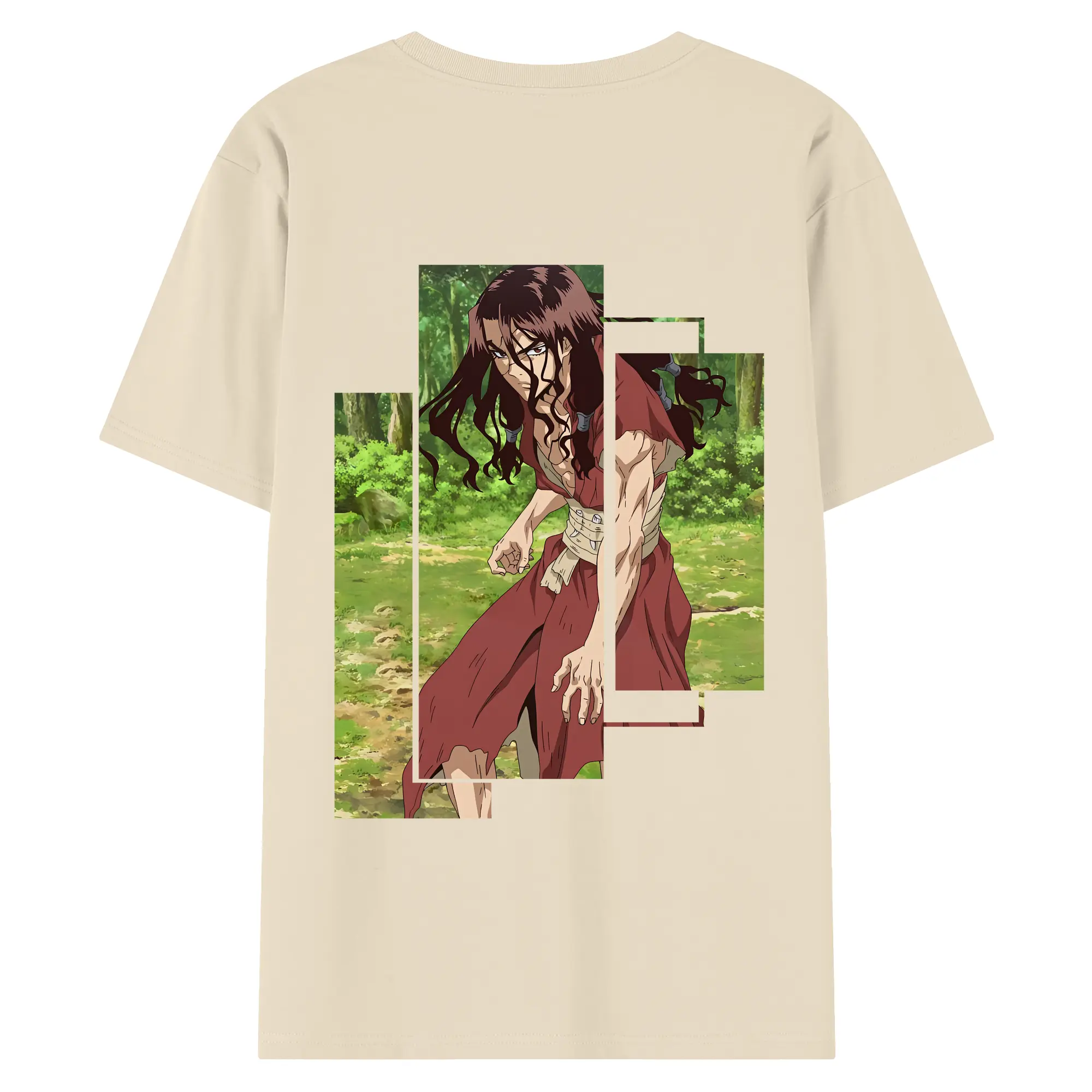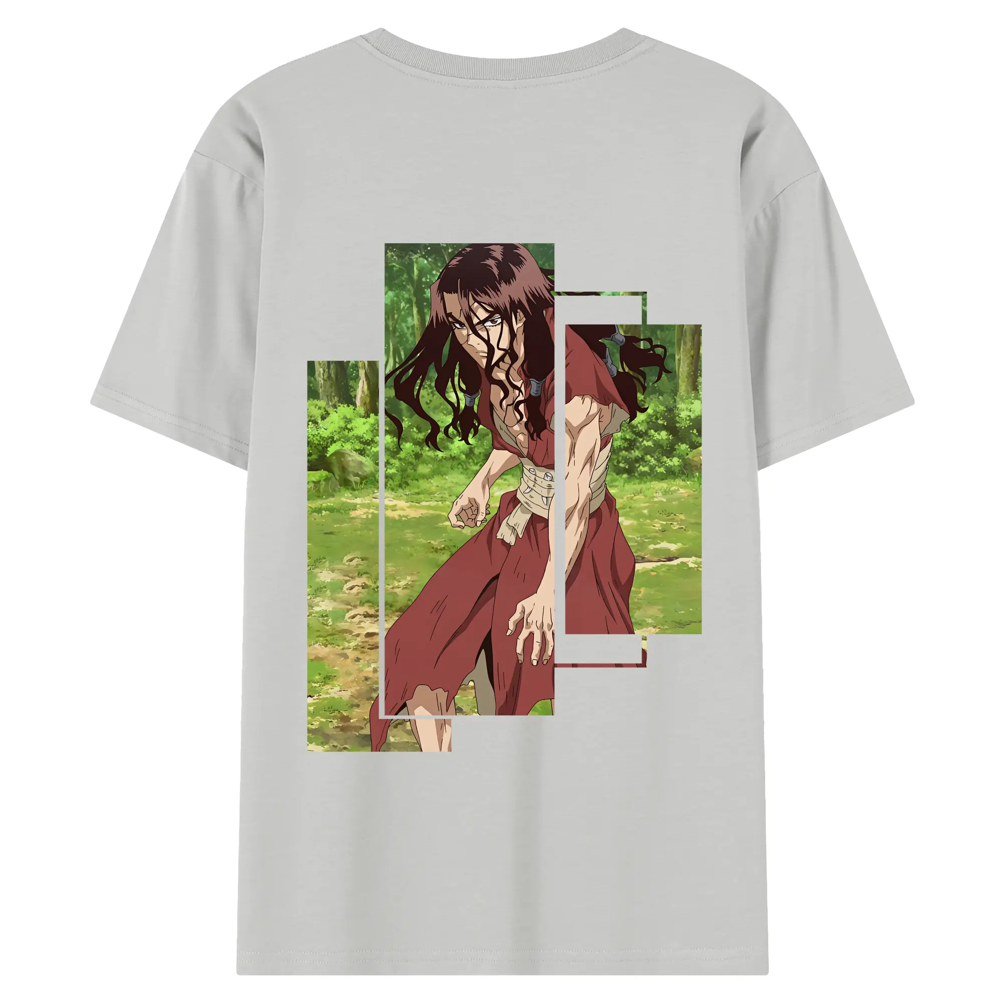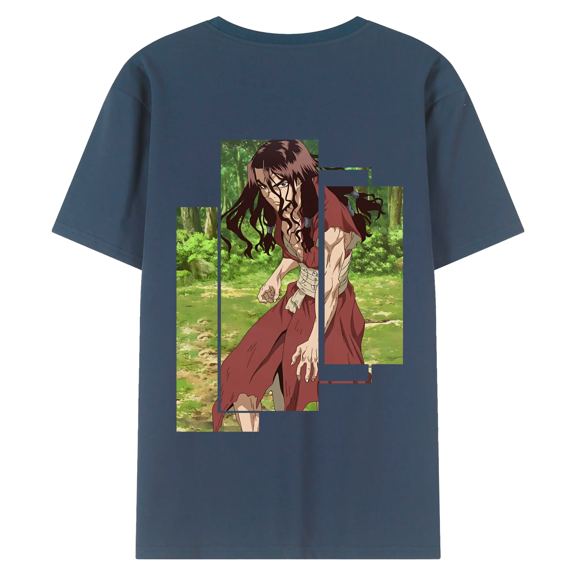 ドクターストーン グッズ,司 - 綿100% ヴィンテージ風 半袖Tシャツ ・ 背面プリント ・ 柔らか肌触り ・ 通気性 快適 ・ スポーツ カジュアル 外出用
