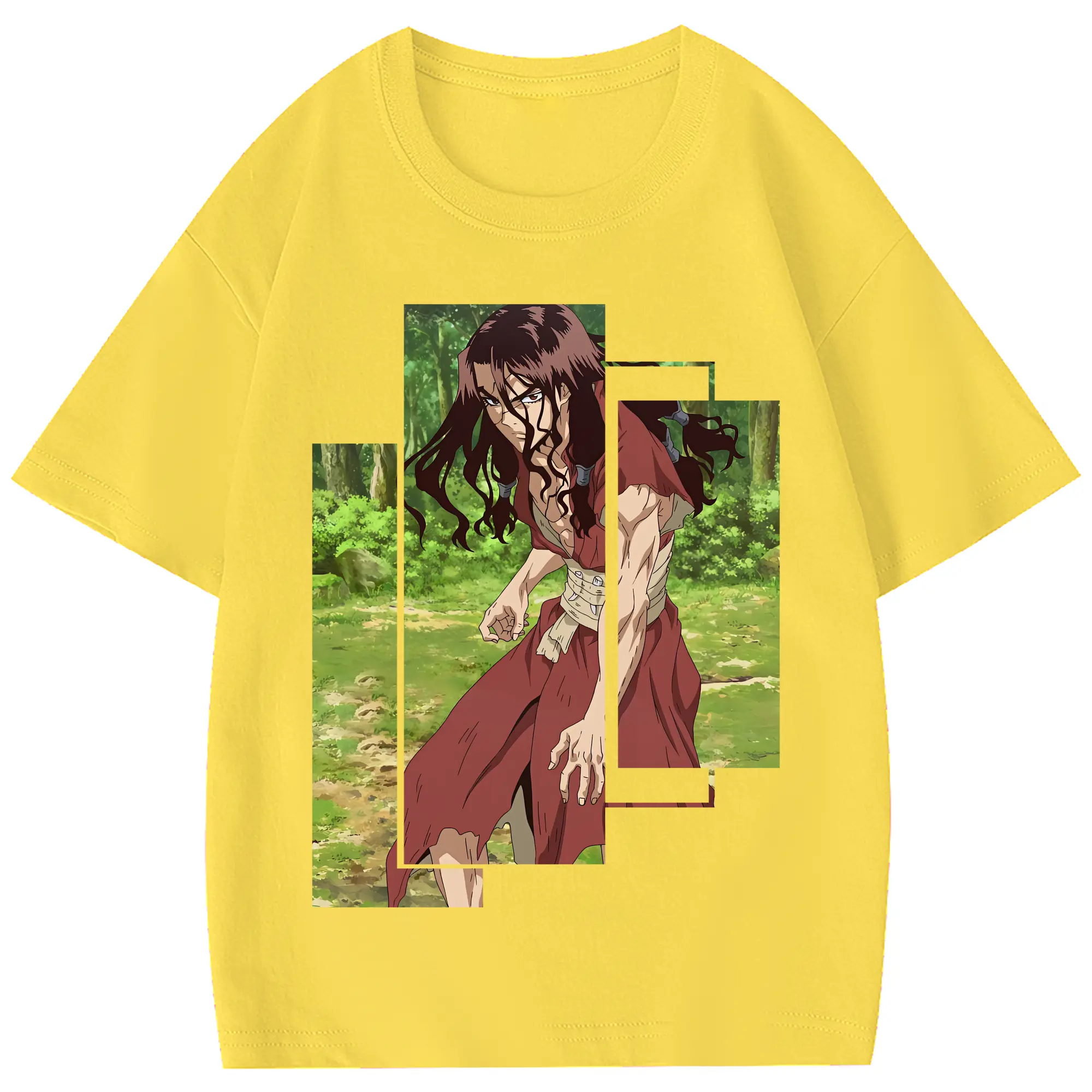 ドクターストーン グッズ,司 - 綿100% ヴィンテージ風 半袖Tシャツ ・ フロントプリント ・ 柔らか肌触り ・ 通気性 快適 ・ スポーツ カジュアル 外出用