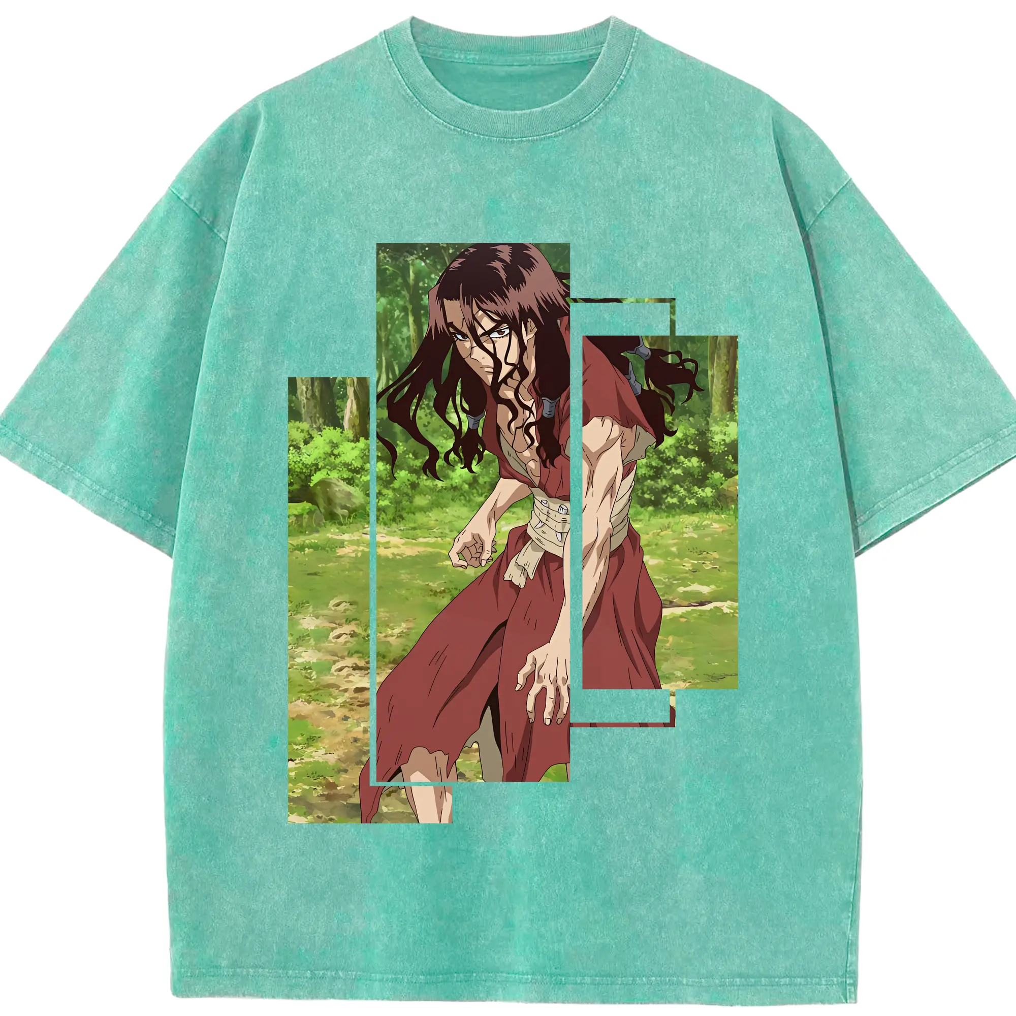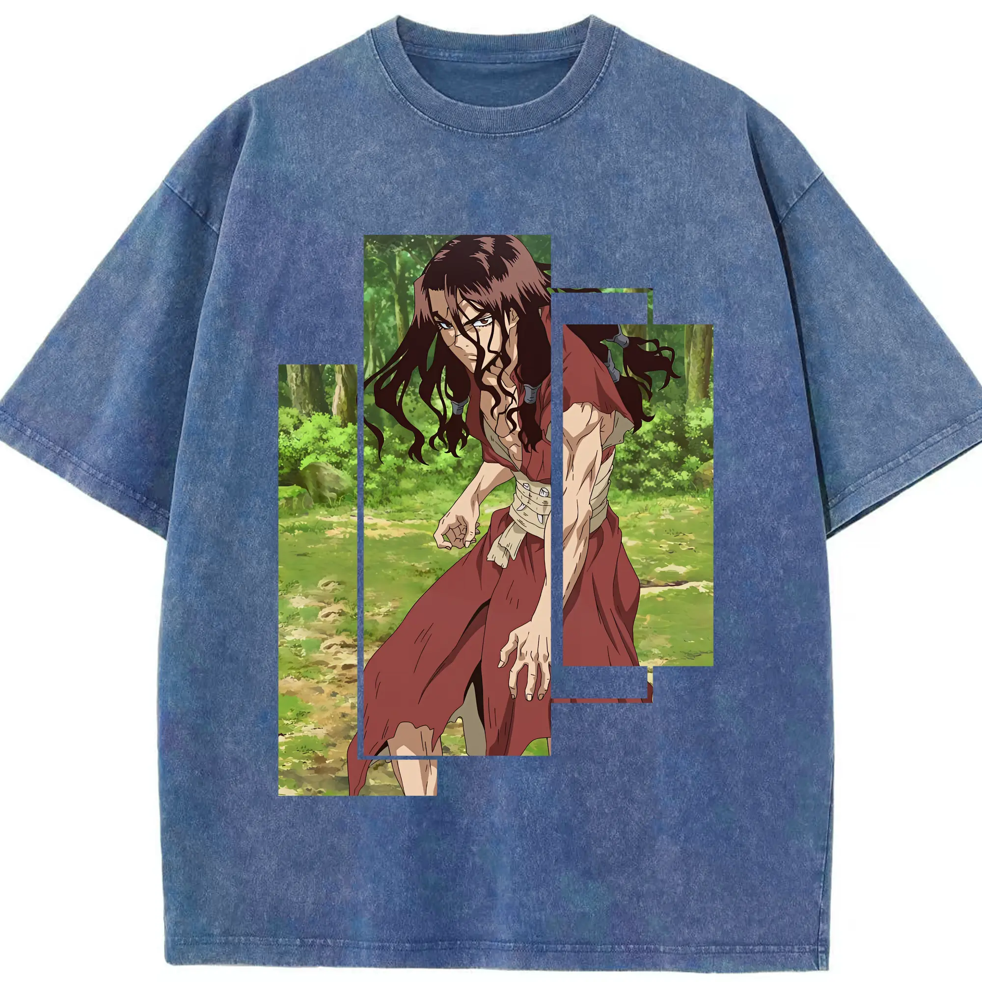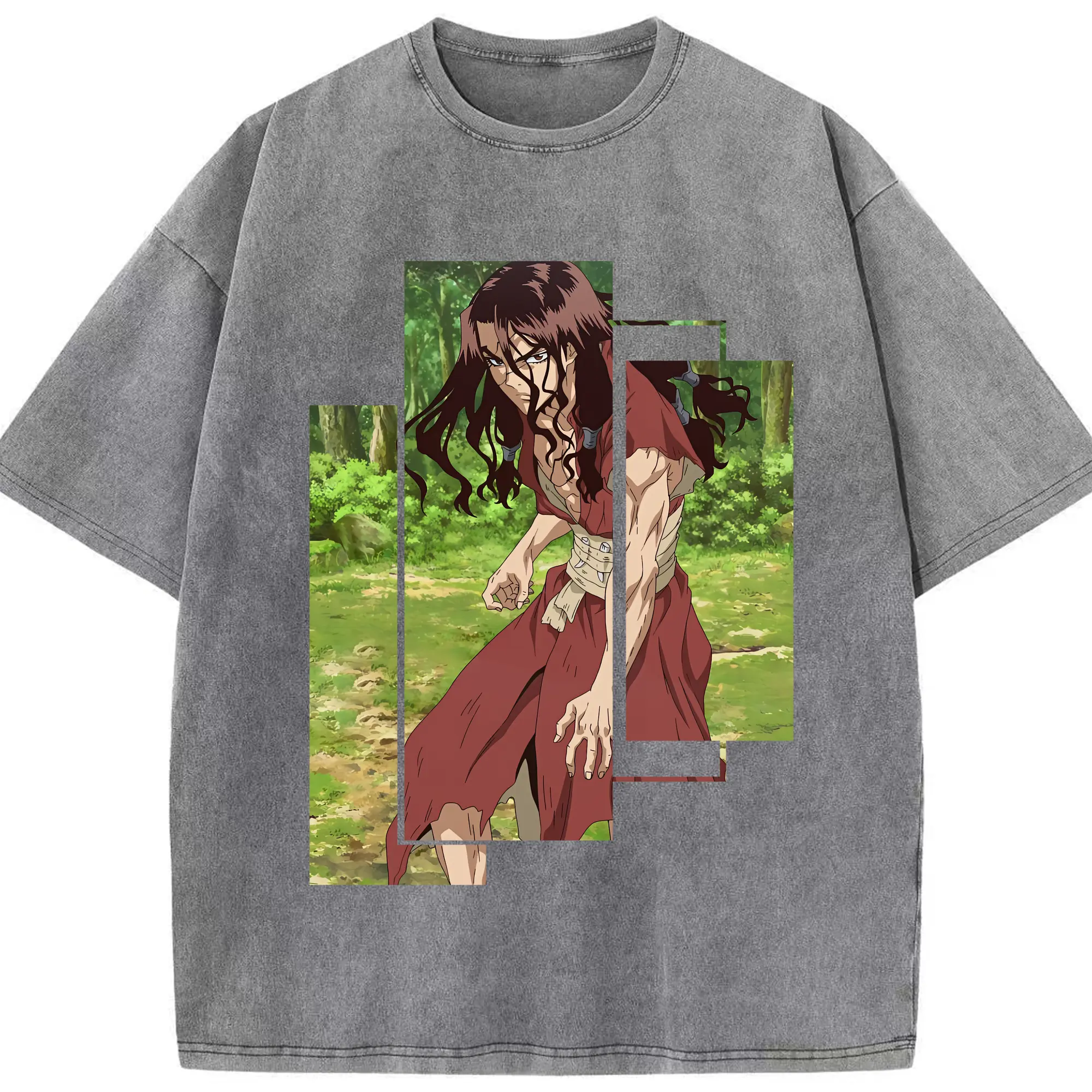 ドクターストーン グッズ,司 - 綿100% ヴィンテージ風 半袖Tシャツ ・ 背面プリント ・ 柔らか肌触り ・ 通気性 快適 ・ スポーツ カジュアル 外出用