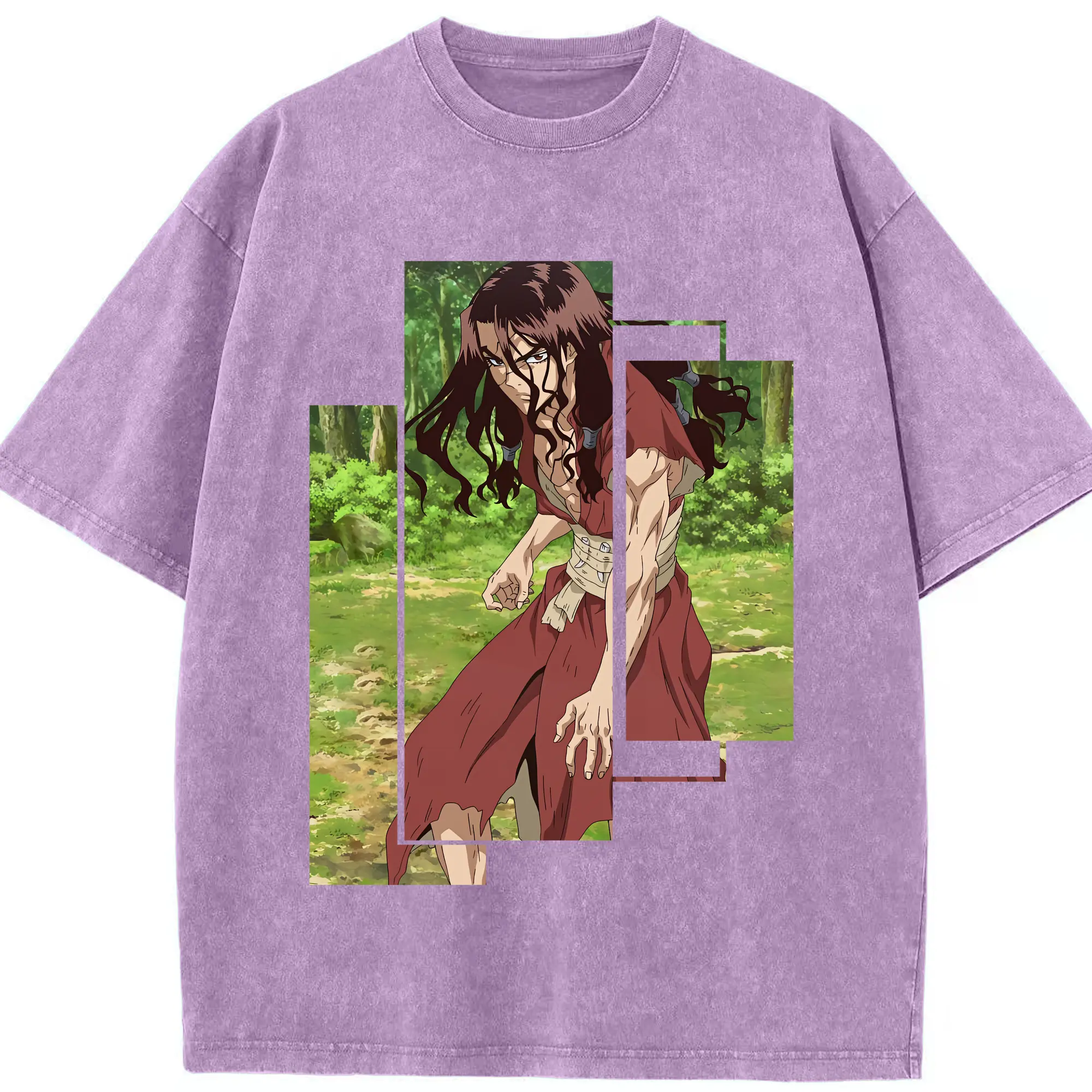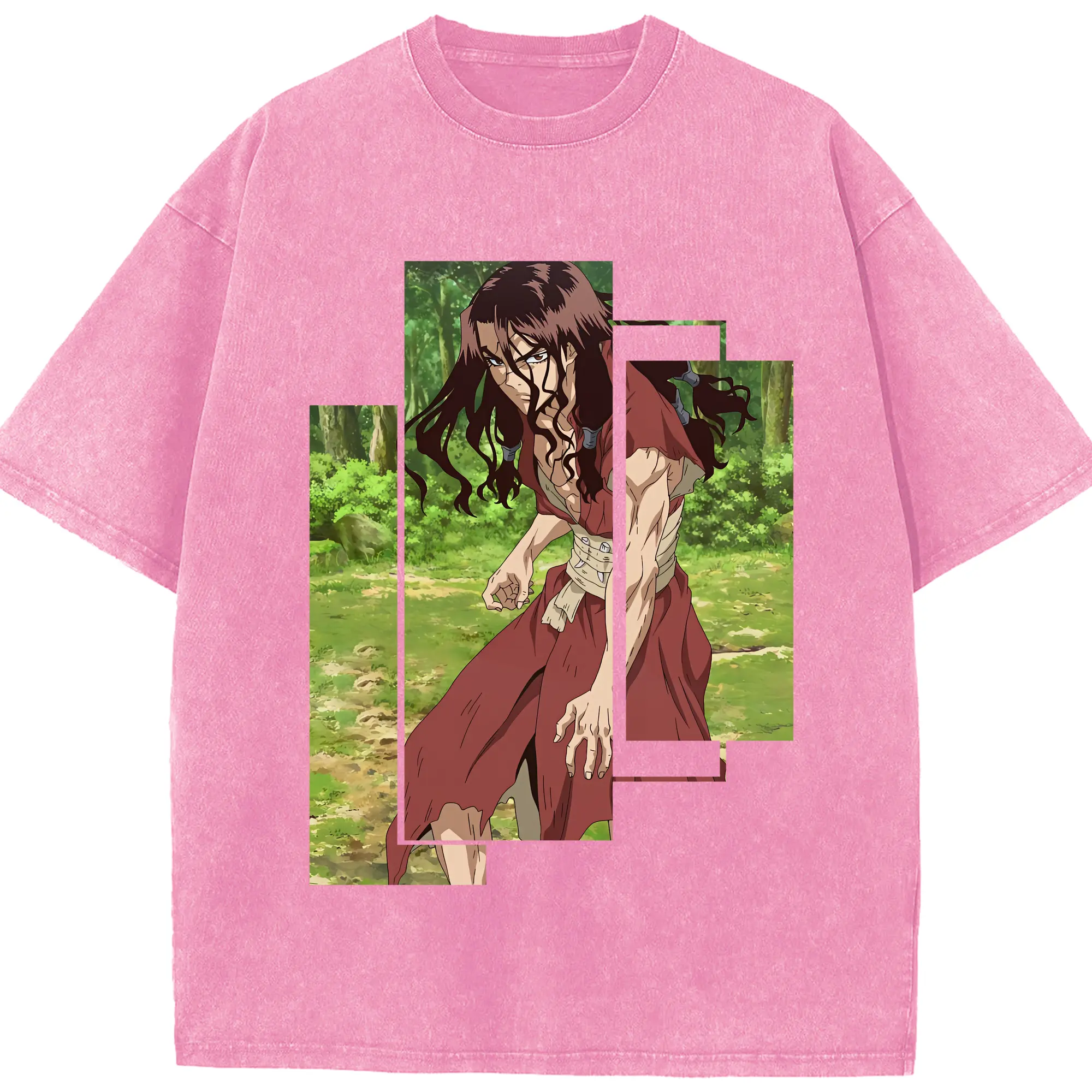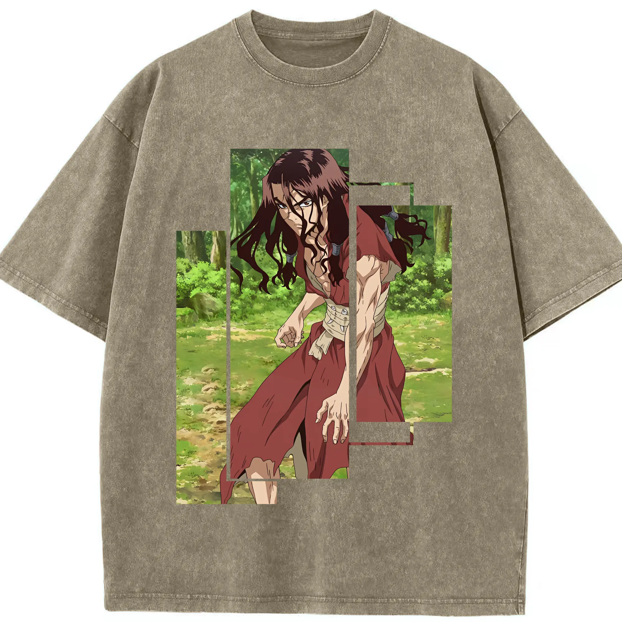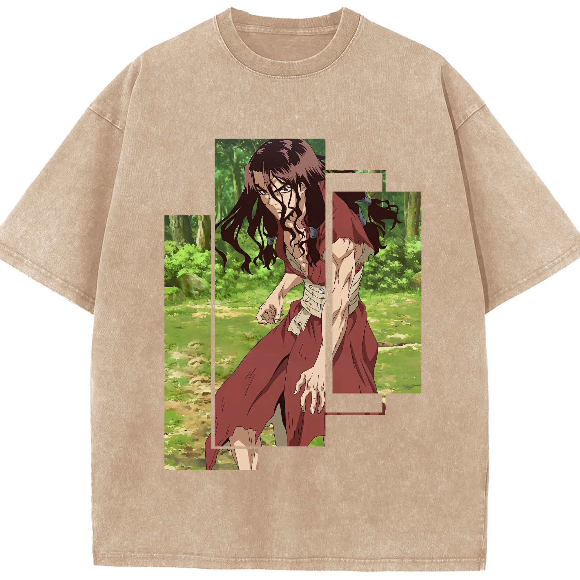 ドクターストーン グッズ,司 - 綿100% ヴィンテージ風 半袖Tシャツ ・ 背面プリント ・ 柔らか肌触り ・ 通気性 快適 ・ スポーツ カジュアル 外出用